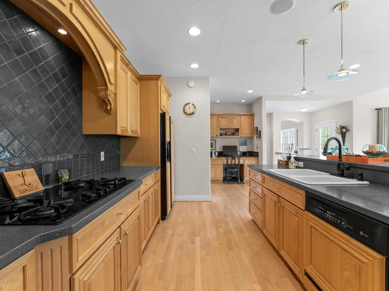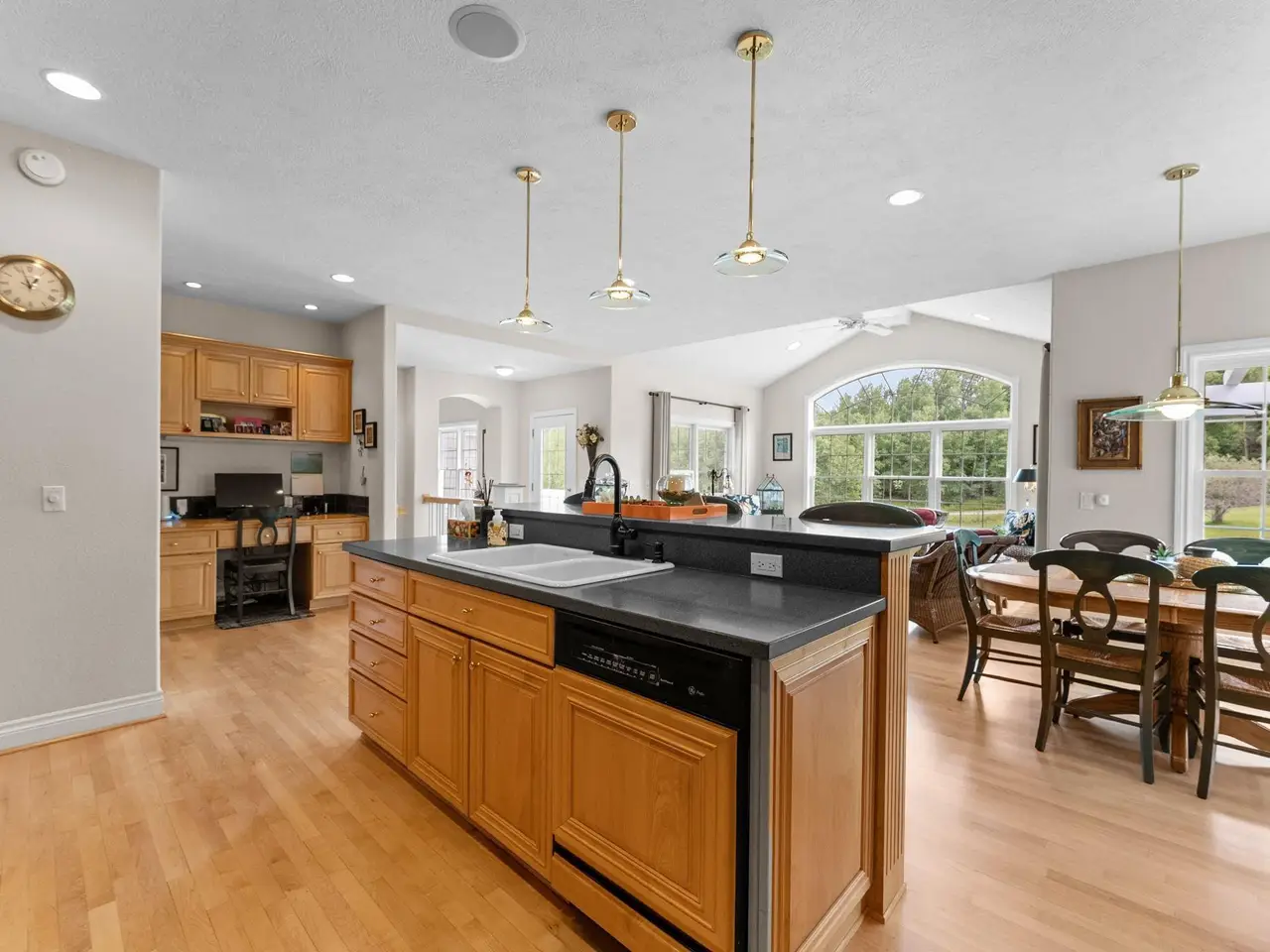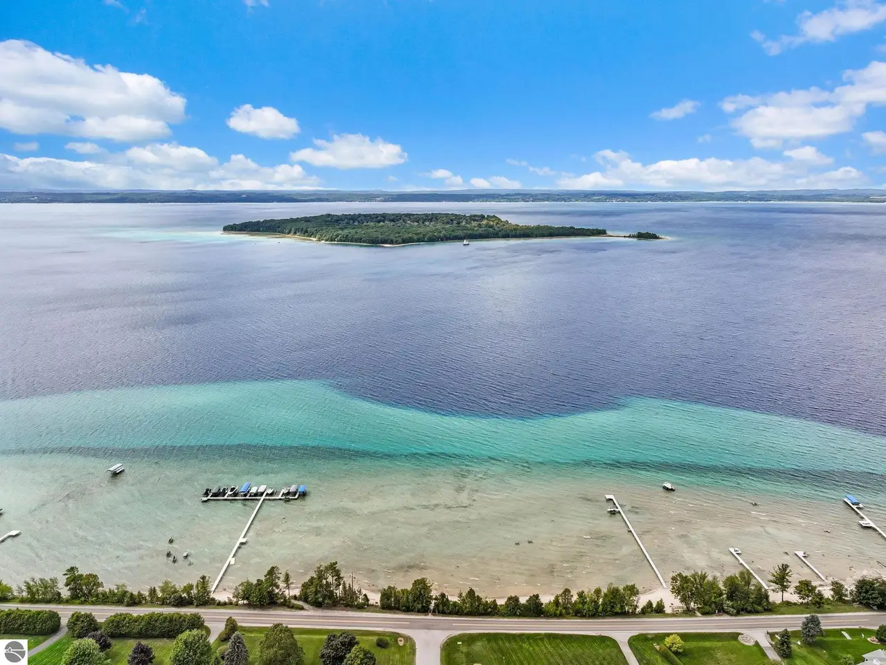 Welcome to life on Old Mission Peninsula! This builder's home sits on nearly 3 acres in the highly desirable Old Mission Estates subdivision, offering over 700 feet of shared, sandy West Bay frontage with docking privileges. The main floor flows effortlessly between everyday comfort and gracious entertaining, with oversized windows filling each space with natural light. The open kitchen overlooks a casual family room and dining nook that opens to a tiered composite deck shaded by a pergola and surrounded by manicured landscaping. For more formal gatherings, host dinner parties in the bright dining room or cocktails by the gas fireplace in the living room, complete with French doors leading to another expansive deck and rolling backyard views. The main-floor primary suite features a walk-in closet and spa-like bath with whirlpool tub and separate shower. An additional bedroom, den, laundry, and mudroom complete the easy-living main floor design. The lower level is designed for fun and flexibility with soaring ceilings, big windows, a second gas fireplace, full kitchen, craft/workshop space, and two private bedroom suites -- ideal for a mother-in-law setup, guest retreat, or growing family. This home comes loaded with extras, including a heated 4-car attached garage with drain, surround sound in most rooms, central vacuum system, and a Generac whole-home generator for peace of mind. Old Mission Estates also offers generous common areas, a welcoming neighborhood atmosphere, and access to the sparkling waters of West Bay. Bring your boat, your sand toys, and your love of Northern Michigan living -- this stunning home has it all. Come see it for yourself today!