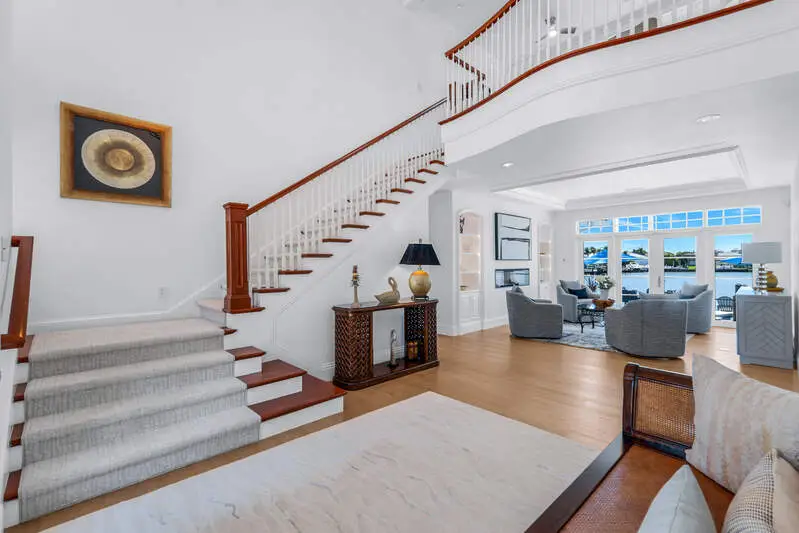 Gorgeous waterfront home on Hurricane Harbor in The Moorings - less than a mile to the private Moorings Beach. Enjoy the delightful wide bay southern exposure views from every room & breathtaking sunset every evening. Open floor plan providing one level living on the first floor & plenty of room for guests. 20' vaulted ceiling foyer with a grand staircase and balcony, opening to unobstructed water views. This home is a seamless blend of elegance, tropical warmth, and traditional touches. A mix of fine wood trim craftsmanship and modern Florida living. Entertaining and cooking is a pleasure in the updated kitchen with large island, bar, wine cellar & walk in pantry. Wolf, Sub-Zero and Dacor appliances. This home has been extensively upgraded. Secured with electric storm shutters. New roof. The seawall has been replaced in 2021. Take your choice to sip morning coffee from the breakfast nook, lanai or pool deck as you overlook the bay and swaying palms! This is truly your own self-contained resort and yet super close to all amenities. Short boat ride to the Gulf via Doctors Pass. Come see this amazing home and make it yours.