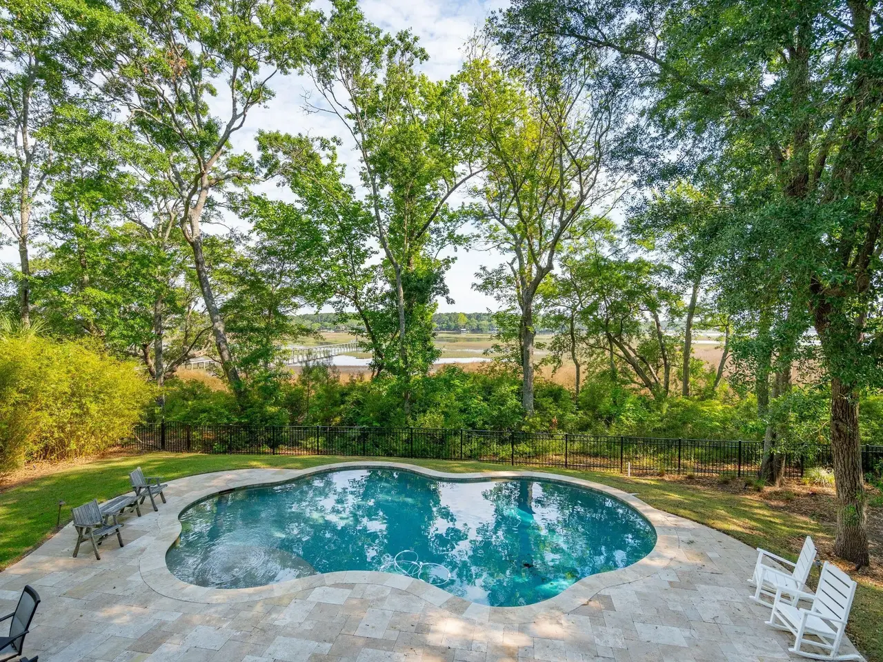 Breathtaking Marsh Views on the Wando River - Private 3-Acre Estate in Gated Pepper Plantation. Enjoy the ultimate Lowcountry lifestyle on 3 private acres overlooking the Wando River in the gated community of Pepper Plantation. Tucked at the end of a quiet cul-de-sac, this 5-bedroom, 5-bath custom-built home delivers elegance, privacy, and sweeping marsh-to-river views. The elevated, three-story home is designed for easy living and effortless entertaining. As you approach, a beautifully landscaped yard and wooded entry offer unmatched seclusion. The solid mahogany front door opens into a sun-drenched interior featuring white oak hardwood floors, high ceilings, and a seamless flow of space. A formal dining room and study flank the foyer, while the expansive great room and chef's kitchen span the rear of the home, capturing spectacular views. The kitchen is outfitted with top-tier appliances including a 48" Sub-Zero refrigerator, Wolf double ovens and gas cooktop, farmhouse sink, and granite countertops. A generous breakfast nook is wrapped in windows and overlooks the water, the perfect spot for family meals or morning coffee. The main-level primary suite is a private sanctuary with panoramic views of the Wando River, dual walk-in closets, and a spa-inspired bathroom with double vanities, walk-in shower with rain head, and soaking tub. An additional guest suite and full bath are also located on the ground floor. Upstairs are three additional bedrooms, one with an en suite bath, and two sharing a Jack & Jill, plus a large bonus room ideal for a media room, playroom, office or sixth bedroom. The ground level features a climate-controlled bonus space with a full bath, ideal for a home gym, artist's studio, or guest suite. The 3-car garage offers epoxy-coated floors, a workshop area, and ample storage. Step outside to your own private oasis. The screened-in porch with wood-burning fireplace opens to a spacious backyard with a travertine-surround saltwater pool, all framed by moss-draped oaks and uninterrupted marsh views. Enjoy outdoor dining, evening sunsets, or weekend gatherings in this truly exceptional setting. Additional features include: - 3-stop elevator - Whole-home generator - Standing seam metal roof - Impact-rated windows and doors - Fenced backyard with direct bathroom access from pool area Pepper Plantation is an exclusive enclave of custom homes offering privacy, natural beauty, and unique amenities. Residents enjoy an equestrian-style setting with a training track, riding trails, and a picturesque pavilion overlooking a freshwater lake, perfect for weddings, events, or community gatherings. Located just 12.5 miles from Isle of Palms beach and 15 miles from downtown Charleston, this community offers the perfect blend of quiet Lowcountry living with Charleston convenience.