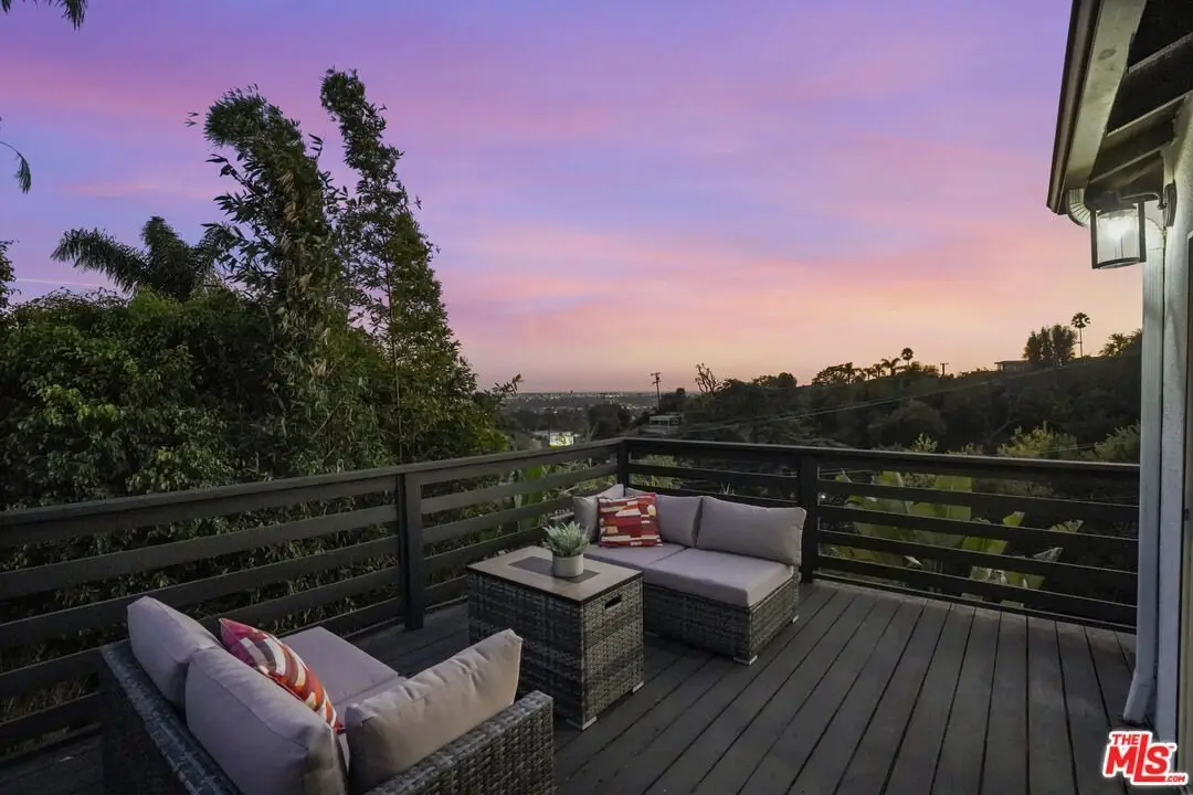JUST REDUCED!!Picturesque Windsor Hills stunner, with impressive panoramic city to coastline views, and peek-a-boo of the Pacific ocean and Catalina Island. Located on the prestigious Onacrest Drive, this home has been thoughtfully remodeled for buyers who love to entertain and enjoy the indoor-outdoor California lifestyle. A swank new door greets you on the stylish entry patio that has views of the surrounding city lights and treetops. You'll appreciate the clever floor plan that places the main living areas on the 2nd floor to take advantage of the stellar views over the hill. Formal Living Room with elegant white tiled fireplace and 2 bright large windows letting in tons of natural light. Featuring an open and welcoming white kitchen with large island, quartz counters, and plenty of storage. All stainless steel appliances incl French door refrigerator & separate wine/beverage fridge. Flexible dining area perfect for large gatherings and holiday meals. The dining area has direct access to the balcony deck and cozy fire pit. Enjoy a glass of wine on the deck surrounded by lush greenery and panoramic sunset views. An outdoor staircase from the deck allows easy access to the backyard. There are 2 bedrooms on the entry level that share a newly remodeled full sized bathroom with walk-in shower and jetted spa tub. Downstairs you'll find a private laundry room, office nook or playspace area, and two more bedrooms both ensuite. The primary bedroom is ensuite, w/walk-in closet and direct access to it's own backyard patio. You'll also find an outdoor hot tub and plenty of space for kids and pets to play. Newly landscaped with sustainable, easy to maintain turf grass & drought tolerant plants ideal for the Southern California climate. Multiple Terraces below backyard are perfect for gardening, hobbies or future potential ADU. Attached 2 car garage with direct access and EV charger. Many upgrades incl New LED Lighting, Tankless Water Heater, Water Softener, Ring Doorbell and Alarm System. This home ideally located and is convenient walking distance to many shops including Hilltop Coffee Co, Simply Wholesome Grocery as well as Kenneth Hahn Park and beautiful local walking trailheads. Easy access to beaches, freeways, and the new Sofi Stadium. This updated classic Windsor Hills dream property is stylish, modern, mindful and checks all the boxes.