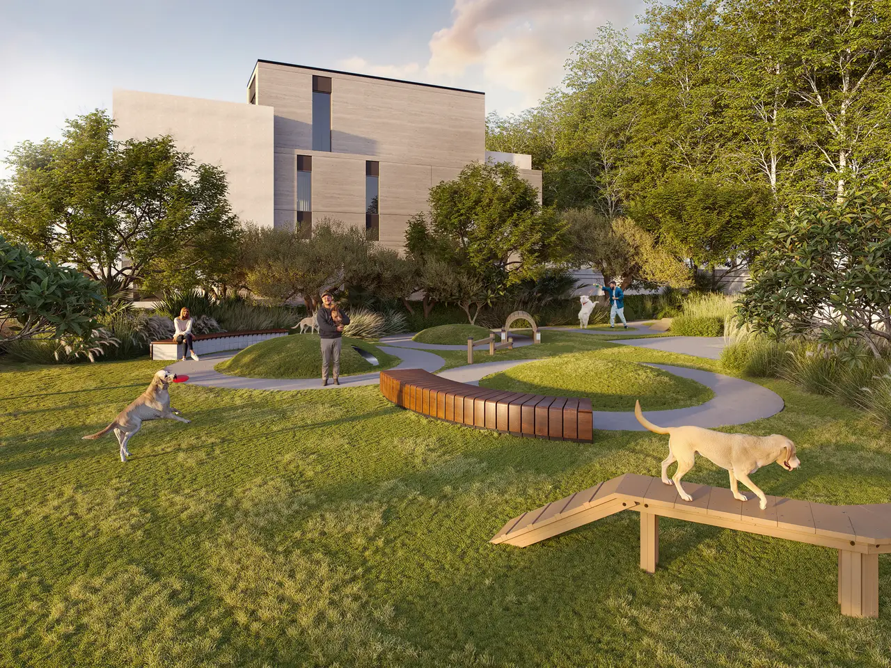 • Private gardens and terraces with golf course views