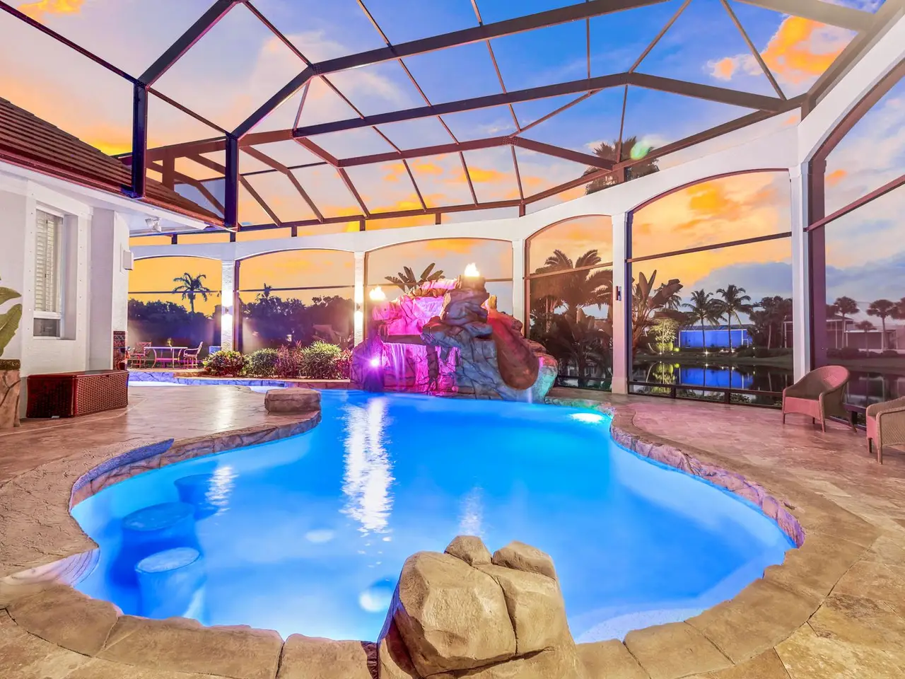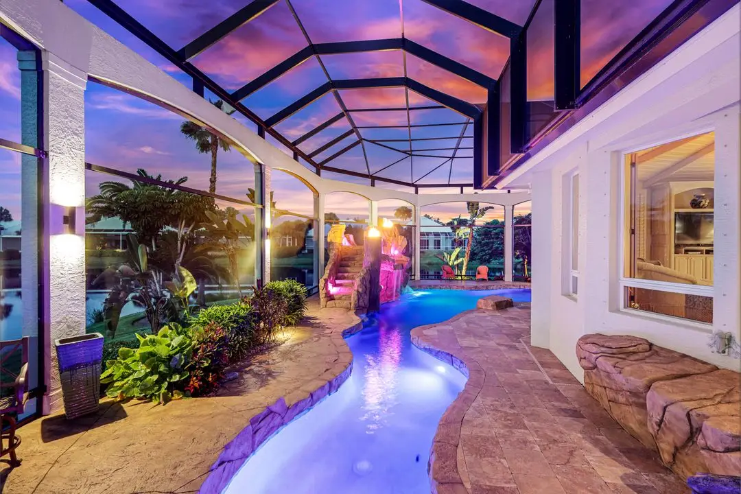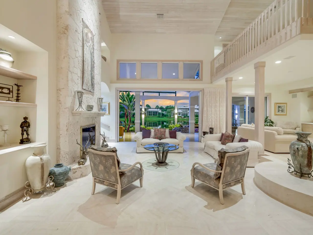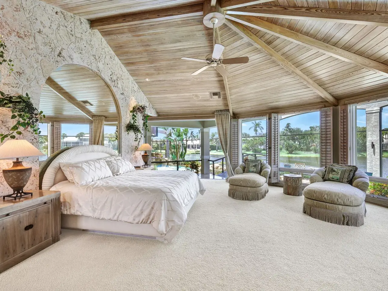 Entertainer’s dream home. This home is a must see with the largest private pool in Bonita Bay. Harwick built custom home with Harwick designed/built additions. When you walk in the door this home impresses with views of the lake and pool. This home boasts soaring Ashwood ceilings, a thirty foot keystone fireplace, four bedrooms with en suite, two half baths, home gym, office/den, formal dining, and home theater with full bath. The main bedroom has expansive sliders opening directly to the pool with lake views from every window, grand main bath, his and her water closets, walk through shower with two shower heads, fireplace, and wet bar. The pool has an expanded pool deck with five waterfalls, three fire features, spa, slide, in pool bar, an outdoor kitchen and soaring custom cage. Located in exclusive Ibis Cove directly across from the marina for boat lovers in the premier gated community of Bonita Bay. Bonita Bay Club offers a 29,000 square foot fitness complex and spa, five golf courses, eighteen tennis courts, ten pickleball courts and twelve miles of walking trails. Six restaurants at the club and marina. Bus shuttle to the private beach park on the gulf. Play golf in the morning and take your boat on a sunset cruise that night.
