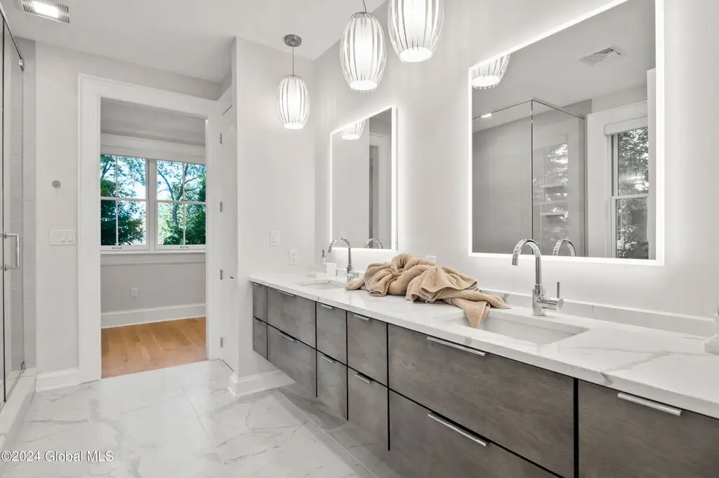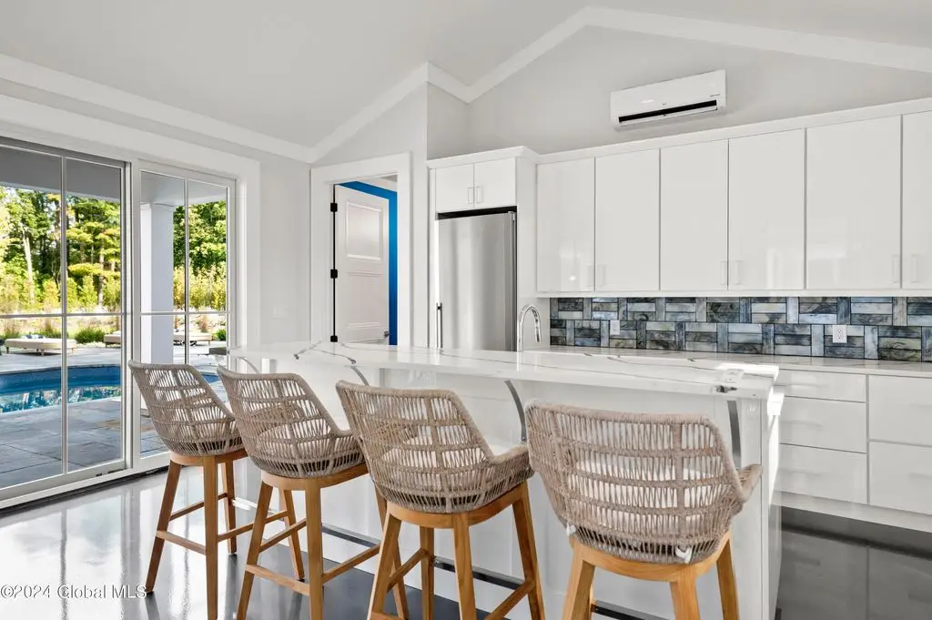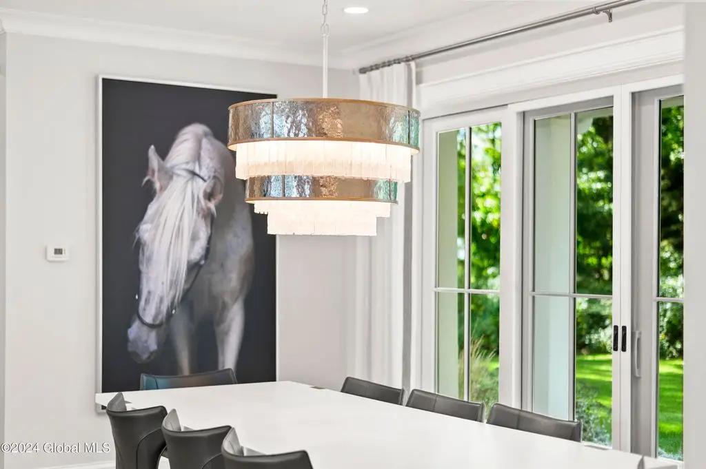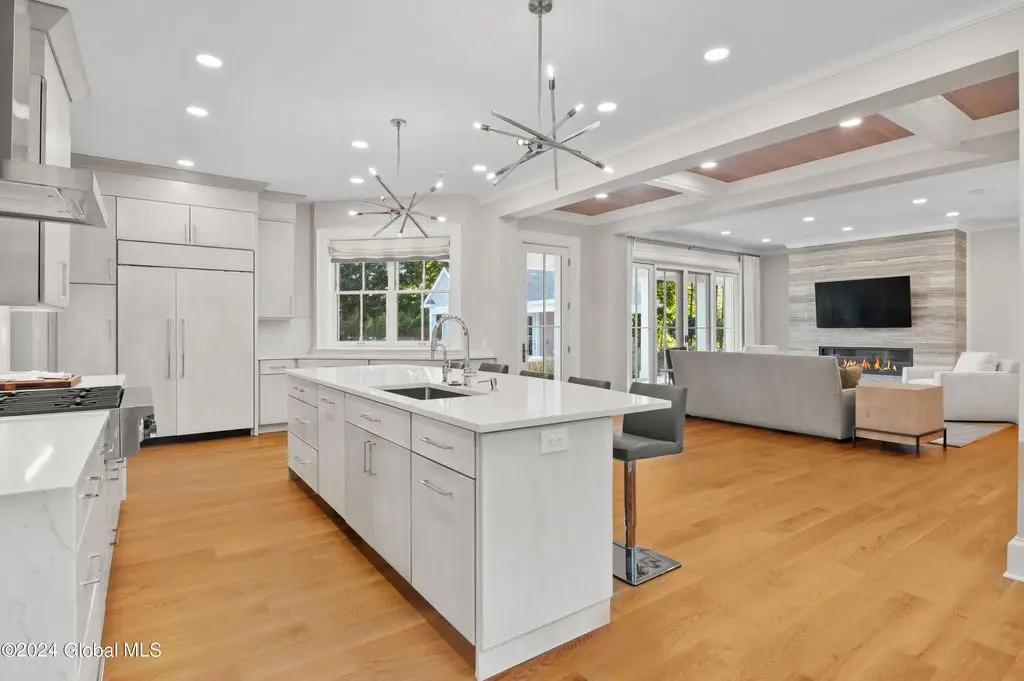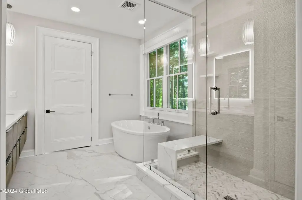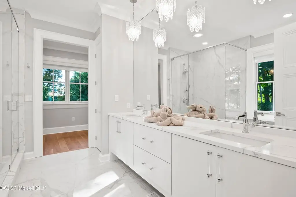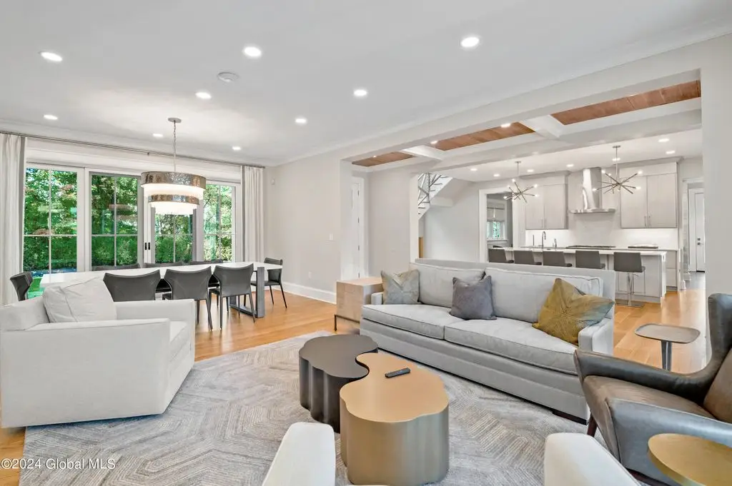 A lifestyle upgrade is waiting for you, only 1.5 blocks from Saratoga Racetrack! Turnkey luxury living; furniture included! Brand-new home, w/ 7568 sqft of finished space. Wide-plank oak floors underfoot; tray & coffered ceilings overhead. Exquisite kitchen features stone walls & countertops plus Viking & Sub-Zero appliances. 1st & 2nd floor primary suites w/ sitting rooms & opulent private baths. 2nd-floor Saratoga Room has cathedral ceiling & wet bar. Finished lower level w/ full bath & gym. IT room offers state-of-the-art technology. Sliding doors open to a serene covered-porch & pool area. Pool house features a kitchen, bath, & wet bar. 3-car garage. Fully fenced, professionally landscaped, 1.33 acres. Stylish furniture, chic decor, cookware, & cozy linens. This home is move-in ready!