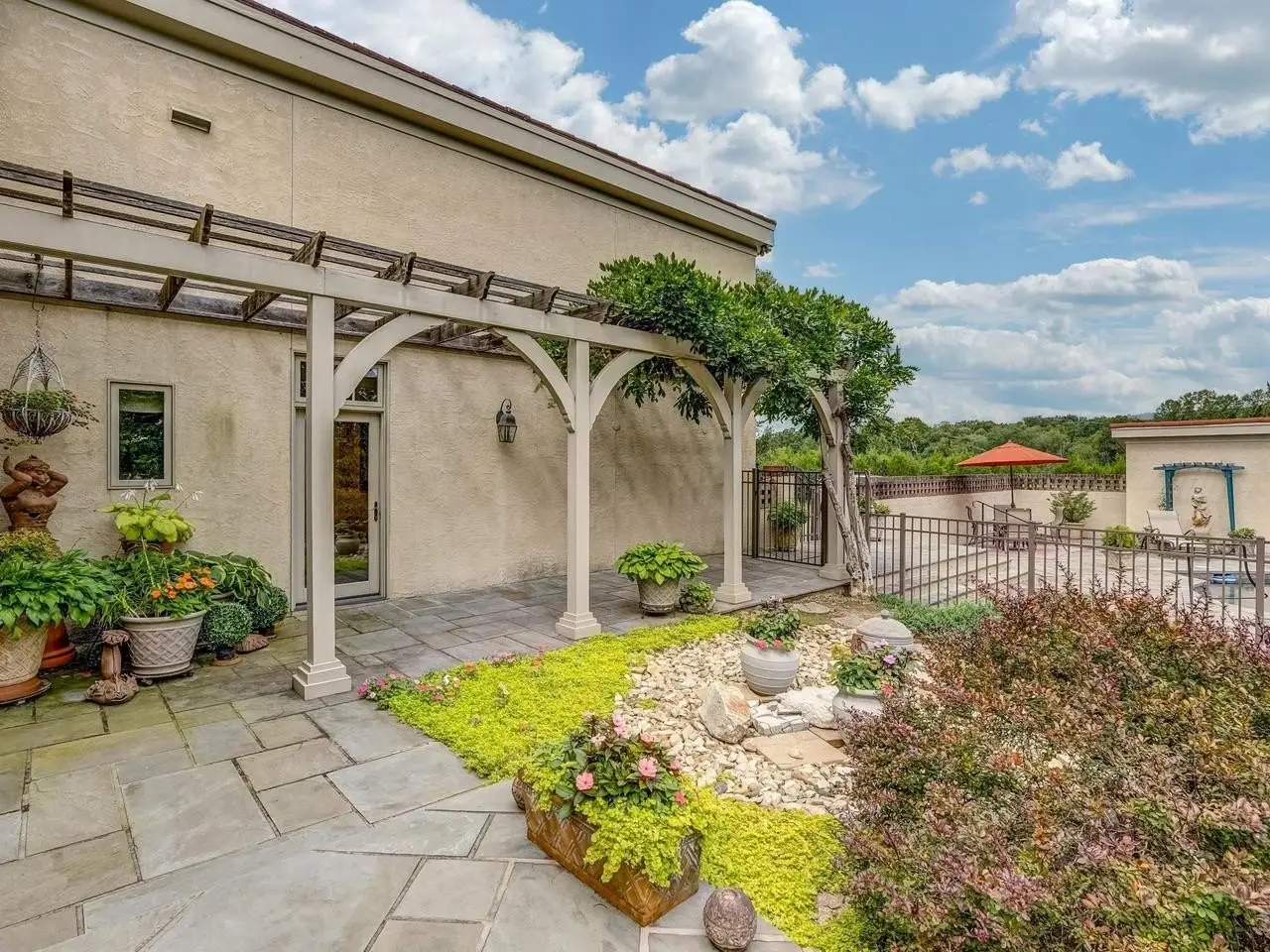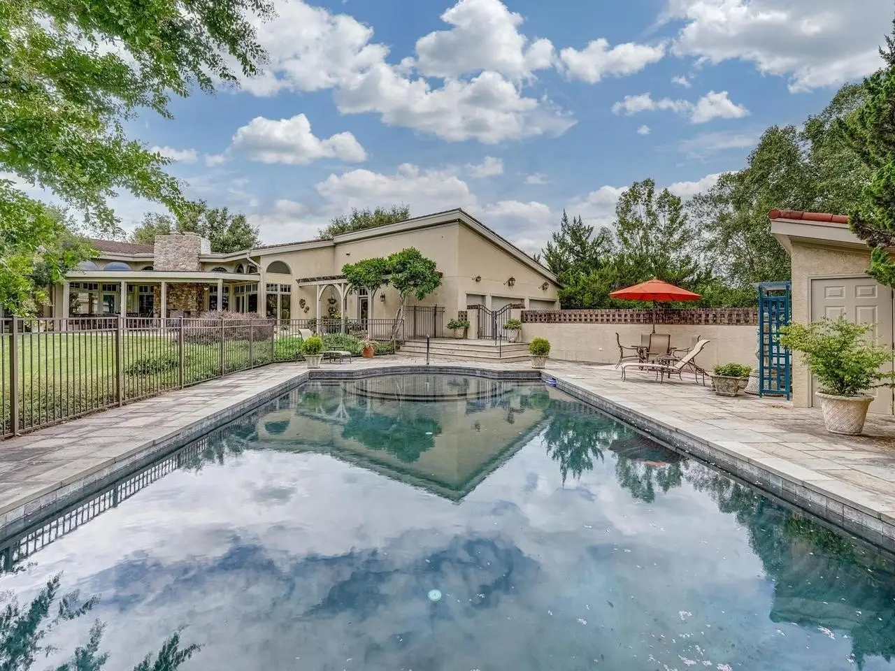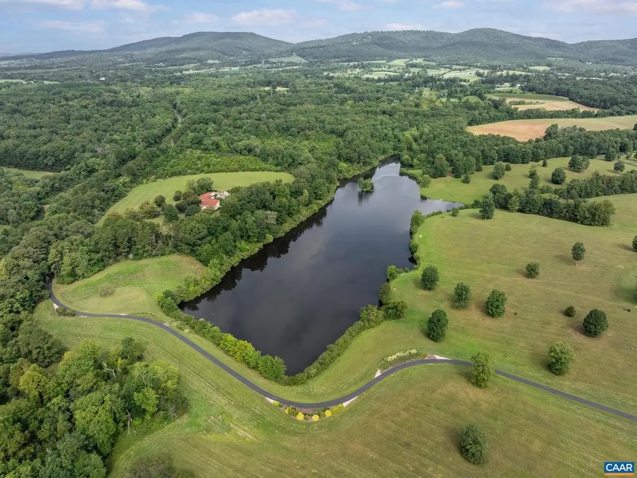 Stunning Tuscan Style home located in the heart of Keswick, privately set on 2 parcels! totaling 57.27 acres with lake and Southwest Mountain views. Every detail of this home was planned with an artists keen eye in creating a Mediterranean inspired retreat. Features include one level living at its finest, great room with soaring beamed ceilings, floor to ceiling stone fireplace, large transom windows furnish abundant natural light and capture outdoor living space, lake views, landscaped beauty, pool and outdoor fireplace. Floor to ceiling custom built-ins create space for books and other treasures, with a formal dining room and library completing the picture. Follow the Saltillo tile flooring through a cozy den to a spacious kitchen and center island. 3 Beds/3 Full and 1 Half Bath. Primary Suite offers a sitting/dressing area and creates a relaxing and luxurious sanctuary. Artists studio with 2 additional bedrooms share a full bath while a third full bath/changing area is conveniently located near the pool entrance. The 2 car garage has extra space for golf cart or riding mower. This home is a one of a kind offering not to be missed. Appt. Only. Do not disturb!! Note: listing is for 2 parcels, online values are incorrect.,Granite Counter,Exterior Fireplace,Fireplace in Great Room