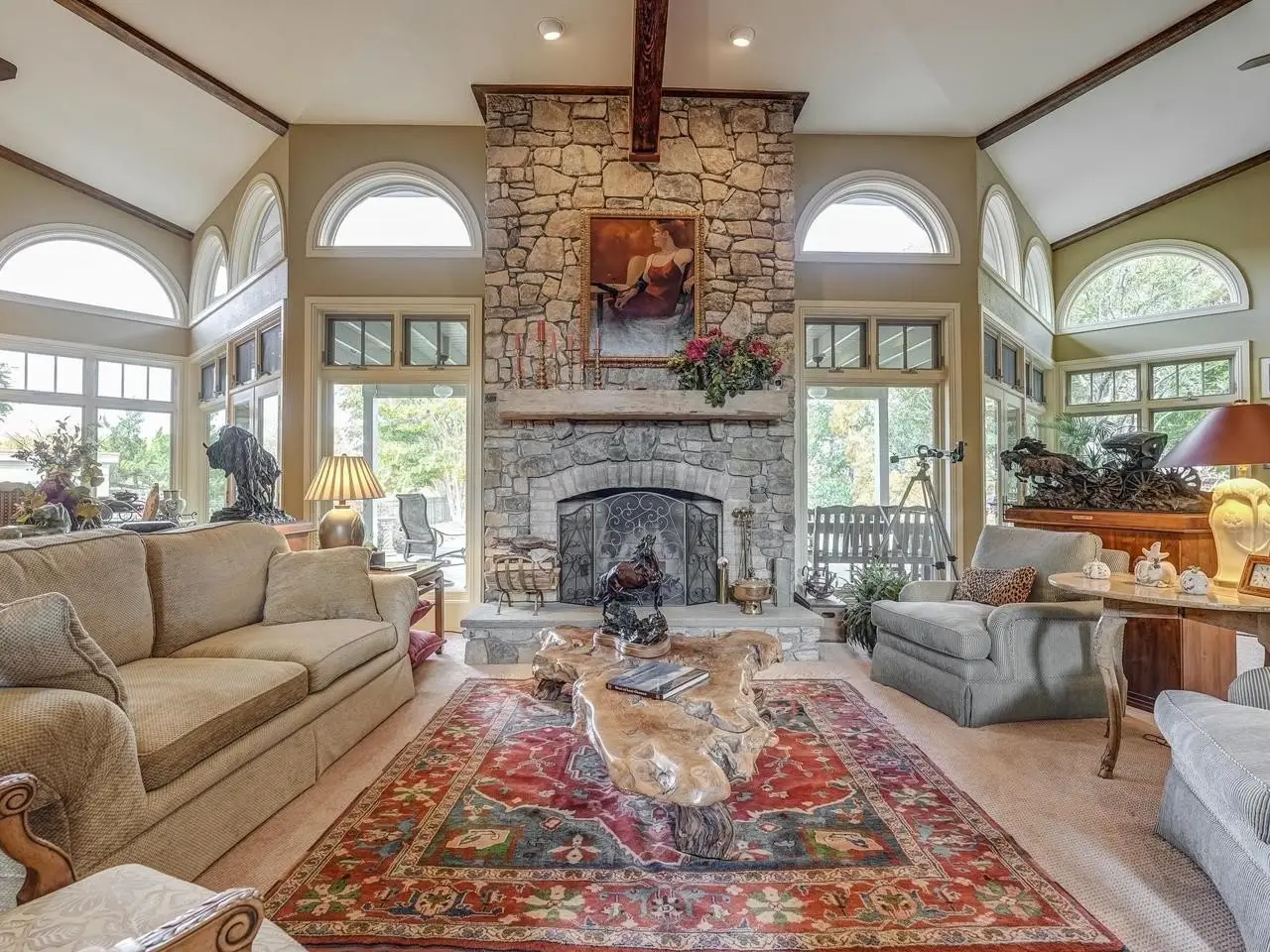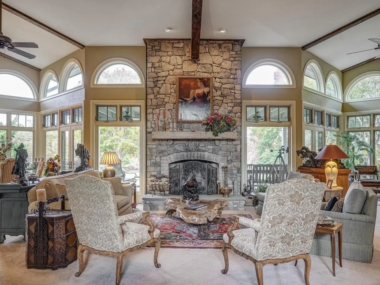• Floor to Ceiling Stone Fireplace
