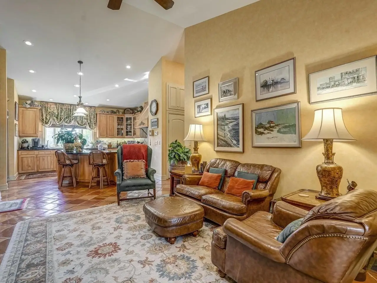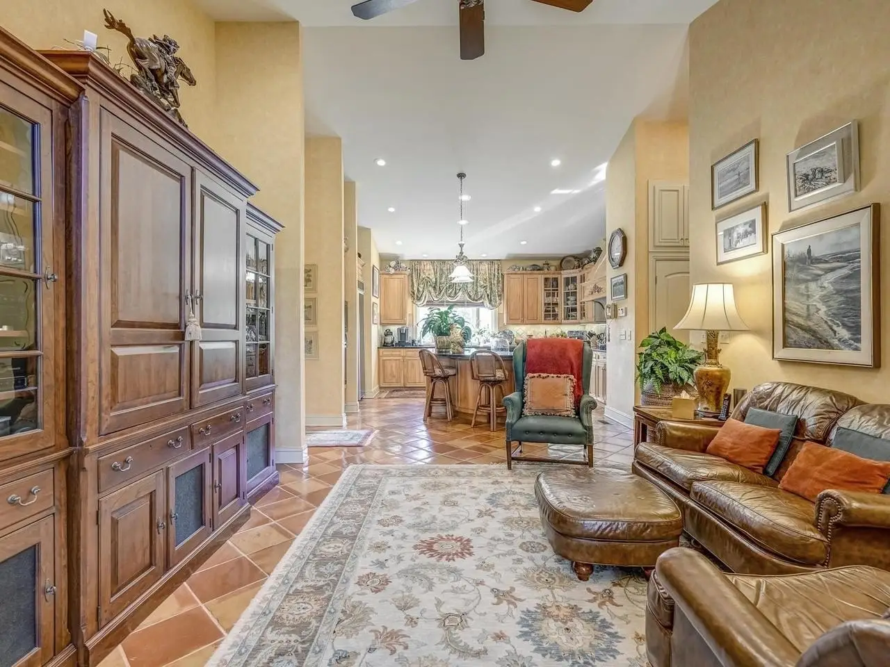• Soaring Beamed Ceilings