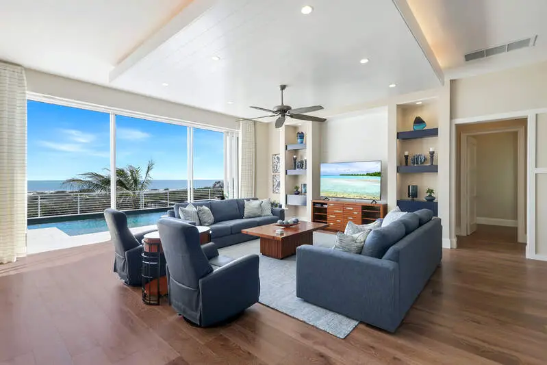 An exclusive & spectacular beachfront home located on the tranquil south end of Fort Myers Beach offers unrivaled panoramic gulf & beach front views stretching from Naples to Sanibel on clear days & evenings serving as a perfect backdrop of luxury & privacy. Positioned on a rare section of beach w/ultra-private backyard yet, from the home, you have direct access to the sandy beach & gulf waters. Featuring 6 spacious ensuite bedrooms or 5 ensuites & a den w/full bathroom, the residence boasts 10' to 15' high ceilings, stunning hardwood & tile flooring, fully color-coordinated accents, an open 3-tiered floorplan drawing in natural light throughout plus, an elevator that provides easy access to all levels, ensuring convenience throughout the home. The chef-inspired kitchen is equipped with top-tier appliances, dual ovens, dual dishwashers, large walk-in pantry, wet bar, multiple dining options from casual to formal both inside & outside, ideal for both everyday living, entertaining & those special gatherings. Step outside to the expansive patio, where you'll enjoy a full outdoor experience from lounging, sunbathing, dining & more. Complete outdoor kitchen, fireplace, infinity pool & spa, all designed for taking full advantage of the mesmerizing sunsets & living the ultimate beach front lifestyle. Designed with comfort, efficiency & luxury at top-of-mind, this home features high-impact windows & doors, electric Clear Choice Storm Shutters, motion-senor automated sliders that open up to the beach, a garage that follows the footprint of the home to accommodate 6+ cars, double laundries (main & upper level) & Lutron lighting system. Additional highlights include two new A/C systems (2024), on-demand gas water heaters, a 1,000-gallon underground propane tank, a MyQ WiFi-controlled garage & beautiful, irrigated landscaping. A short drive, bike ride or trolley connection can take you to Lovers Key State Park, a variety of local marinas, various local shopping & dining venues as well as easy access to a number of public boat launches. The trolley-stop is just across the street. This home is perfect for enjoying the finest in beachfront living as well as both current & future local attractions as investment in the community continues to unfold.