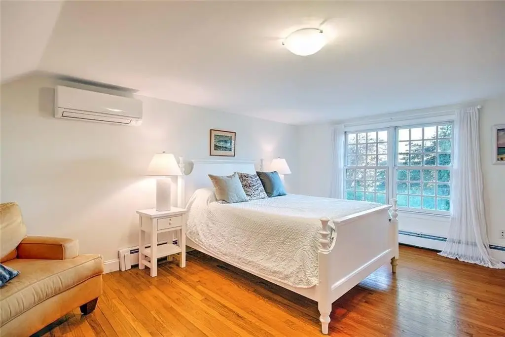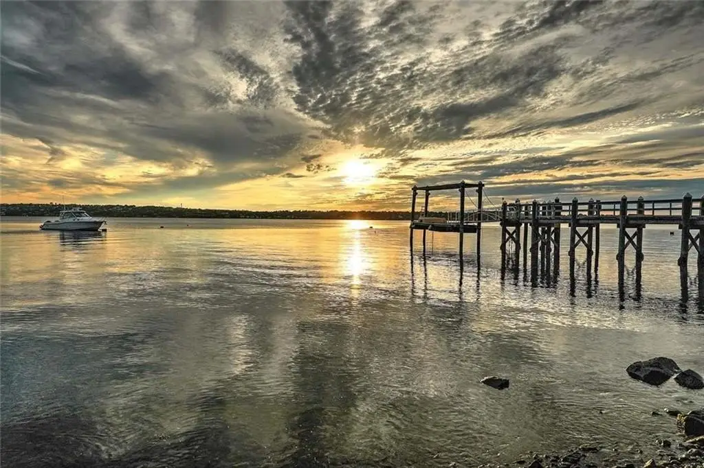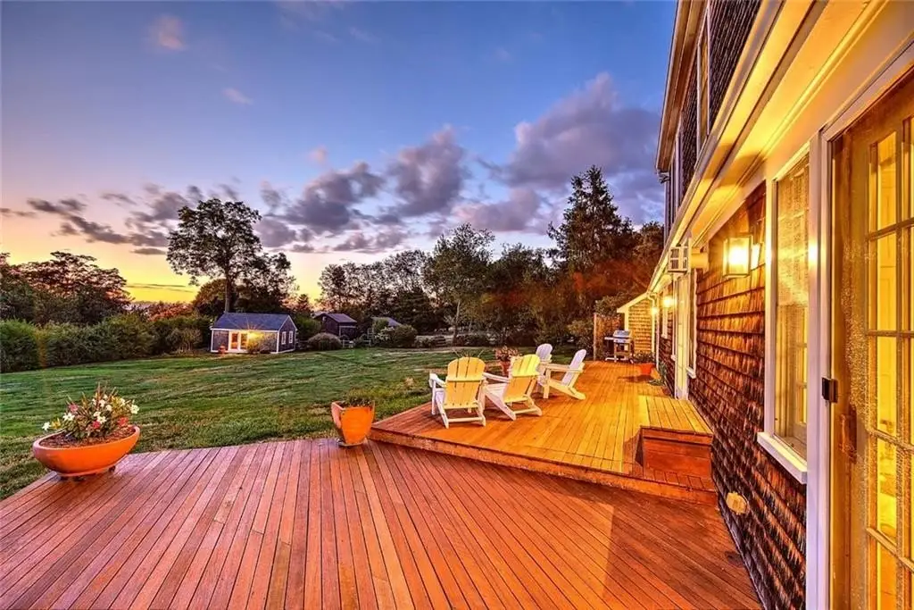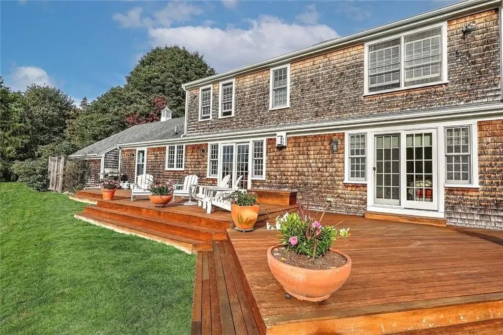 Just steps from the Sakonnet River, with deeded shoreline access and a mooring, 80 Leonard offers the best of coastal living. This 3-bedroom home features an updated, open floor plan that flows effortlessly from kitchen to dining to living areas—perfect for entertaining or simply enjoying the relaxed seaside lifestyle. A first-floor bedroom with fireplace, two additional bedrooms and a full bath upstairs, and fully renovated bathrooms throughout provide comfort and flexibility. Multiple doors open to expansive decks and a generous lawn, where sweeping sunset views over the water create the ideal backdrop for gatherings. Privately tucked at the end of a cul-de-sac, the property also includes an attached garage, a 300 SF studio/retreat, and an outdoor shower for rinsing off after a day on the water. Whether year-round or seasonal, this home is a true coastal retreat.