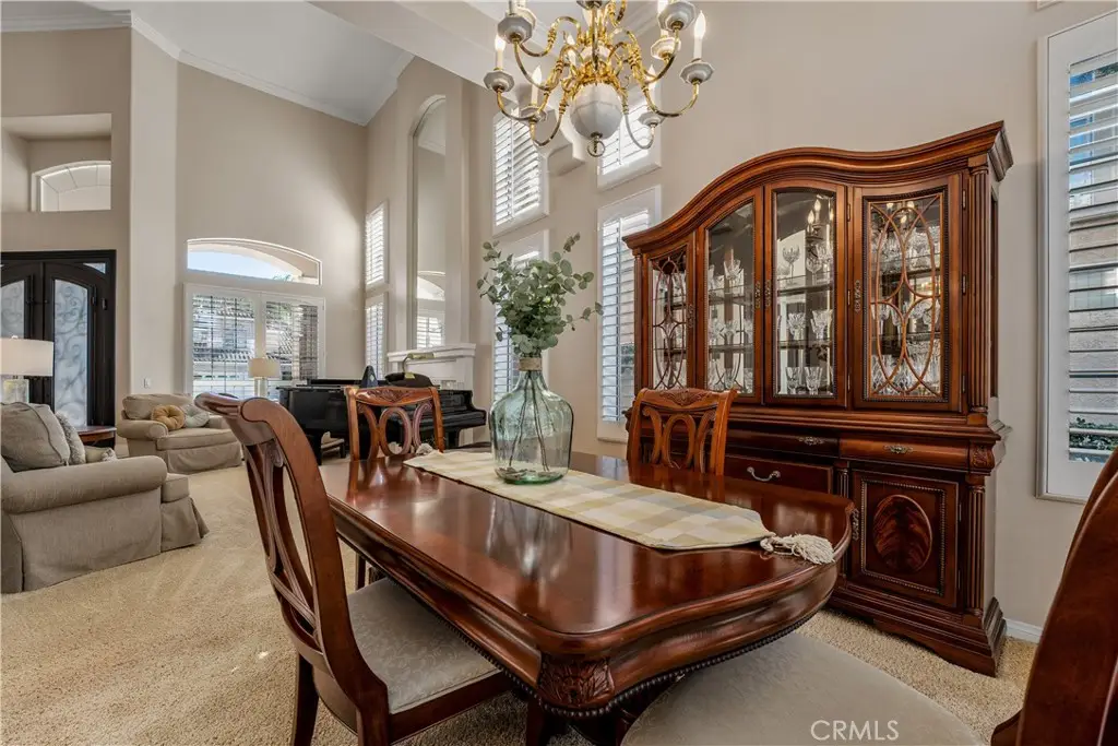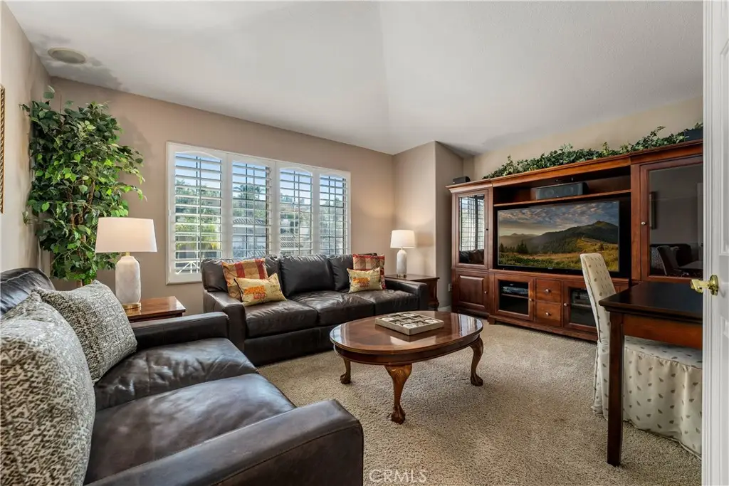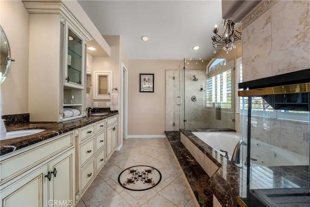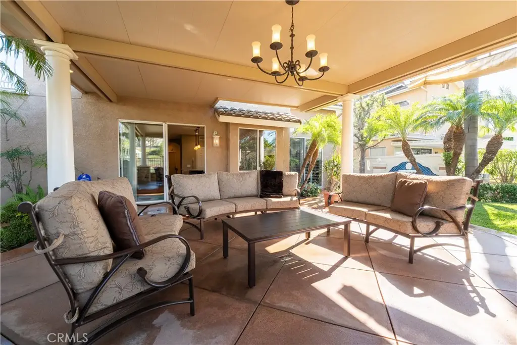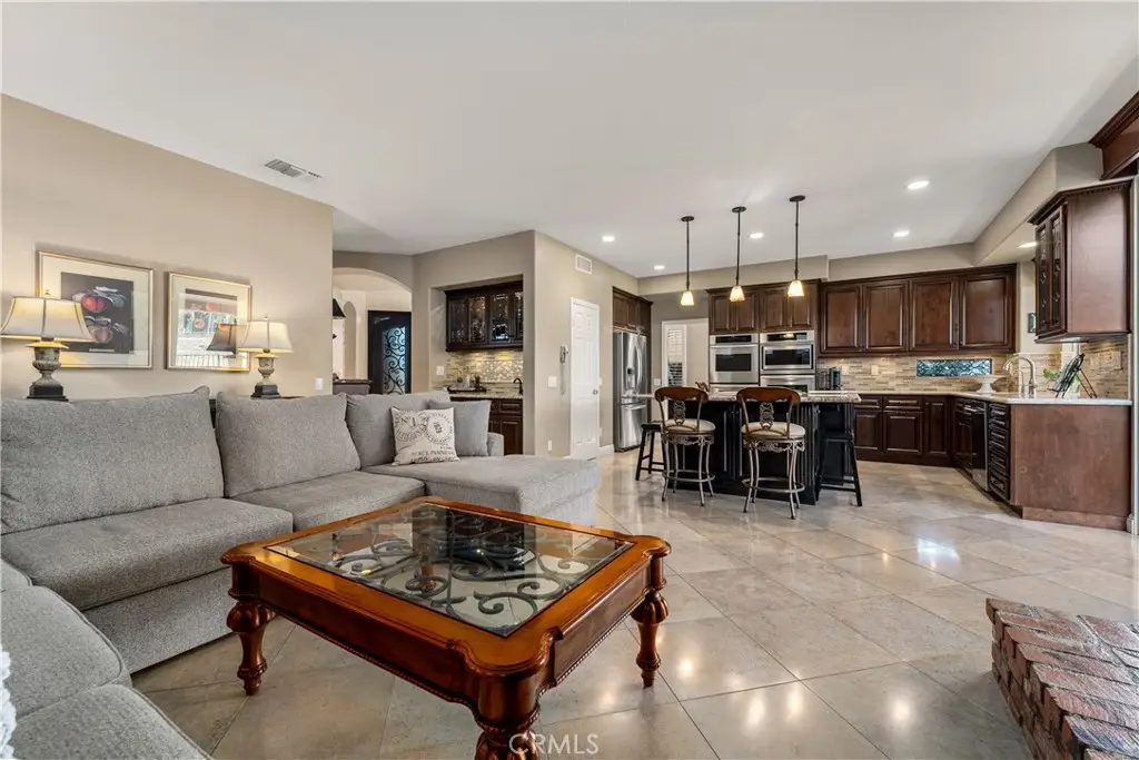 823 Cottontail Lane, Anaheim Hills 5 Bedrooms | 3 Baths | 3-Car Garage | Canyon View| Welcome to this beautifully upgraded view home in the hills of Anaheim. From the moment you arrive, the impressive curb appeal stands out with a front courtyard highlighted by a large fountain, and a colored concrete driveway accented with slate. Enter through elegant custom iron double doors into a welcoming foyer with fossilized Portuguese limestone floors. To the left, the formal living room features a custom fireplace mantel, mirrored wall, and crown molding. The adjoining formal dining room offers wood shutters and a sliding glass door that opens to the backyard patio, creating a seamless indoor/outdoor flow. The upgraded kitchen is a chef's delight with rich cabinetry, granite counters, tile backsplash, and an oversized island with bar seating and a five-burner cooktop. High-end Thermador appliances include three ovens and a microwave. Recessed and pendant lighting illuminate the space. The kitchen opens to the inviting family room complete with a brick fireplace, custom mantel, and a granite-topped wet bar--perfect for entertaining. The main level also includes a bedroom and an upgraded three-quarter bath, plus a convenient laundry room with sink. Upstairs, the spacious primary suite features double door entry, a retreat, ceiling fan, walk-in closet, and a private balcony to take in the serene canyon views. A double-sided fireplace warms both the retreat and the luxurious primary bath with dual vanities, upgraded cabinetry, recessed lighting, chandelier, a jetted tub, separate shower, and private toilet room. Three additional bedrooms--one currently used as a bonus room--share a well-appointed hall bath with dual sinks and a tub/shower combination. Step outside to a stunning backyard designed for entertaining, complete with an alumawood patio cover, outdoor fireplace, chandelier, mounted TV, BBQ island, and a soothing fountain--all set against a tranquil canyon backdrop. Additional features include wood shutters on all windows, a whole-house water softener and filtration system, and dual-zone heating and air conditioning for year-round comfort. Close to award winning schools, shopping, restaurants and freeways