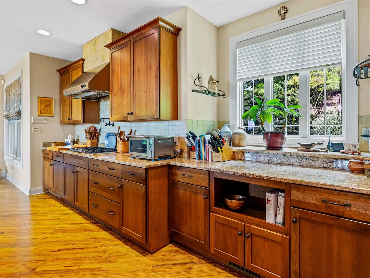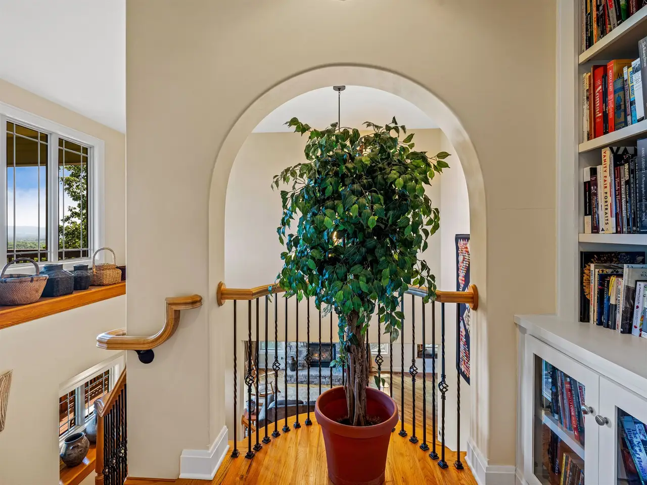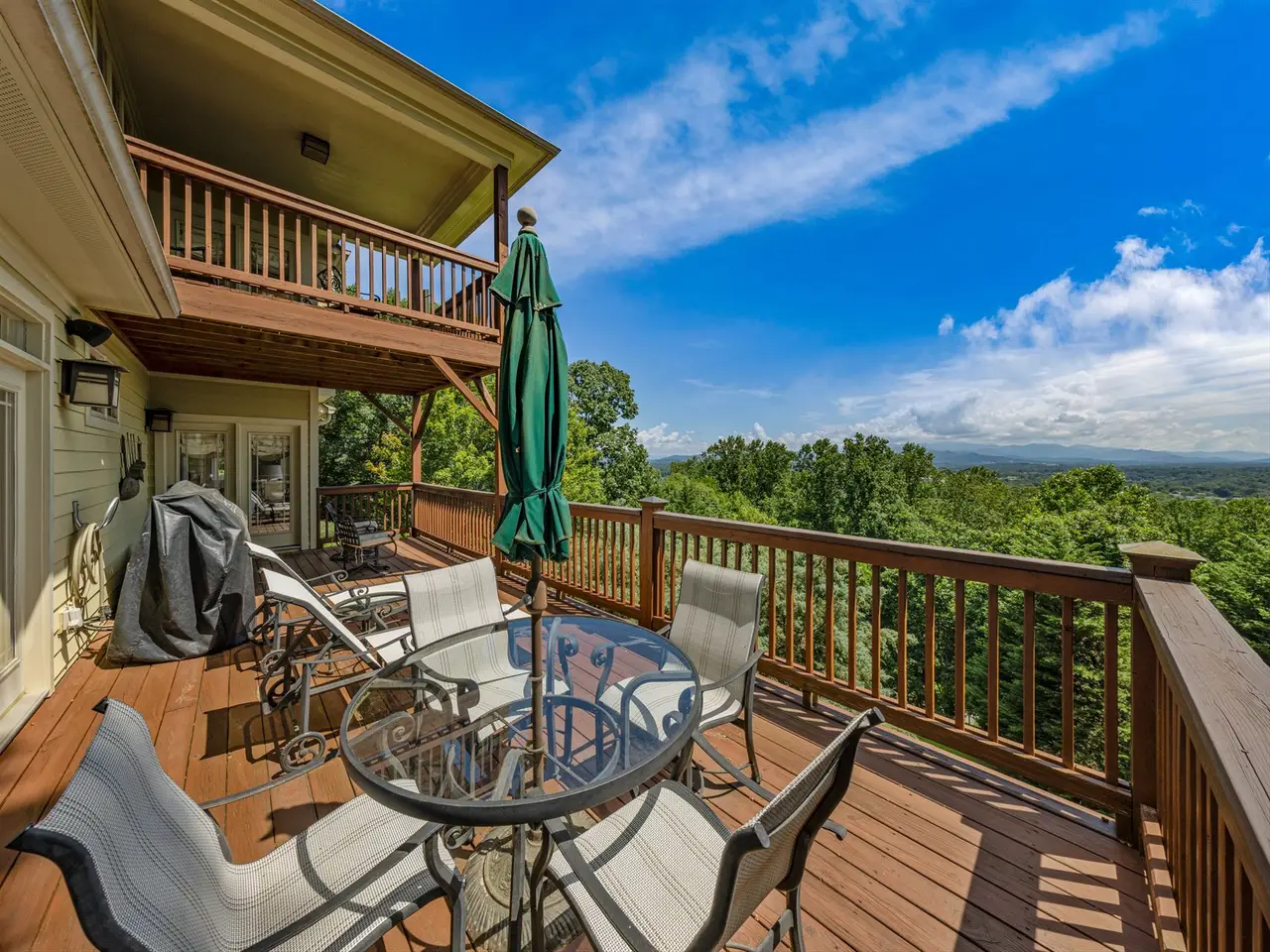 The views from this beautiful home will take your breath away. Sit on one of the 3 decks & enjoy majestic mountain views. The Biltmore House is in clear view! In the winter, you can see downtown Asheville. You will notice the exceptional quality & attention to detail throughout this home. Walk into a large foyer & vestibule, enjoy the large, designer kitchen, gather in the great room with soaring ceilings & stone fireplace & enjoy family gatherings in the dining room. The primary bedroom has a wall of windows so you wake up to the sun rising over the mountains. There are two guest bedrooms, a bath & another deck on the upper level. The basement level has another stone fireplace, family room, office/4th bedroom, laundry room, lots of storage & another large deck to enjoy outdoor living. The 3.26 acre lot is wooded and serene.