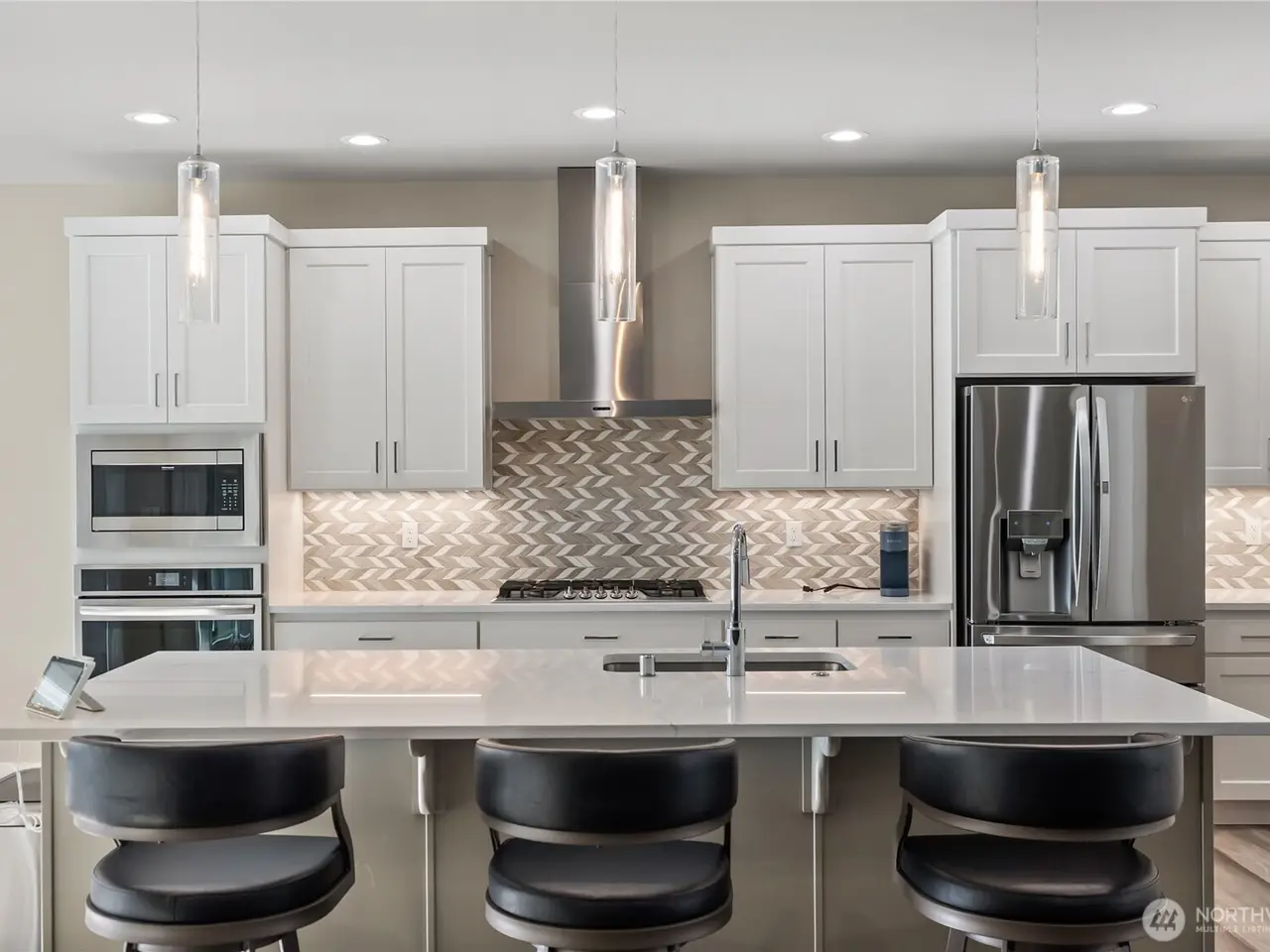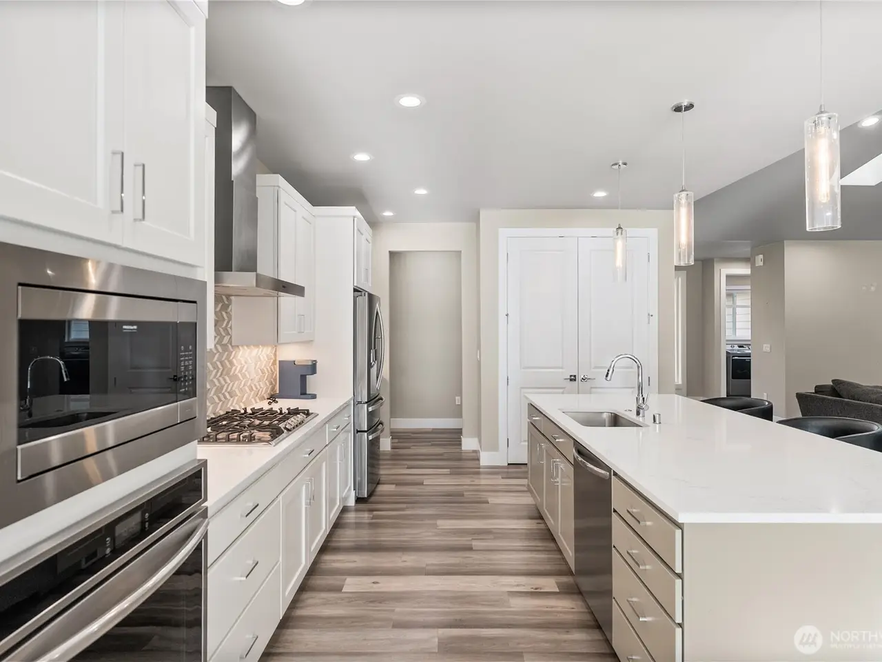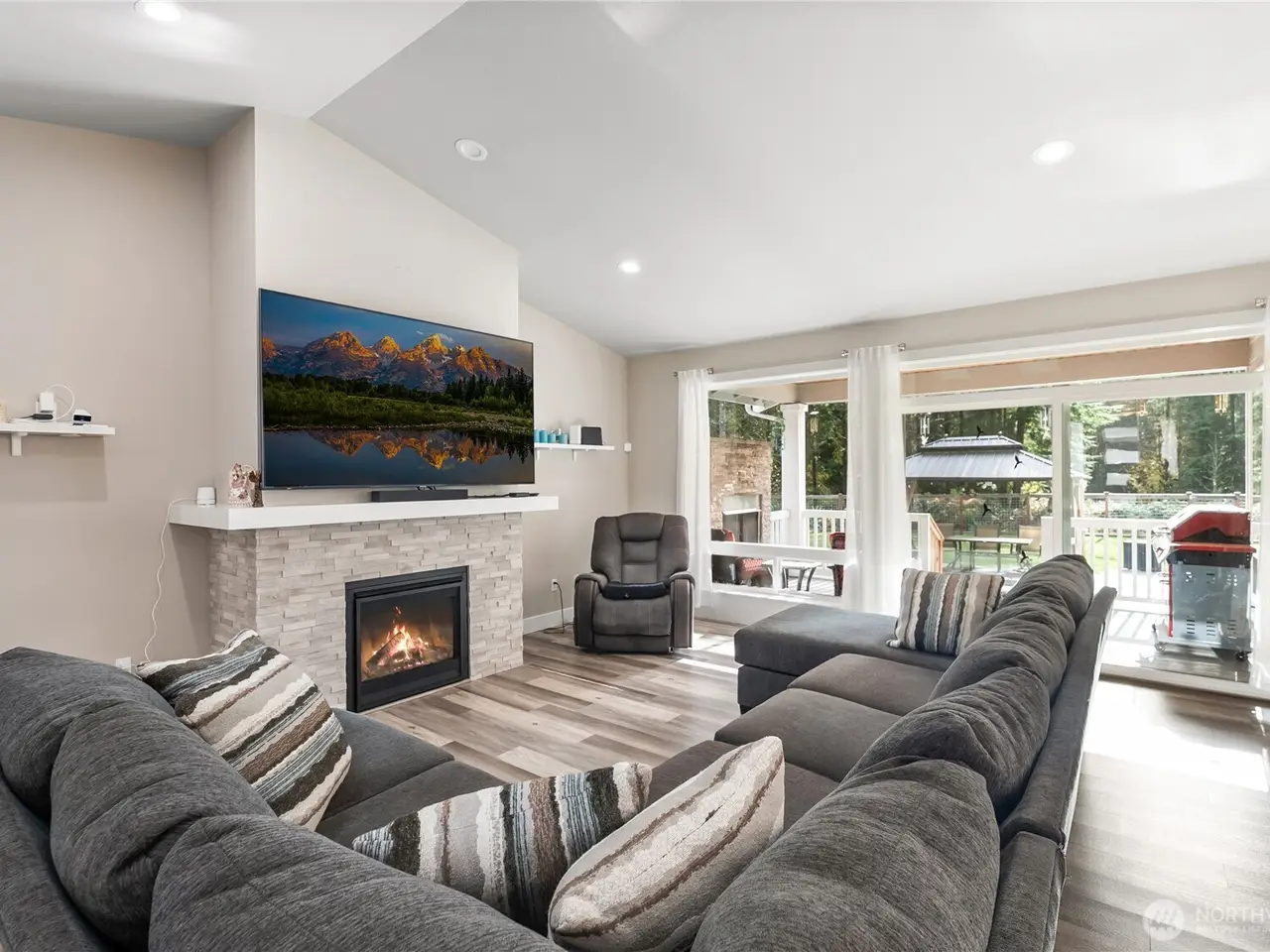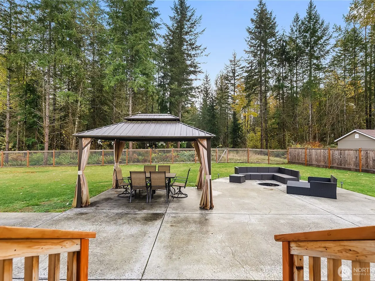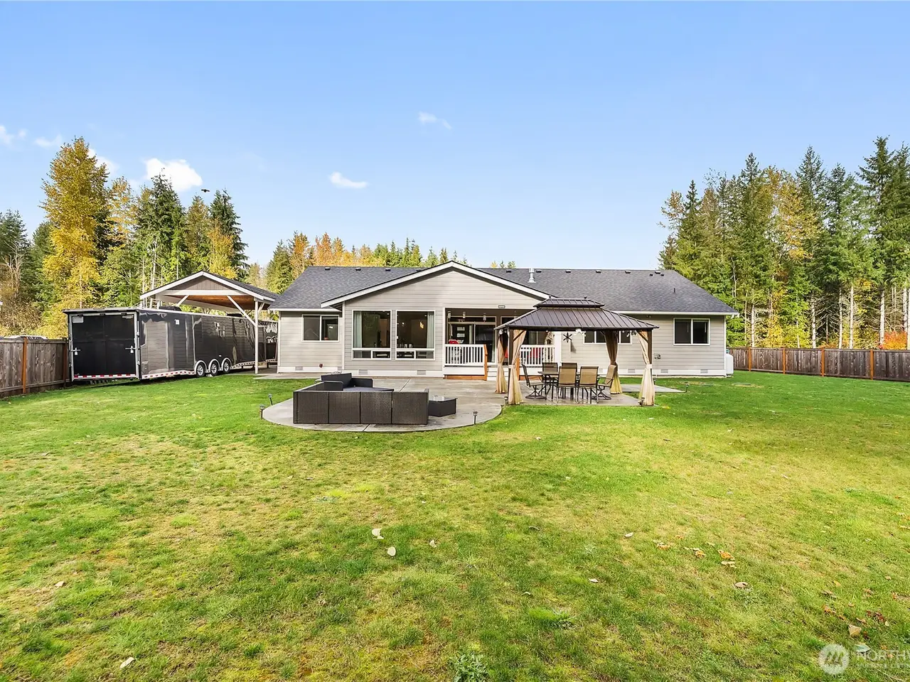 [BRIGHT + INVITING] This 2022-built Lake Stevens rambler offers the perfect blend of comfort and style on over an acre backing to a peaceful greenbelt for added privacy. Nearly 2,500 sq ft of open, functional living with 3 bedrooms, 2 baths, and an office. The light-filled kitchen features quartz countertops, a large island, and plenty of storage--ideal for gatherings + entertaining. Relax by the gas fireplace in the spacious living room or unwind in the spacious primary suite with a spa-like en-suite and walk-in closet. You'll love evenings on the deck, around the fire pit, or under the gazebo. 3-car garage + carport for parking and storage. Modern finishes throughout. Built in home generator! WELCOME HOME!