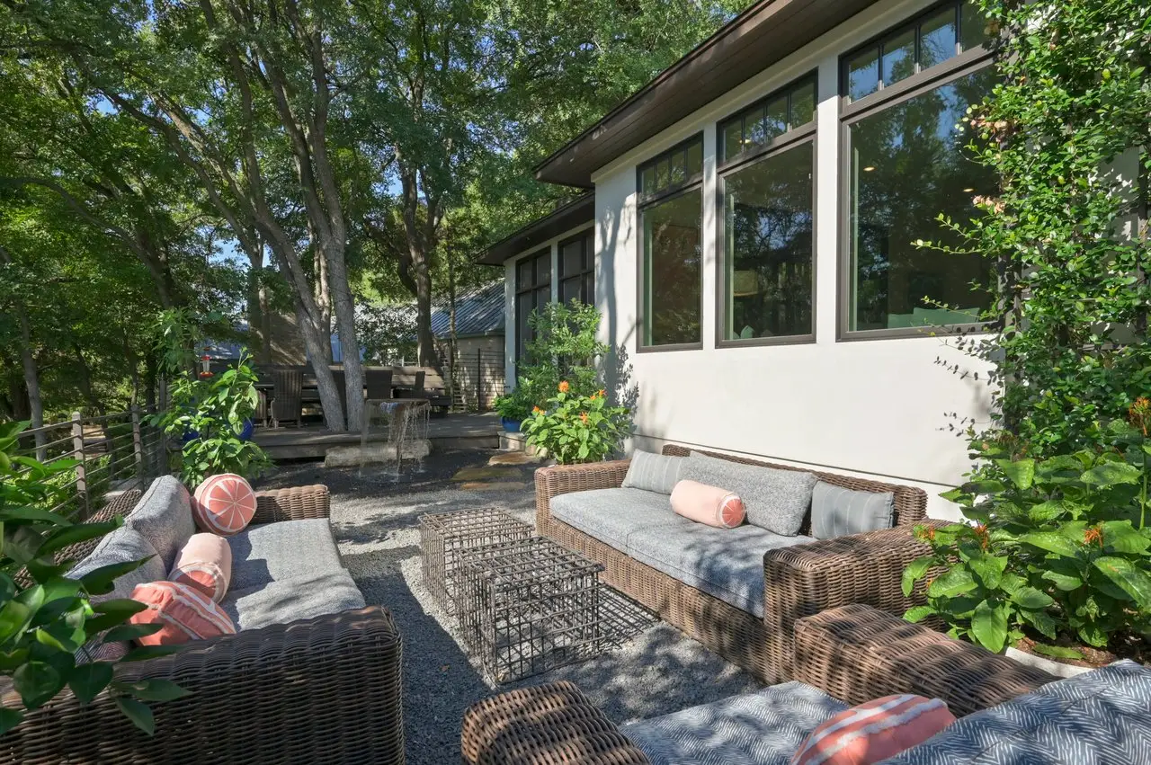 2406 Pemberton Parkway is situated on a coveted private street with only ten residences, making it a rare offering in the heart of prestigious Pemberton Heights. This 4,874 sq. ft. home (per FPG) combines timeless architecture with refined updates and exceptional outdoor living, all with direct access to Austin’s beloved Pease Park. Surrounded by lush, terraced landscaping and mature oaks, the residence is designed to maximize privacy and natural beauty. Expansive windows frame tranquil views of trees, creating a true sense of seclusion, while soaring ceilings and wide-plank wood floors add warmth and elegance. The chef’s kitchen is equipped with Sub-Zero and Wolf appliances, a generous island with seating, butler’s pantry, and abundant custom cabinetry—ideal for everyday living or entertaining on a grand scale. Open living and dining areas flow effortlessly to the screened-in porch with fireplace, perfect for year-round enjoyment. The primary suite is a serene retreat featuring a spa-inspired bath with dramatic book-matched stone, soaking tub, walk-in shower, dual vanities, and an oversized custom closet. Two additional en suite bedrooms and living area provide comfort for family or guests. A spacious media room and a designated office space with pocket doors can also function as a fourth bedroom if desired, offering flexibility for work, play, or additional sleeping space. Outdoor living shines with multiple terraces and an extraordinary east-side parcel featuring a putting green, fire pit, and seating areas, an unmatched extension of the property’s usable space. Additional amenities include a formal dining room, designated laundry room, and a two-car garage with hydraulic lifts to accommodate four vehicles. Located minutes from Downtown Austin, UT, and the city’s top dining and cultural destinations, this property offers a rare combination of privacy, convenience, and connection to nature—an exceptional opportunity in one of Austin’s most sought-after neighborhoods.