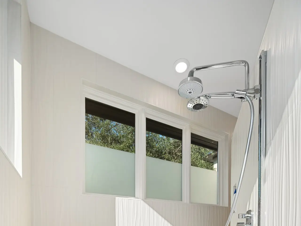 • Spa-inspired bath with book-matched stone