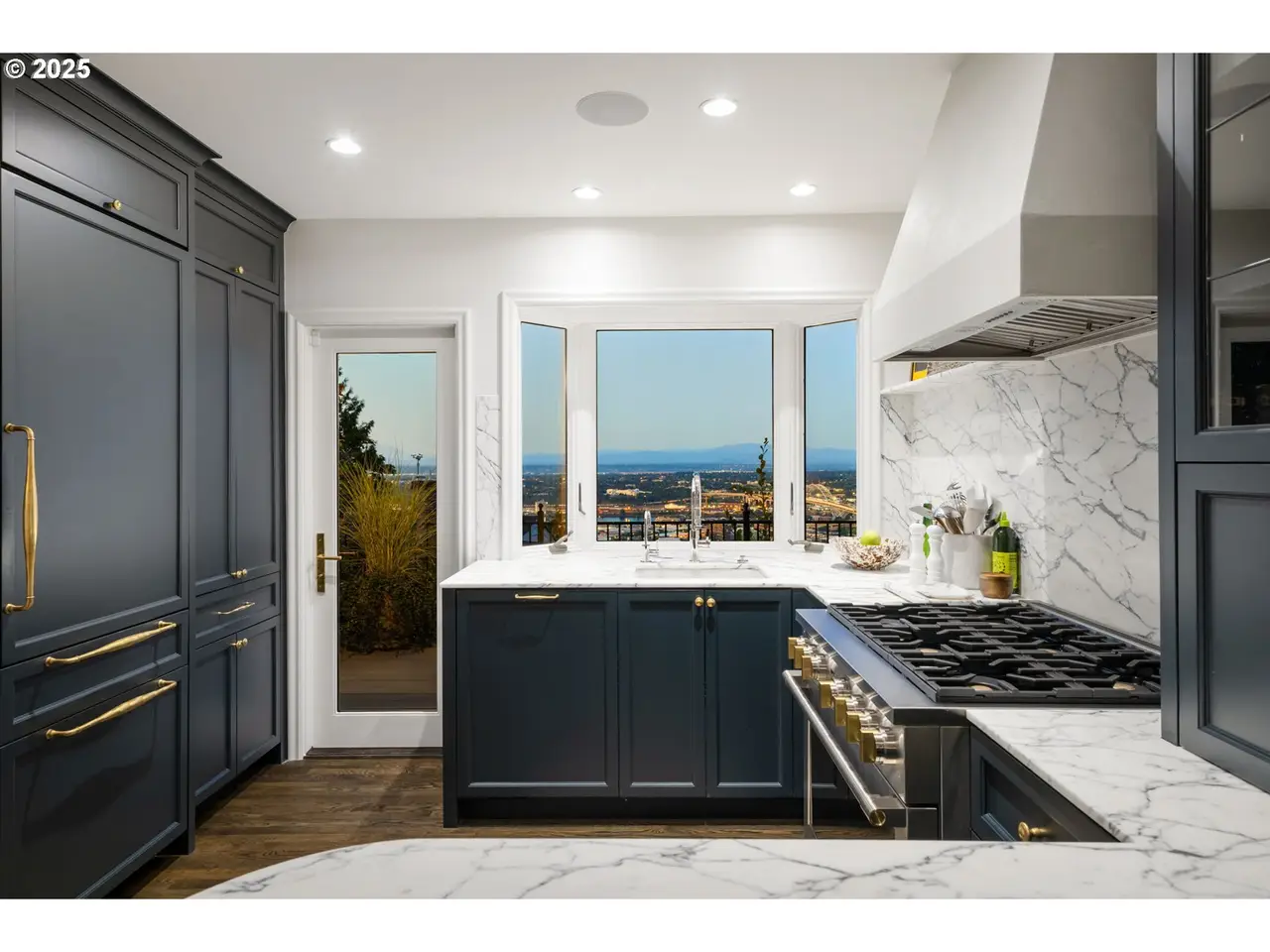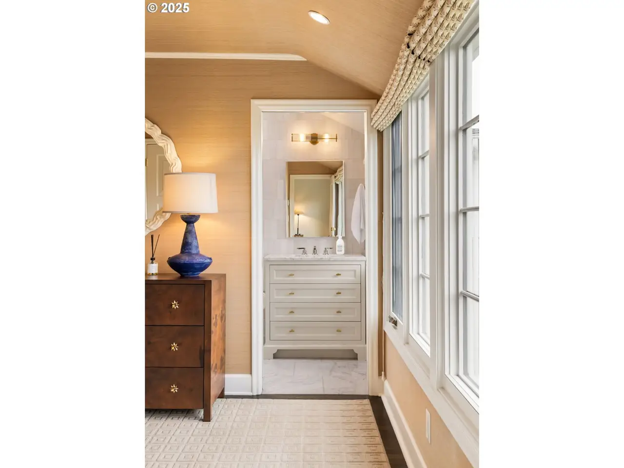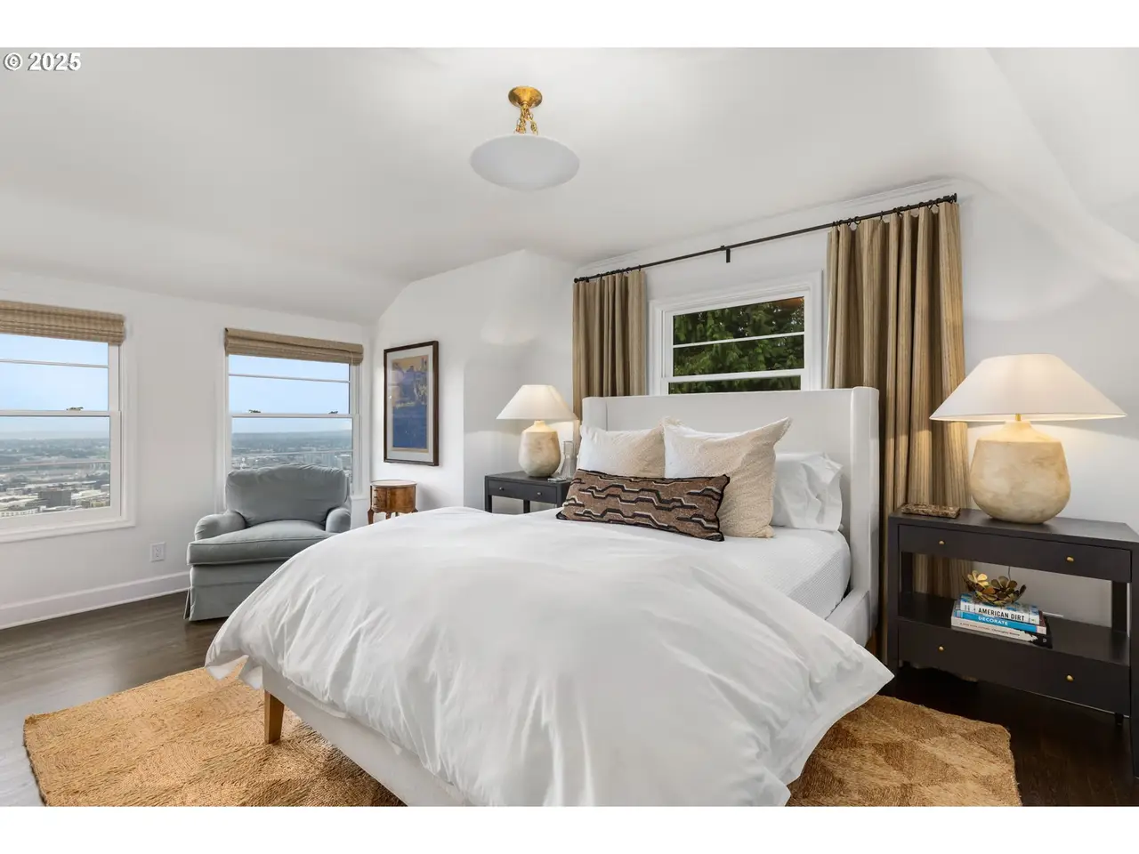 Experience timeless elegance reimagined. Perched in Portland's coveted Kings Heights, this 1939 traditional has been meticulously restored by Maison Inc. to the highest modern design standards while fulfilling the owners mission in honoring its original character. Sweeping city vistas frame Mt. St. Helens and Mt. Adams, setting the stage for refined living. Every detail has been considered: all-new plumbing, electrical, and Lutron-controlled lighting; custom cabinetry; and hand-selected finishes of the finest quality. The chef's kitchen showcases slab Calcutta marble, bespoke cabinetry, and a charming built-in dining nook. Venetian plaster walls in the formal dining room, a marble fireplace surround, and custom millwork lend warmth and sophistication. Thoughtfully reimagined for today's lifestyle, the living room opens to an expansive cedar deck with iron railing crafted to mirror the original design. Landscaped grounds feature smart irrigation, exterior lighting, and a gas fire pit line, creating an inviting outdoor retreat. A true testament to design and craftsmanship, this home blends classic tradition with modern luxury in one of Portland's most desirable neighborhoods. [Home Energy Score = 2. HES Report at https://rpt.greenbuildingregistry.com/hes/OR10199223]