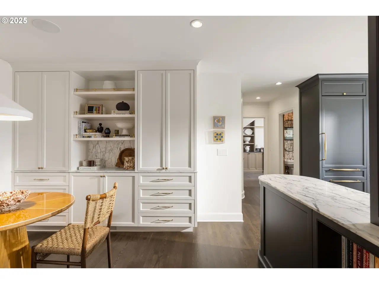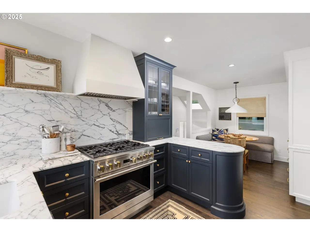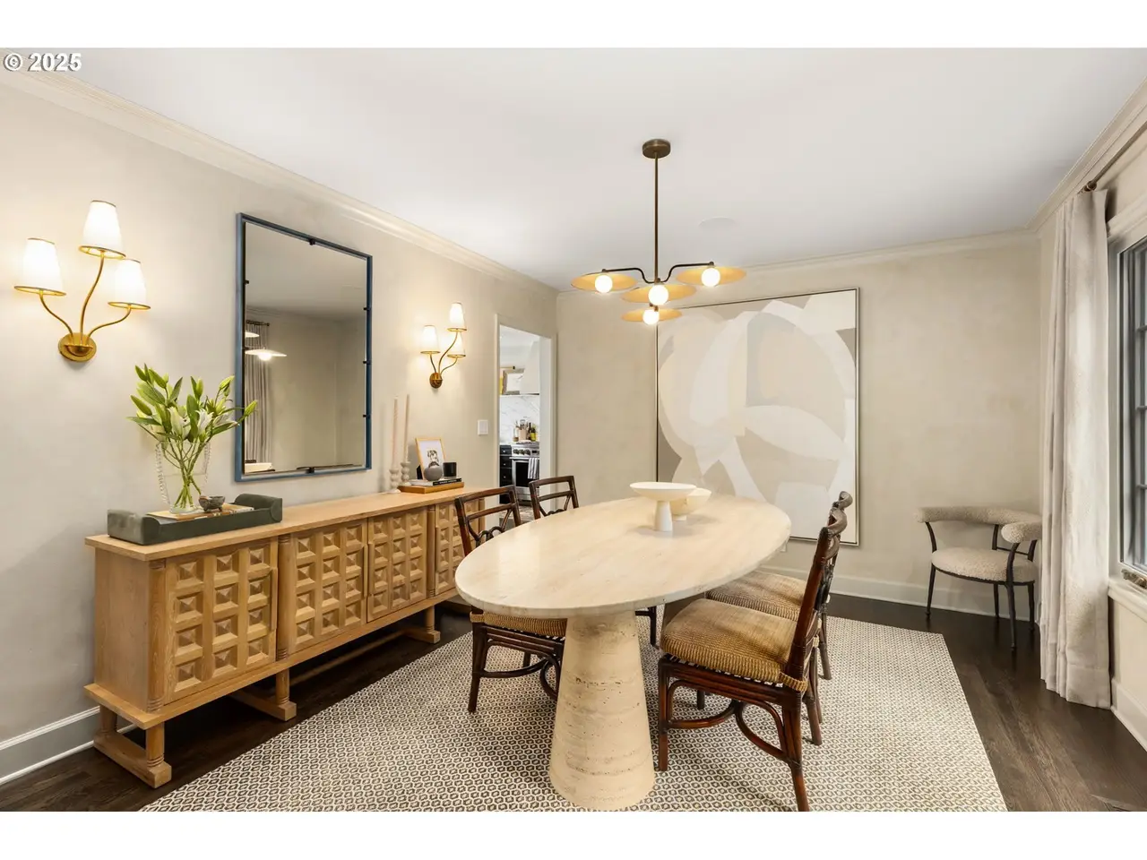 Experience timeless elegance reimagined. Perched in Portland's coveted Kings Heights, this 1939 traditional has been meticulously restored by Maison Inc. to the highest modern design standards while fulfilling the owners mission in honoring its original character. Sweeping city vistas frame Mt. St. Helens and Mt. Adams, setting the stage for refined living. Every detail has been considered: all-new plumbing, electrical, and Lutron-controlled lighting; custom cabinetry; and hand-selected finishes of the finest quality. The chef's kitchen showcases slab Calcutta marble, bespoke cabinetry, and a charming built-in dining nook. Venetian plaster walls in the formal dining room, a marble fireplace surround, and custom millwork lend warmth and sophistication. Thoughtfully reimagined for today's lifestyle, the living room opens to an expansive cedar deck with iron railing crafted to mirror the original design. Landscaped grounds feature smart irrigation, exterior lighting, and a gas fire pit line, creating an inviting outdoor retreat. A true testament to design and craftsmanship, this home blends classic tradition with modern luxury in one of Portland's most desirable neighborhoods. [Home Energy Score = 2. HES Report at https://rpt.greenbuildingregistry.com/hes/OR10199223]