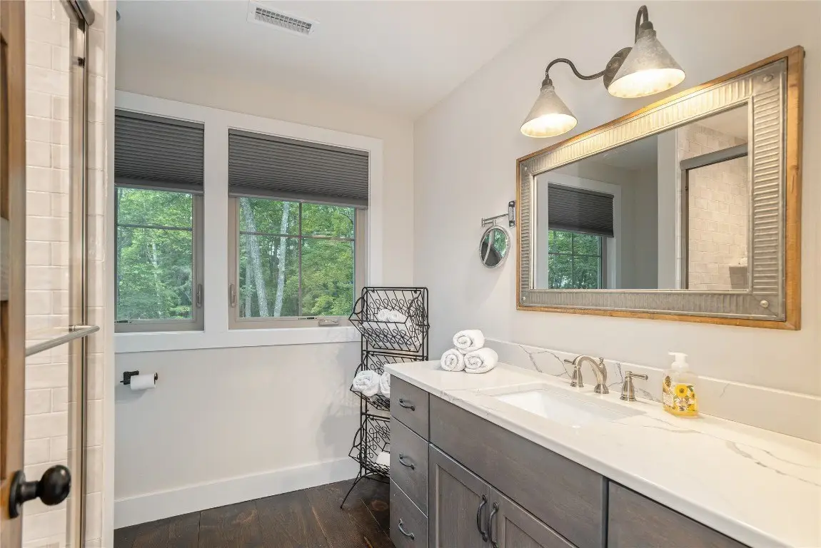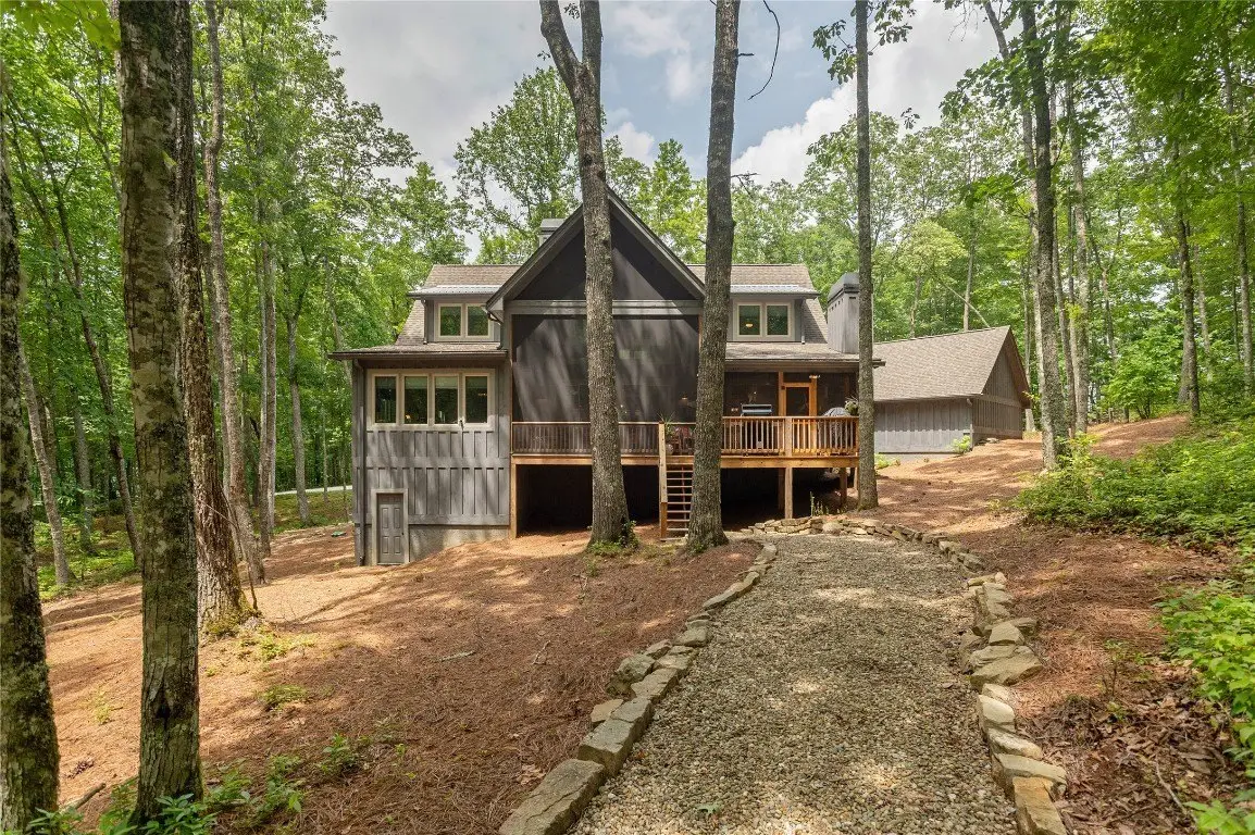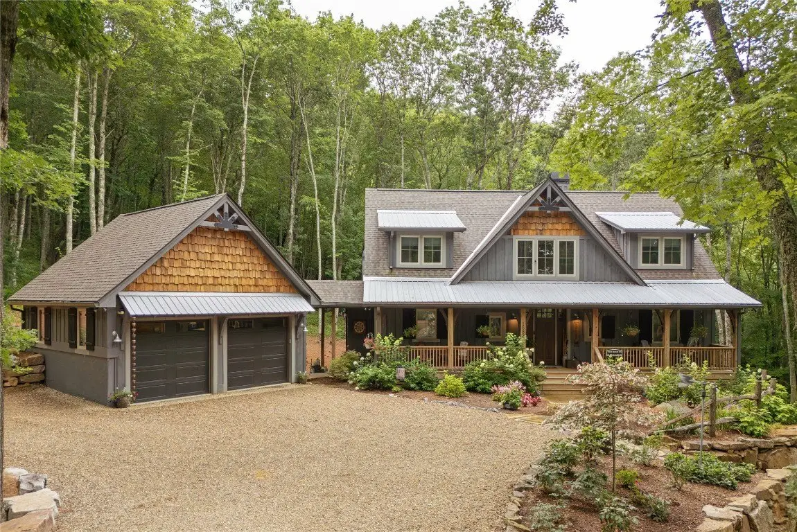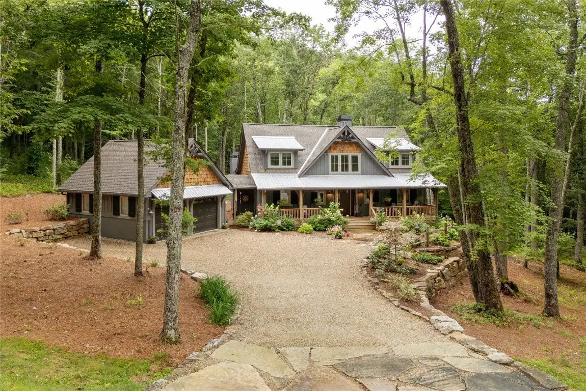 Experience the perfect harmony of easy outdoor living and tranquility at 1582 New Settler's Way, a mountain retreat crafted by Fern Creek Builders. Located in the desirable Chinquapin community, this three-bedroom, three-and-a-half-bathroom home offers a rare opportunity to own a piece of paradise, where classic mountain finishes blend seamlessly with serene natural surroundings. Inside, a thoughtfully designed floor plan features a welcoming rocking-chair front porch, two cozy fireplaces, abundant natural light, and low-maintenance finishes throughout. The spacious gourmet kitchen connects to a warm living area, perfect for entertaining or relaxing. An indoor-outdoor lifestyle is highlighted by a screened-in porch, a grill deck, and a stone firepit — ideal for enjoying starry mountain nights. The property borders a winding creek and is complemented by the gentle sounds of a nearby waterfall, making it an ideal retreat to spend time in nature. Whether enjoying a morning coffee on the porch or relaxing by the fire, the setting offers quiet serenity. Additional features include an attached two-car garage, ample storage, spacious ensuite guest bedrooms, and access to community outdoor amenities within the gated Chinquapin community. Chinquapin spans an impressive 2,000 acres with more than 700 acres dedicated to permanent conservation. This community offers park-like living with a host of unparalleled amenities. Scenic trails for hiking, biking, and utility terrain vehicles provide for an outdoor lifestyle, while fishing opportunities are available in the community’s lakes and streams. Pickleball courts, a disc golf course, and a driving range are also available just moments away. The Outpost Clubhouse provides a fitness facility, cozy gathering spaces, and seasonal live music during the vibrant Summer Concert Series. Whether relaxing by the firepit, canoeing along tranquil waters, or exploring the unspoiled natural surroundings, Chinquapin presents countless ways to connect with nature and neighbors alike. Offering unmatched ease of access compared with other available lots, this move-in-ready property at 1582 New Settler's Way promises exceptional peace, privacy, and refined mountain living, whether as a full-time residence or a mountain retreat.