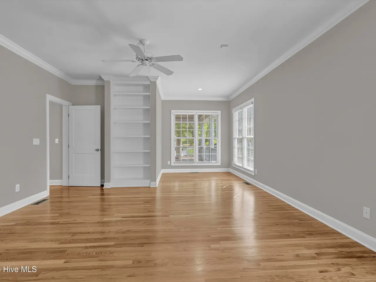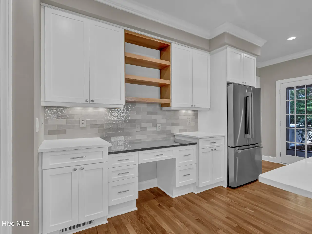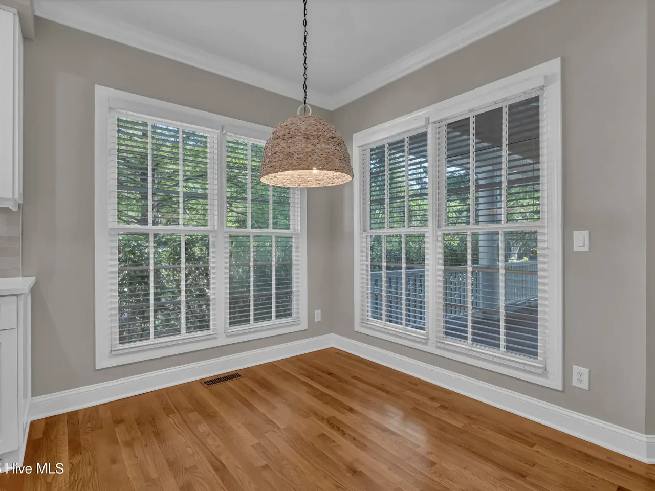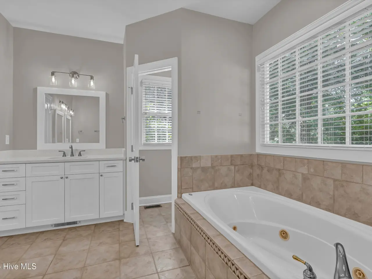 Newly renovated home in one of Landfall's most sought after neighborhoods. Charming southern-inspired design by Scott Sullivan. Curb appeal abounds with stately live oak trees, lush landscaping, and a circular aggregate driveway. The welcoming entrance features a large wraparound porch with Ipe decking, tongue and groove ceiling and partial views of the ICWW over the Nicklaus Ocean course. Upon entering the home, you are greeted with newly refinished hardwood floors, 9' ceilings, heavy crown molding, picture frame moldings and chair rail. To the left is an office with French glass doors, and to the right, a formal dining room that leads to the newly updated kitchen. The large primary bedroom is located on the first floor and features separate walk-in closets and a partial view of the ICWW and Ocean Course. The second floor has three bedrooms, offering separation and privacy, plus an oversized bonus room. An exceptionally bright home with large windows that capture the sun throughout the day. The back of the house features a screened-in porch, open deck, and large backyard with plenty of room to add a pool. The side-loading three-car garage provides plenty of storage area, along with a newly epoxied floor and a utility room with an extra refrigerator-freezer. The new homeowner will enjoy numerous upgrades, including refinished hardwood floors, new carpeting, and fresh paint throughout, two new HVAC systems, new chandeliers, and recessed LED canned lights. New interior doors and hardware. The kitchen has been updated with Quartz countertops and new stainless LG appliances with a natural gas range. Quartz countertops, cabinets, and sconce lighting in the bathrooms. All of this on a large .46-acre lot - your forever home awaits.