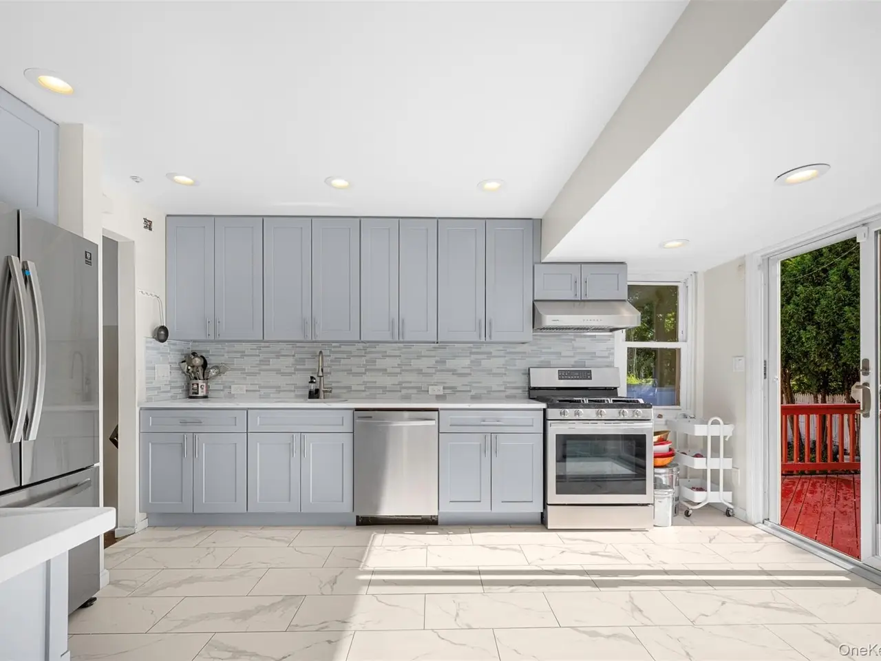 Beautiful Split-Level Family Home on a Corner Lot - Move-In Ready! Welcome to this inviting and well-maintained split-level single-family home offering comfort, style, and functionality. Step inside to a bright living room featuring a cozy fireplace, creating a warm and welcoming space for gatherings. The open layout flows seamlessly into the dining area and modern kitchen, complete with granite countertops, marble tile flooring, quality cabinetry, and full utilities. From the kitchen, step right out onot your private deck - a perfect spot for morning coffee or weekend barbeques. The upper level features three spacious bedrooms, including a primary suite with its own private bath. Each bedroom is filled with natural light, large windows with blinds, and generous closet space. A second full bathroom serves the remaining bedrooms. An additional fourth bedroom on the next level provides extra flexibility - ideal for guests, a playroom, or a home office - with two closets for added storage. The lower level offers a comfortable family room with tile flooring, a powder room, and access to the attached garage. The finished basement includes a washer and dryer and offers space for recreation, a gym, or storage. Outside, enjoy a beautifully landscaped backyard featuring a paved patio area perfect for family gatherings and summer entertaining. THe corner lot provides added space, privacy, and great curb appeal. Conveniently located near parks, schools, shopping, and major highways, this home offers everything you need for easy, comfortable living. A wonderful opportunity to own a move-in ready home that truly has it all!