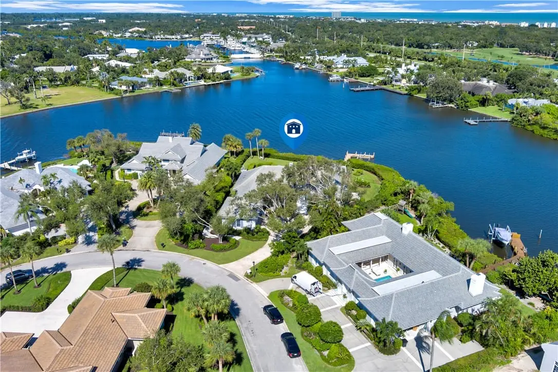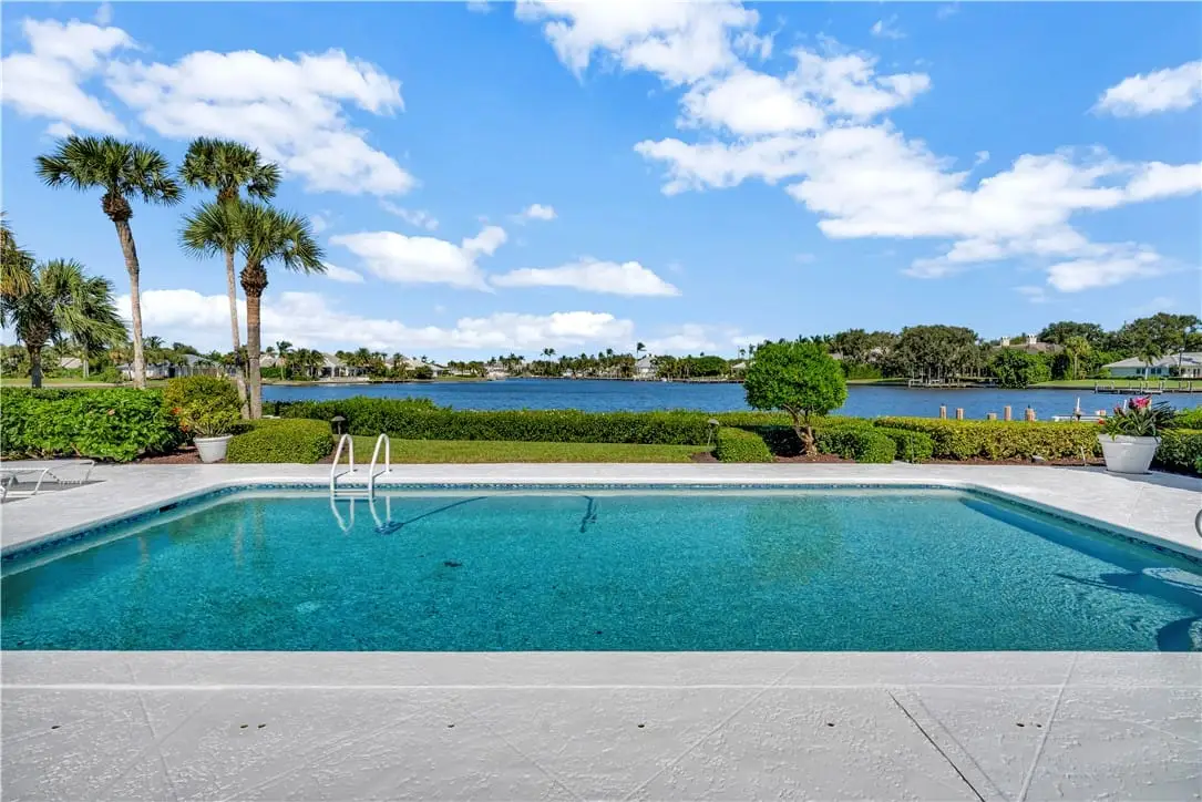 Sweeping water views define this waterfront property. Situated on over half an acre, this home boasts a private dock w/lift, 4861 sq ft under air, a 2021 tile roof, full-home generator & a elec. heated pool overlooking the water. Thoughtfully designed for refined living; the interior includes a grand family room with cathedral ceilings & wet bar room, formal dining room, library & spacious living room w/gas fireplace. The generous primary suite captures captivating water vistas, creating a serene retreat. An exceptional opportunity for refined riverfront living. Sizes approx./subj. to error.
