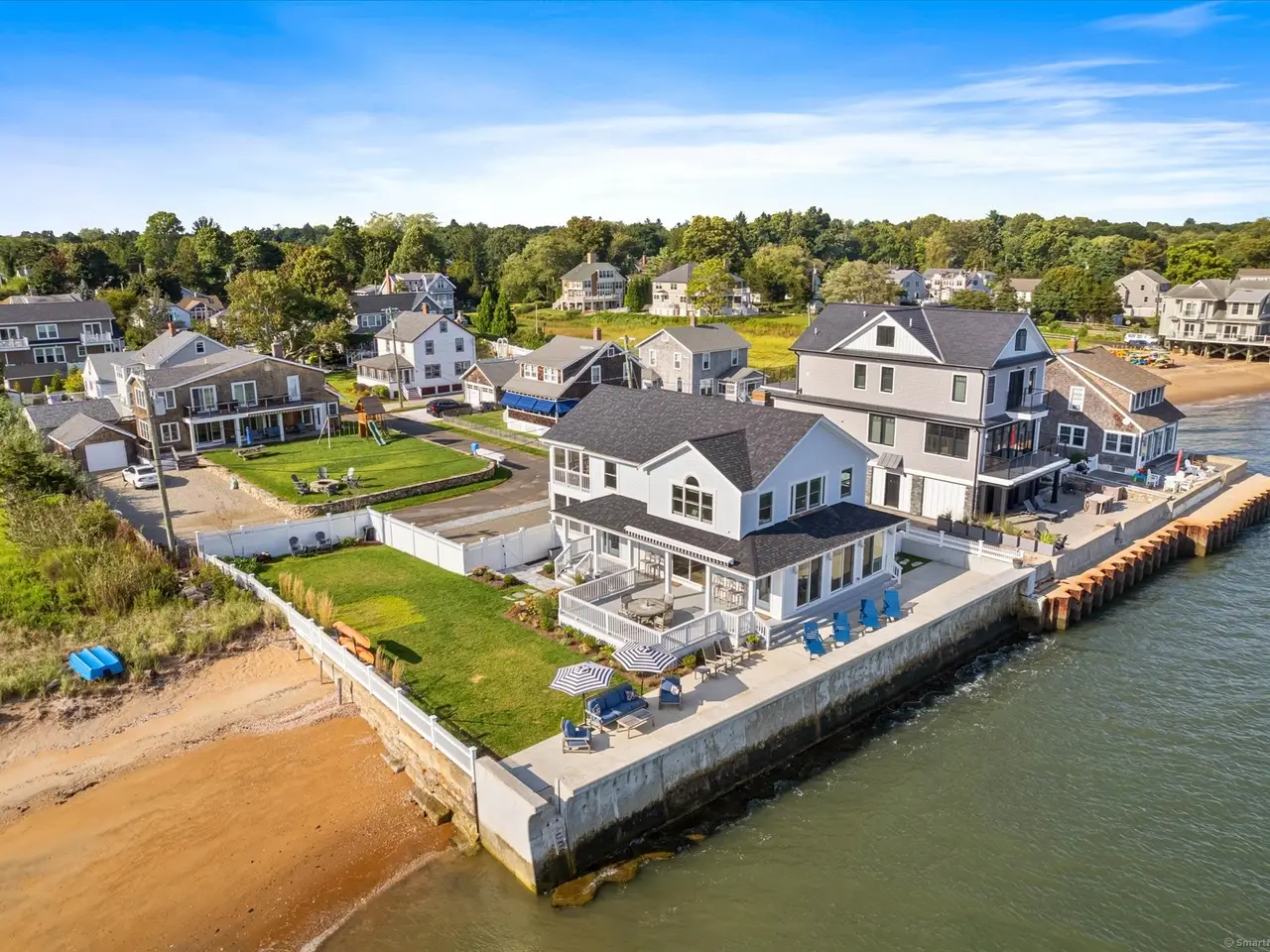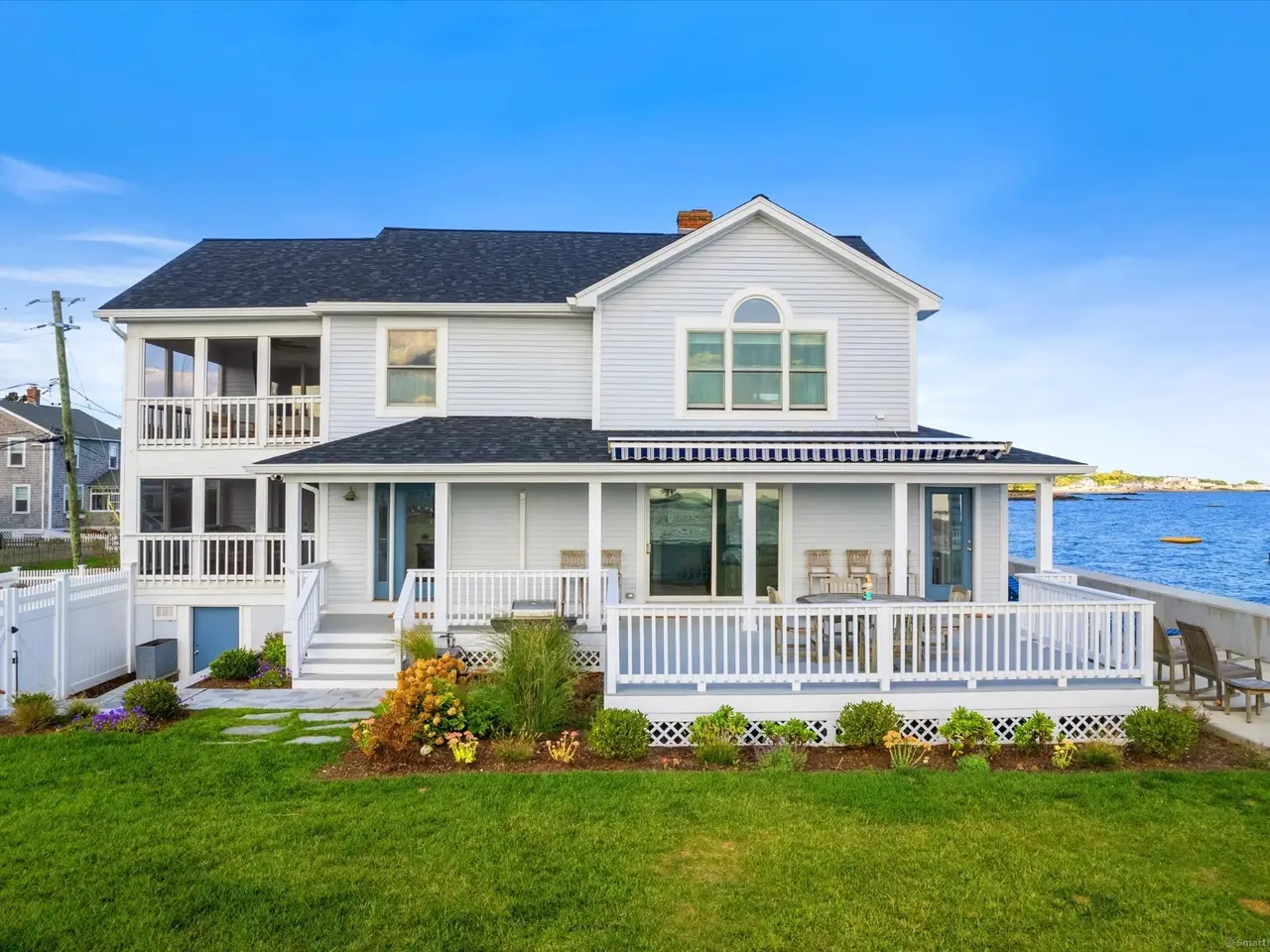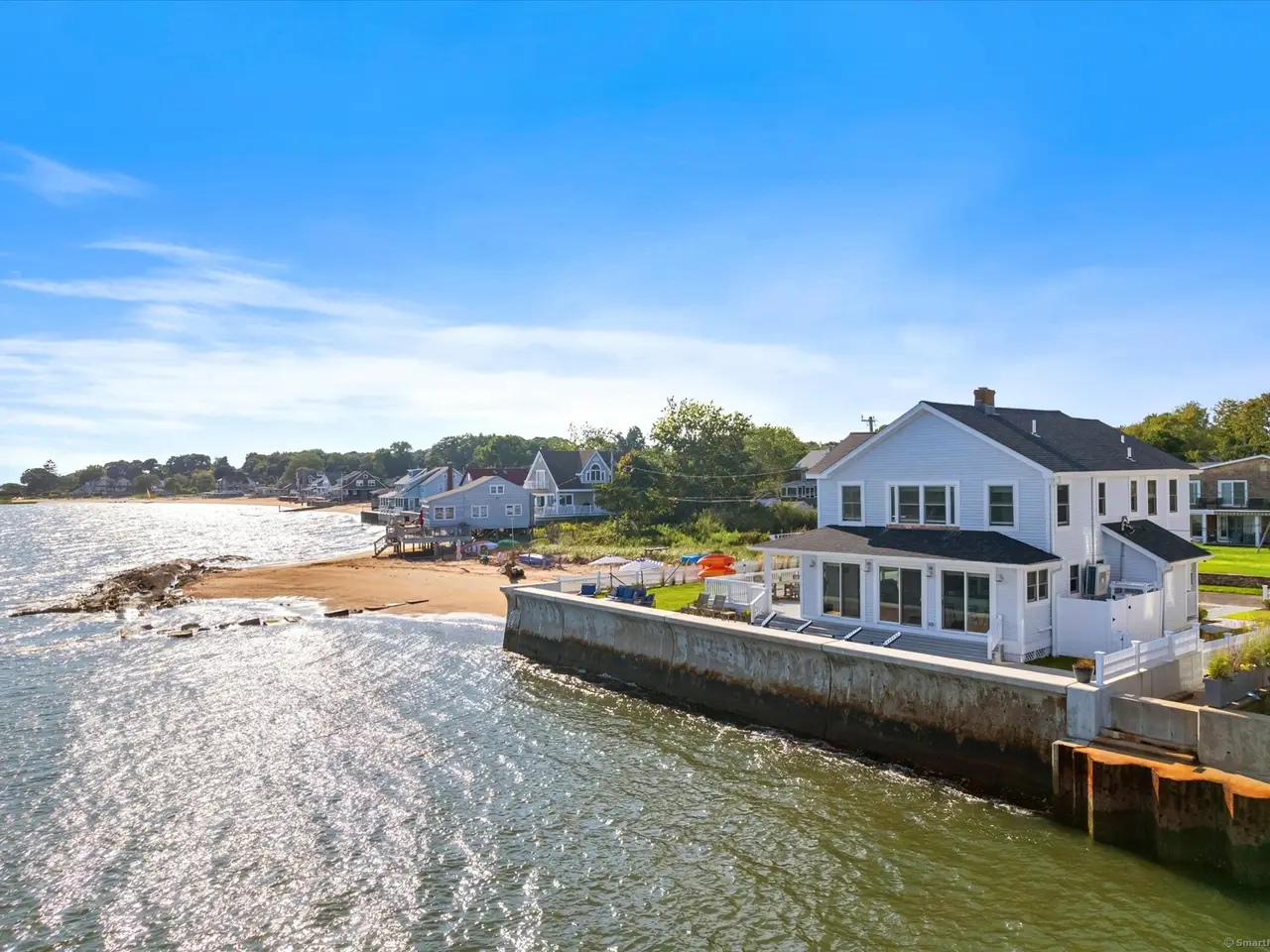 Welcome to your dream coastal retreat! Perfectly sited on a double waterfront lot, this stunning year-round home offers sweeping water views, a private mooring with a trampoline, and ample outdoor living space designed for entertaining and relaxation. Enjoy patios, decks, and a lush, irrigated lawn surrounded by professionally landscaped gardens featuring salt-tolerant plantings and a new cobblestone-bordered driveway. This property has undergone countless upgrades including a new sea wall, roof, gutters, windows, bathrooms, hardwood flooring, central air, fencing, exterior/interior paint, and an outdoor hot/cold shower. A large, remote-controlled awning and ceiling fans enhance comfort throughout. Step inside to a bright open-concept floor plan with multiple seating areas and a gourmet kitchen featuring all-new stainless steel appliances - including an Advantium induction cooktop/convection oven, range hood, and a striking tiled backsplash. A welcoming new front entry and mudroom lead to a first-floor screened porch, cozy den/TV area, and a stylish new half bath. The first-floor bedroom and full bath offer flexible living options, while the second floor boasts three additional bedrooms. The primary suite is a showstopper, with vaulted ceilings, panoramic water views, and a new private laundry room. Two additional bedrooms enjoy water views and open onto a charming sleeping porch, perfect for summer nights by the sea. Additional features include a waterproofed basement by by CT Basement Systems, ideal for storage. As part of Lee Manor Beach, you'll enjoy deeded rights to a private sandy beach just steps away. Experience the best of Madison coastal living-where every day feels like a vacation.