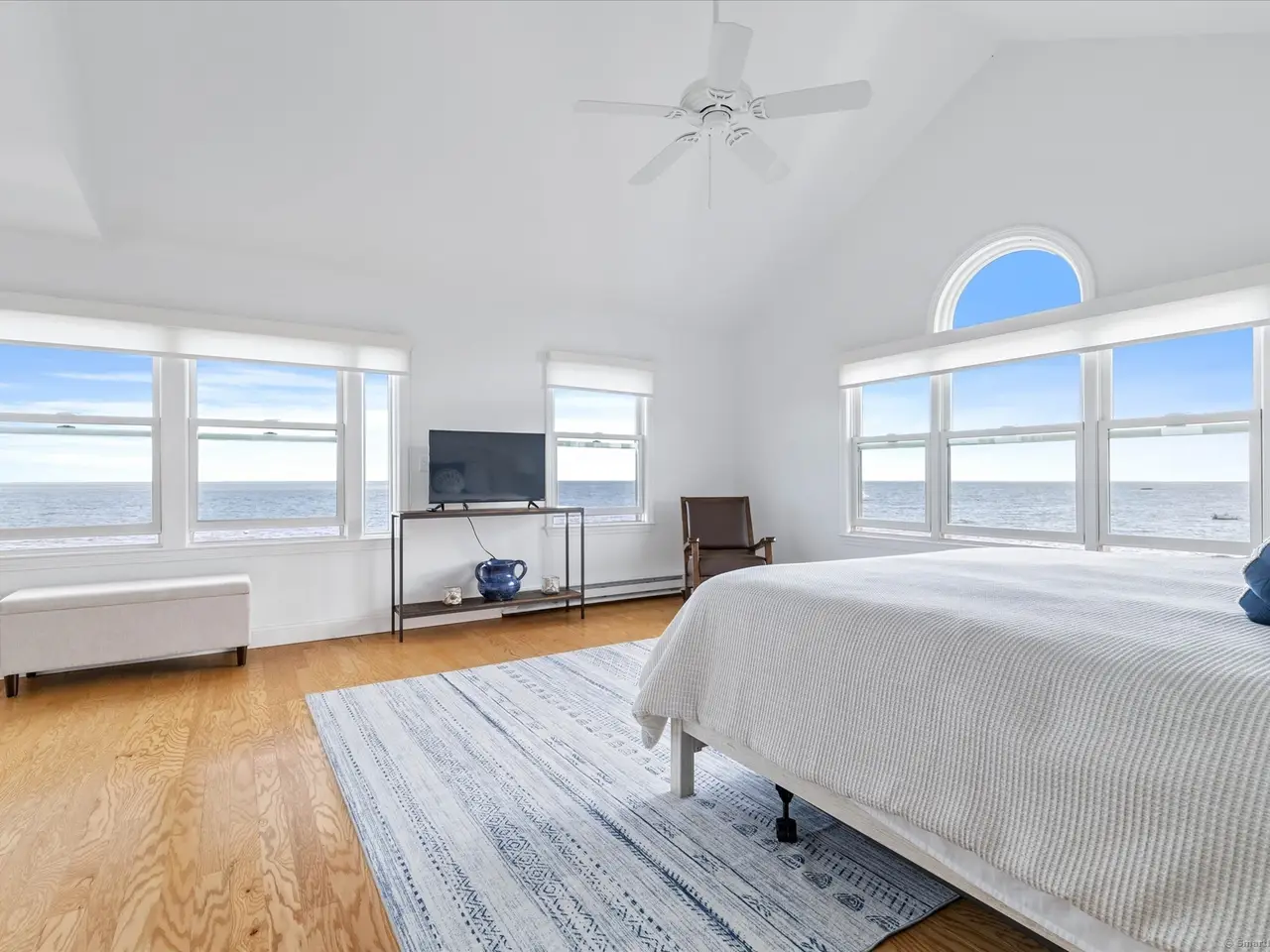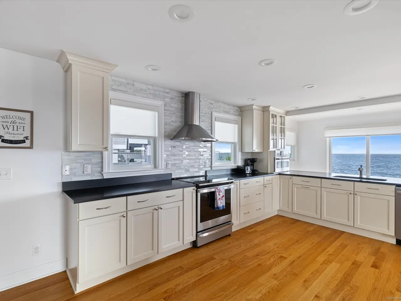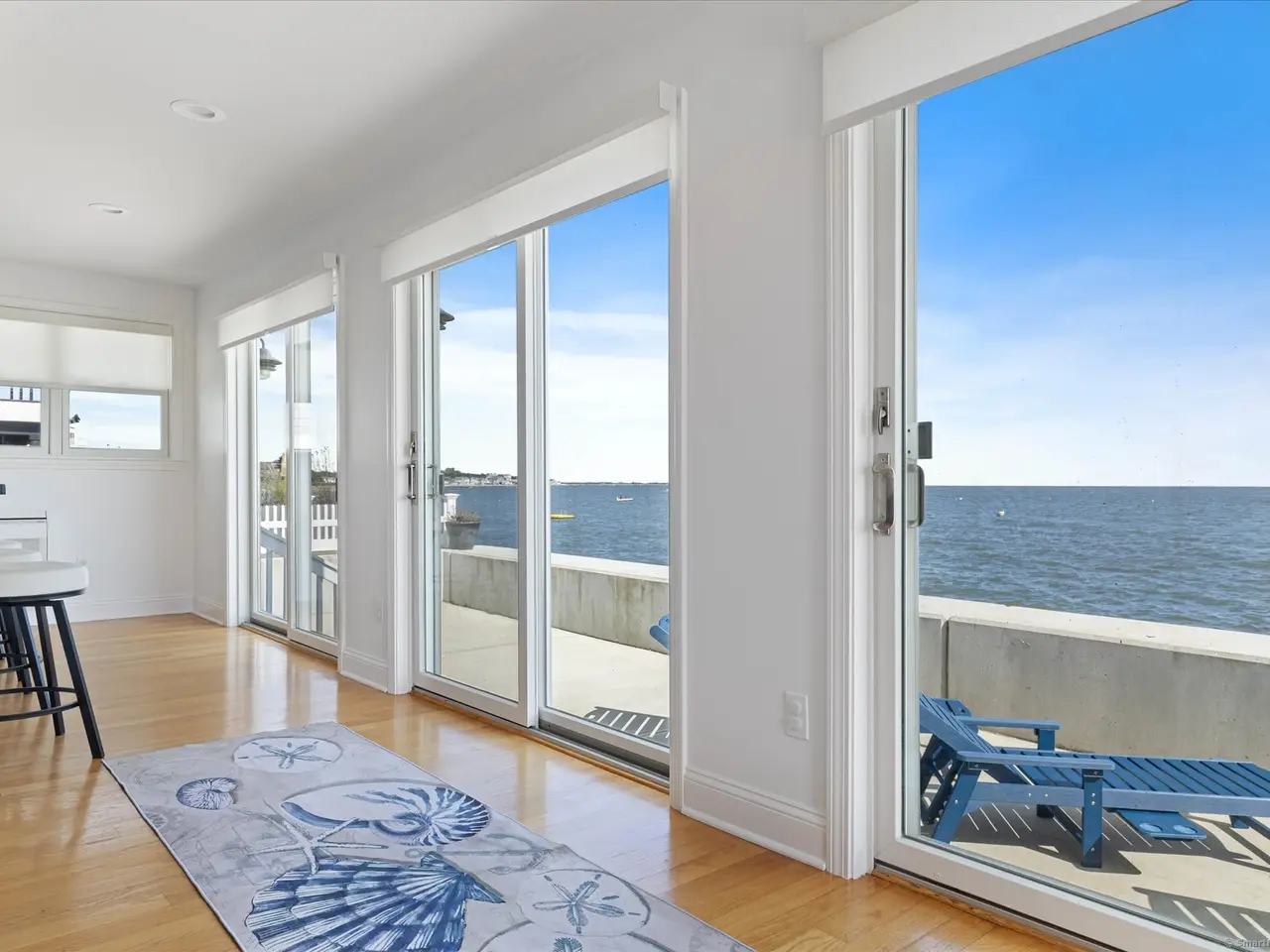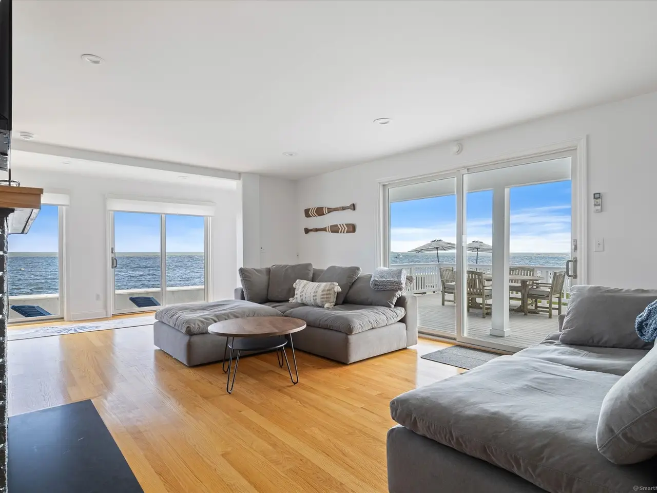Welcome to your dream coastal retreat! Perfectly sited on a double waterfront lot, this stunning year-round home offers sweeping water views, a private mooring with a trampoline, and ample outdoor living space designed for entertaining and relaxation. Enjoy patios, decks, and a lush, irrigated lawn surrounded by professionally landscaped gardens featuring salt-tolerant plantings and a new cobblestone-bordered driveway. This property has undergone countless upgrades including a new sea wall, roof, gutters, windows, bathrooms, hardwood flooring, central air, fencing, exterior/interior paint, and an outdoor hot/cold shower. A large, remote-controlled awning and ceiling fans enhance comfort throughout. Step inside to a bright open-concept floor plan with multiple seating areas and a gourmet kitchen featuring all-new stainless steel appliances - including an Advantium induction cooktop/convection oven, range hood, and a striking tiled backsplash. A welcoming new front entry and mudroom lead to a first-floor screened porch, cozy den/TV area, and a stylish new half bath. The first-floor bedroom and full bath offer flexible living options, while the second floor boasts three additional bedrooms. The primary suite is a showstopper, with vaulted ceilings, panoramic water views, and a new private laundry room. Two additional bedrooms enjoy water views and open onto a charming sleeping porch, perfect for summer nights by the sea. Additional features include a waterproofed basement by by CT Basement Systems, ideal for storage. As part of Lee Manor Beach, you'll enjoy deeded rights to a private sandy beach just steps away. Experience the best of Madison coastal living-where every day feels like a vacation.