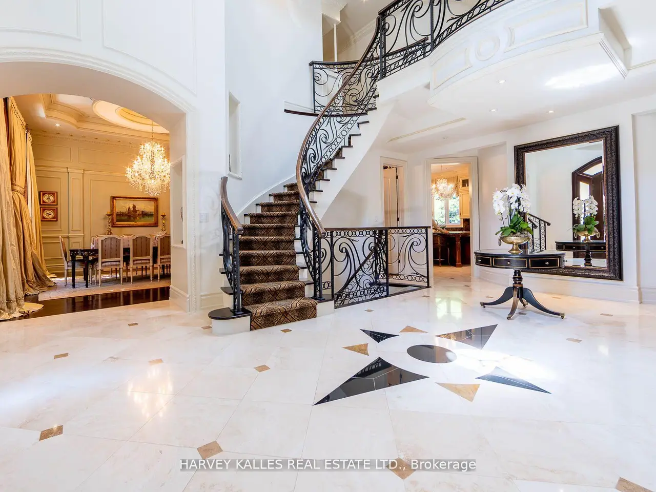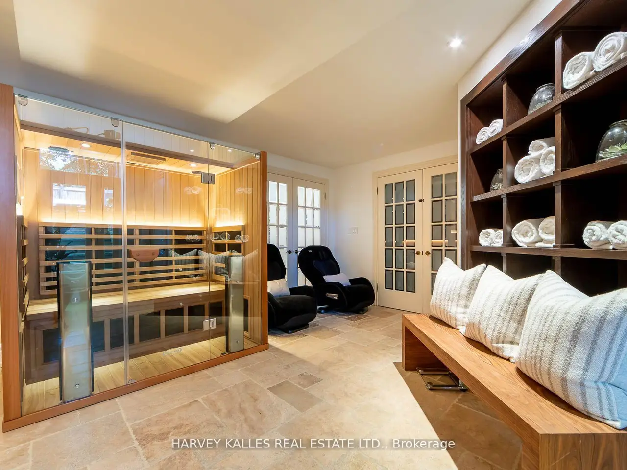 Welcome Home to 48 Wimpole Drive, a breathtaking, freshly renovated home nestled on a gated, estate-sized lot in the prestigious St. Andrews neighborhood. Surrounded by mature trees and lush landscaping, this remarkable home offers true resort-style living in the heart of the city. An Olympic-sized infinity pool, hot tub, cabana, and two outdoor fireplaces are framed by Brazilian Ipe wood decks, creating an outdoor oasis that rivals the finest retreats. Relax in the Finnish and infrared saunas or entertain effortlessly in this private paradise. Inside, the grand foyer stuns with a dramatic two-storey leaded glass skylight and twin Scarlet O'Hara staircases, setting the tone for the opulence throughout. The formal living and dining rooms feature soaring ceilings and intricate crown mouldings that elevate every gathering. At the heart of the home is a handcrafted Falcon kitchen with leather-finished granite, copper accents, built-in appliances, and a servery designed for both beauty and function. A richly paneled main-floor office offers a quiet escape with its own separate walk-out. The primary ensuite is pure indulgence: wrapped in Calacatta marble, featuring dual rain showers, and a solid wood double vanity. Additional highlights include an elevator shaft, butlers kitchenette, and exquisite custom detailing throughout.48 Wimpole is more than a home its a statement of grace, comfort, and elegant design.