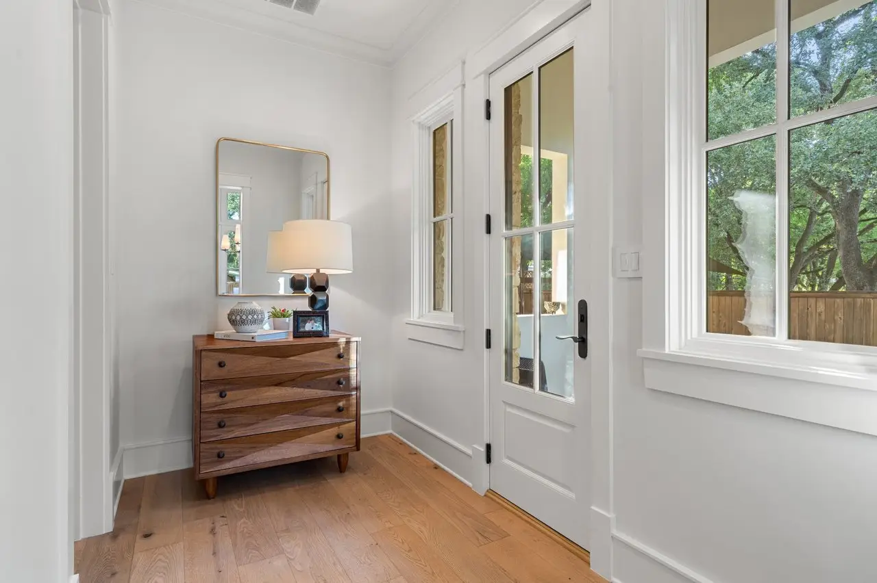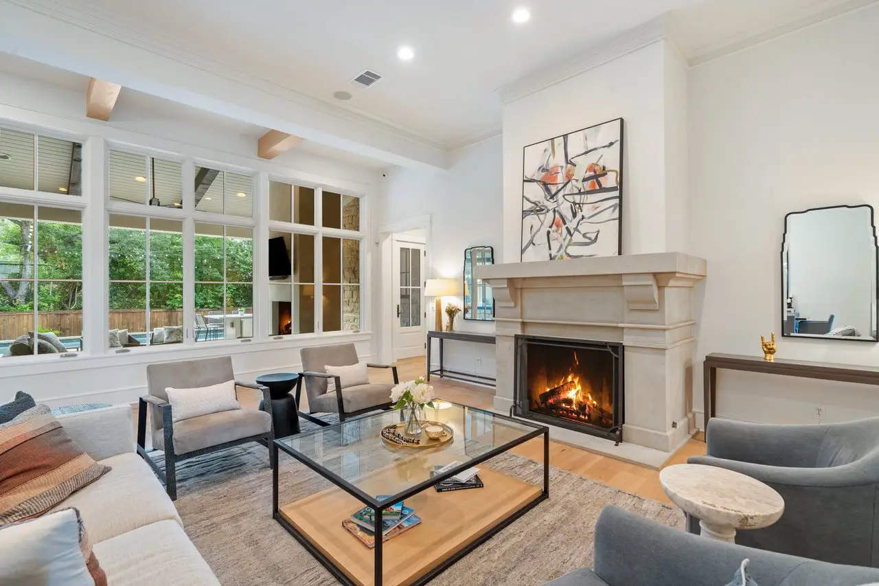 Welcome to 4907 Rollingwood Drive, a striking architectural gem nestled in the heart of one of Austin’s most prestigious neighborhoods. This sprawling 6,655-square-foot estate is a masterclass in transitional modern design—reimagined in 2021 through a collaboration with renowned LaRue Architects, interior design firm Kopfer Taylor Interiors, and luxury home builder ETF. The result is a residence that seamlessly merges timeless craftsmanship with elevated, contemporary style. Sited on an expansive .45-acre tree-lined lot, the home’s European style stone façade and graceful arches immediately command attention. Inside, the entry sets the tone with an expansive great room, abundant natural light, and an effortless flow between living spaces. Walls of glass frame the main living and dining areas, creating a constant visual connection to the outdoor covered patio, pool, and gardens beyond. The interiors exude warmth and refinement, with custom millwork, white oak flooring, designer lighting, and curated finishes at every turn The heart of the home is the open-concept kitchen—a true culinary showpiece featuring an oversized island, tailored cabinetry, premium appliances, and a walk-in pantry. Adjacent to the kitchen, a cozy breakfast nook with a fireplace invites intimate mornings, while a dramatic formal dining room with exposed beams offers a spectacular setting for hosting. Two distinct living rooms—each flooded with natural light—offer versatility for both grand entertaining and relaxed family time. The main-level primary suite is an indulgent retreat, complete with two generous walk-in closets, a spa-like bath with soaking tub and oversized shower, and direct access to a covered porch nestled beneath the trees. A private library adjoins the suite, offering the perfect space to unwind or work in peace. At the opposite wing of the home, a private guest suite with its own bath, walk-in closet, breezeway, and sun porch provides elegant accommodations for extended stays or multi-generational living. Upstairs, three additional bedrooms—each with their own en-suite bathroom—are designed with comfort and style in mind. A centrally located bonus room functions beautifully as a media lounge, game room, or gym creating a central hub for family fun and connection. An upstairs laundry room adds practicality and convenience. Outside, the property is a sanctuary designed for both relaxation and celebration. The expansive covered terrace includes a full outdoor kitchen, stone fireplace, and ample space for al fresco dining and lounging. The shimmering pool is flanked by a spa and surrounded by lush landscaping, offering total privacy and serenity. A mosquito misting system, automated landscape lighting, and whole-home generator ensure year-round comfort and peace of mind. Additional features include a circular driveway, a spacious motor court, and an oversized garage with room for up to twelve vehicles—making this an ideal setting for entertaining on any scale. The property also benefits from a shared well for irrigation and pool systems, ensuring efficiency and sustainability. Membership to the Rollingwood community pool is included, providing access to additional neighborhood amenities just moments away. With its architectural pedigree, exquisite detailing, and seamless blend of form and function, 4907 Rollingwood Drive offers a rare opportunity to own a truly exceptional home in a location that balances privacy, prestige, and proximity to Austin’s best schools, shops, and dining. This is more than a residence—it’s a lifestyle of timeless luxury.