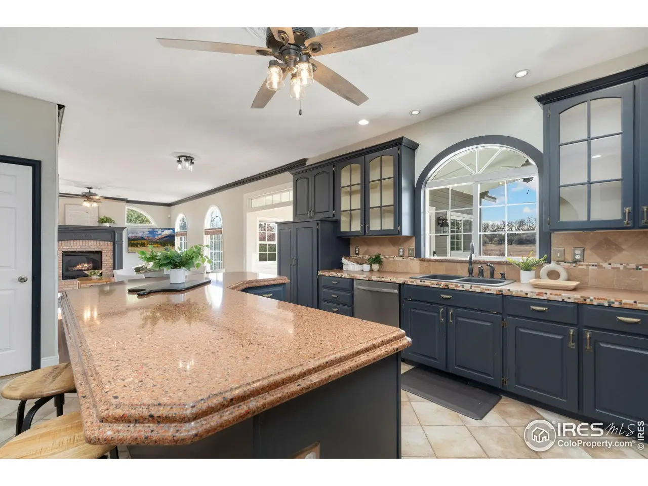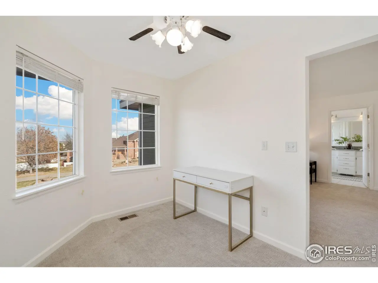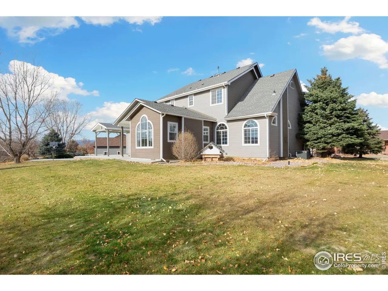 Exquisitely upgraded and impeccably maintained, this southwest Loveland home blends refined living with thoughtful design and exceptional craftsmanship. The sun-filled main level features an inviting great room with southern exposure windows and gas fireplace, a beautifully refreshed kitchen with updated finishes, 42" cabinetry, stainless-steel appliances, a large center island, and an oversized eat-in layout. A generous walk-in pantry adds exceptional convenience. A newly finished lower-level retreat offers a private sanctuary for guests, featuring a bedroom, spa-inspired bathroom with a luxurious steam shower, custom cabinetry, full-size sink, dishwasher, and refrigerator/freezer-ideal for extended stays or visiting family and friends. Upstairs, the expansive primary suite serves as a true haven, complete with a sitting room or yoga space, dual walk-in closets, and a lavish 5-piece bath enhanced with premium fixtures. Two additional bedrooms share a well-appointed bathroom, complemented by a bonus room/bedroom and dedicated laundry area. Newer carpet and fresh interior paint throughout provide a crisp, refined finish. Modern improvements elevate comfort and peace of mind, A serene sunroom overlooks the large rear yard and open space, creating the perfect setting to unwind. Outside, the almost 1-acre lot provides great space for entertaining; accented with concrete patios with covered areas and play court. The Class IV roof and newly replaced shed siding offer durability and long-term value. Outbuildings are permitted with Architectural Approval. Situated in a quiet, desirable neighborhood with easy access to parks, trails, and top Loveland amenities, this move-in-ready home delivers a rare blend of luxury, comfort, and thoughtful upgrades throughout.
