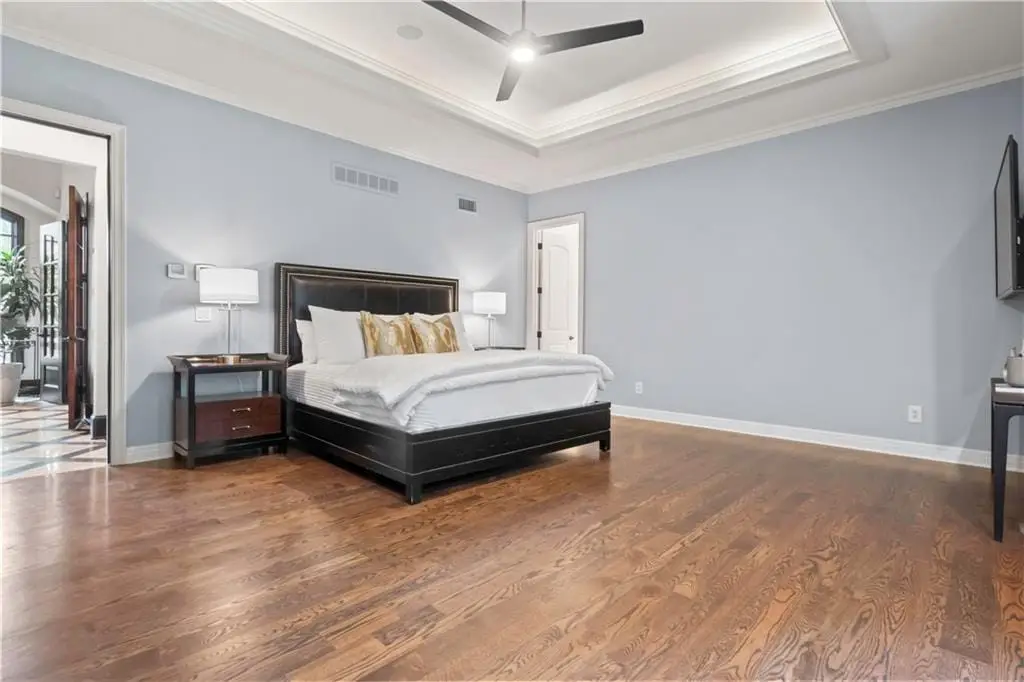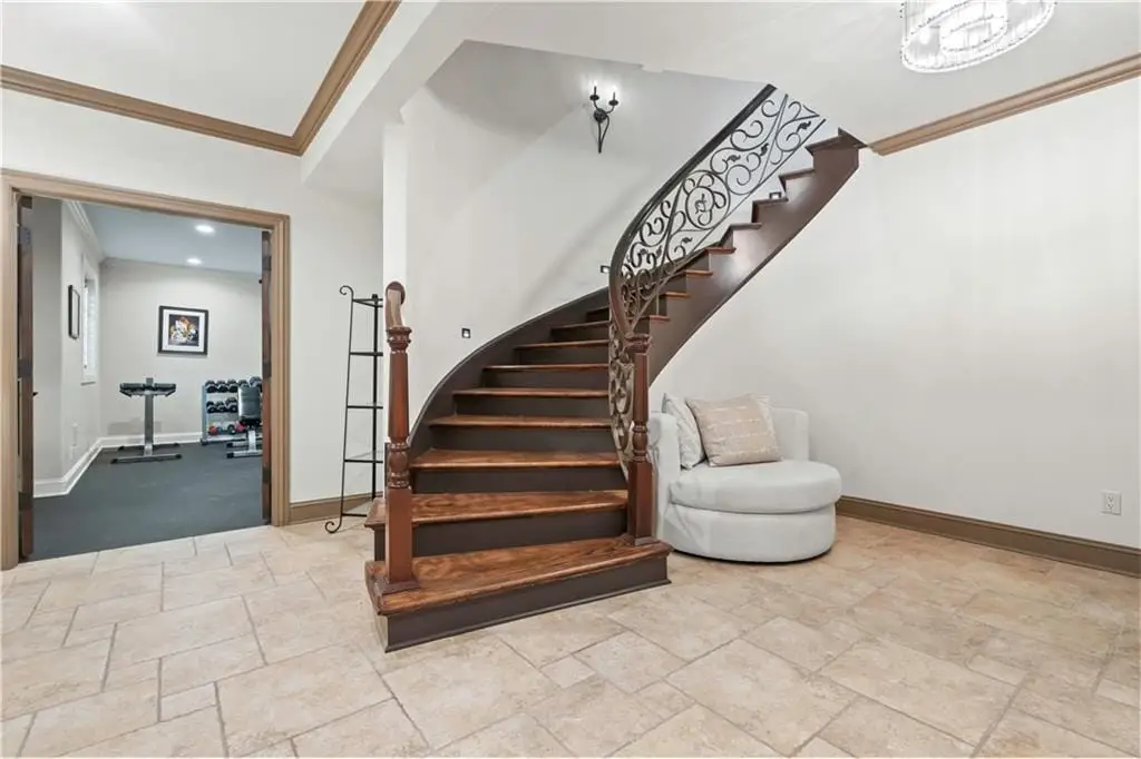 Exquisite 1.5-story home in Mission Farms that blends timeless elegance with modern updates on a beautifully landscaped lot. A dramatic staircase with custom ironwork, solid core doors, and upgraded trim showcase the craftsmanship throughout. The chef’s kitchen features quartzite countertops, custom cabinetry, and top-tier appliances, opening to a cozy hearth room. Formal dining and a spacious living room - ideal for a grand piano - flow seamlessly to a covered paver patio for effortless entertaining. The main-level primary suite is a private retreat with a spa-inspired bath and custom walk-in closet. A handsome office with fireplace completes the first floor. Upstairs offers three bedrooms with fresh paint, new carpet, and updated baths, plus a versatile loft. The lower level, finished by Rick Standard, is designed for entertaining with a full bar, media room, wine cellar, workout room, and fifth bedroom. Multiple outdoor living areas, a sport court, and large backyard provide space to relax, gather, or play. This stately estate offers luxury, comfort, and thoughtful design in one of the area’s most desirable neighborhoods.