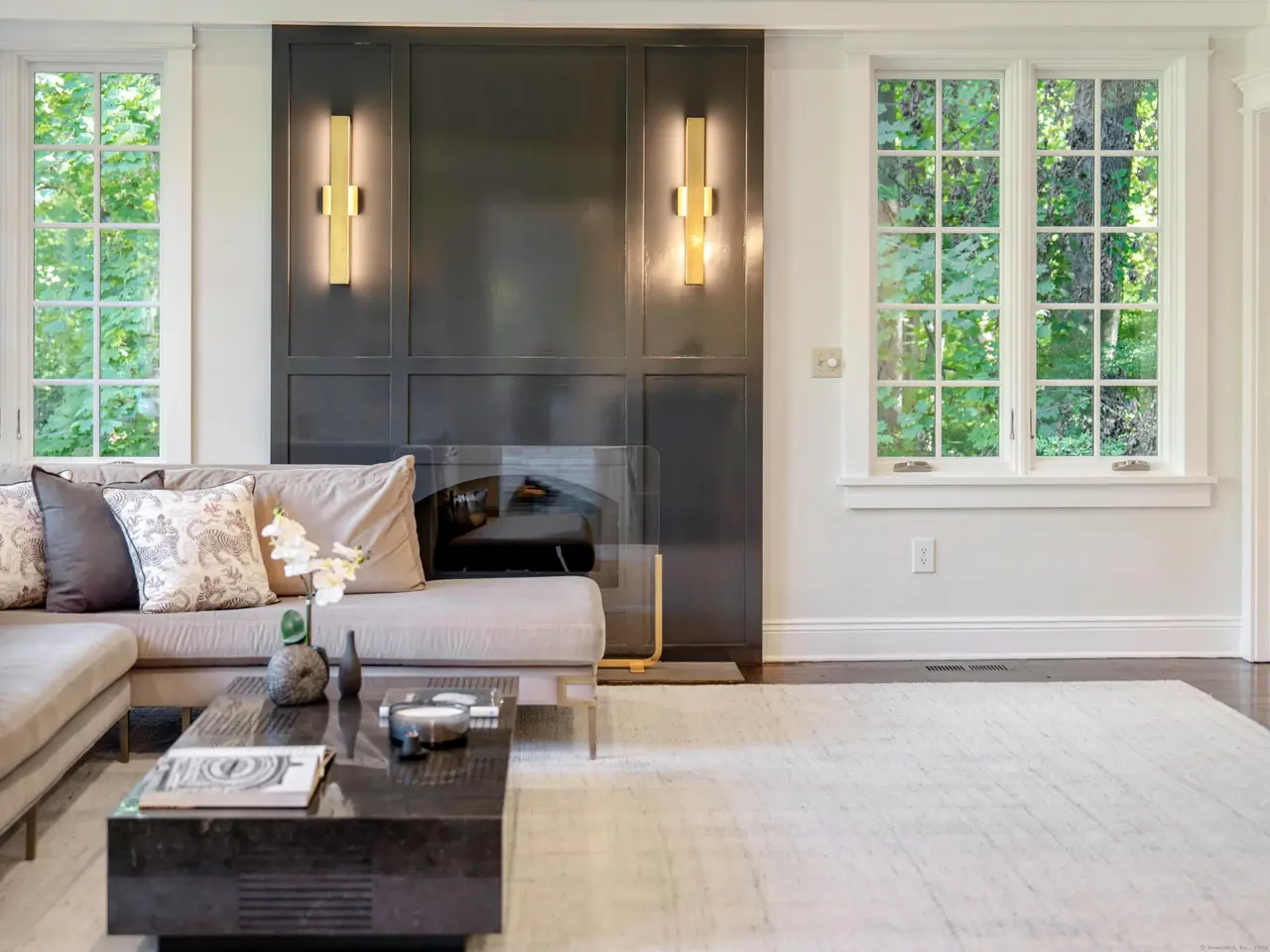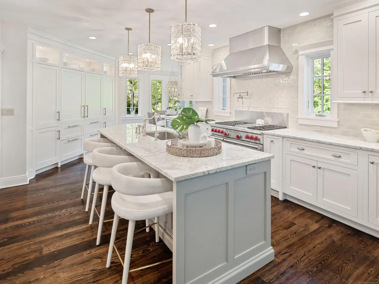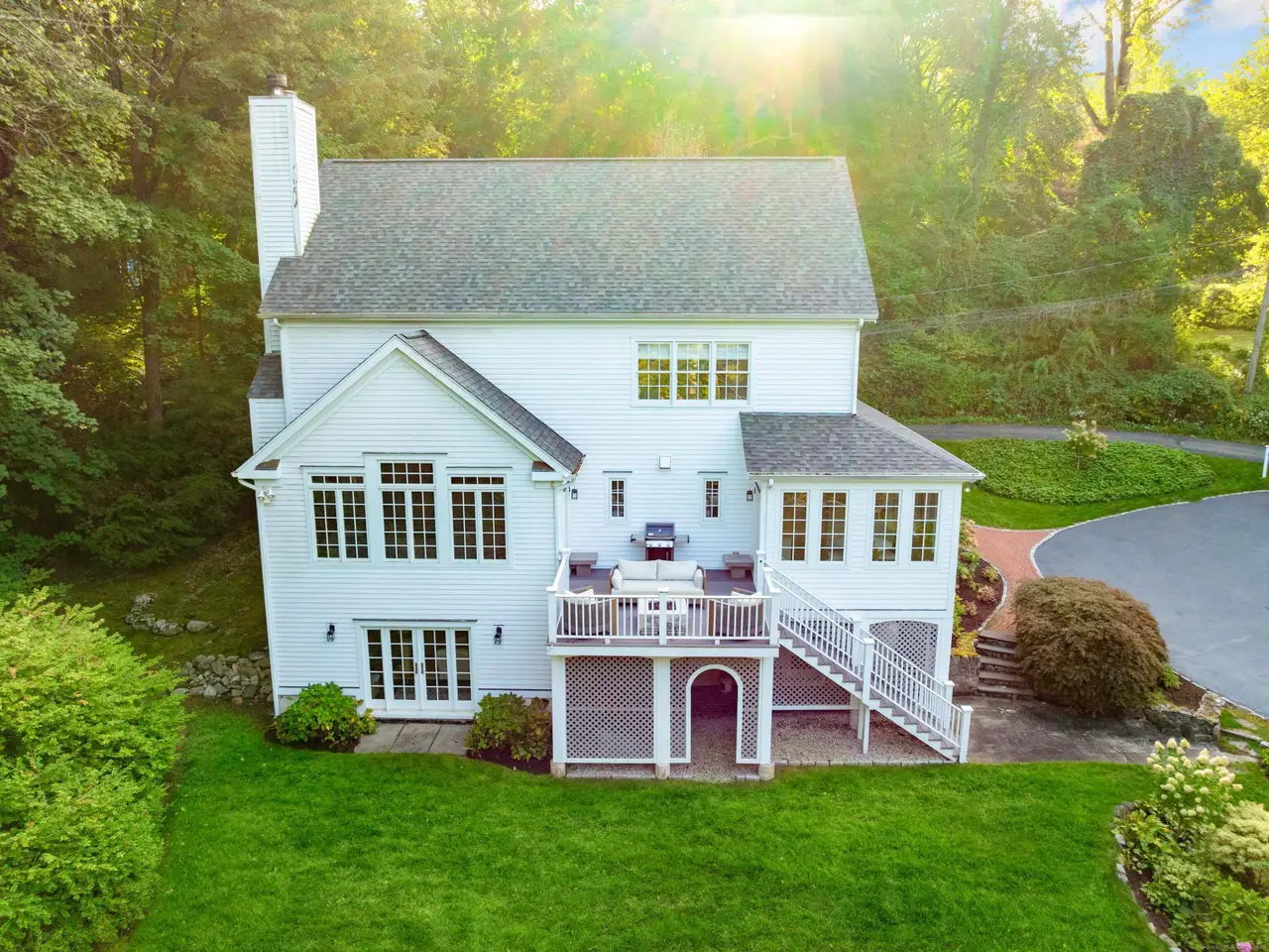 Serene and Chic! This beautiful, pristine home lives like a decorator's show house. High-end finishes and professional decorating greet you at every turn in this simply stunning retreat on 2 private acres. Gourmet Kitchen with Sub-Zero/Wolf appliances, granite counters, fully-equipped wet bar with refrigerator drawers/wine chiller and sunny Breakfast Room that overlooks the expanse of the property. Open floor plan, high ceilings and freshly redone chestnut flooring throughout. The bright Kitchen spills into a dramatic Family Room with vaulted ceilings, soaring windows, built-ins and modern decorative fireplace detail. There is a Living Room with second fireplace, sophisticated Dining Room, Office hideout and stylish Mudroom just off the front porch. The surprises continue upstairs with a spacious, soothing Primary Bedroom complete with two custom LED-lit closets and a show-stopping, spa-like Primary Bath. Two more bedrooms with a renovated Jack & Jill bathroom and 2nd floor Laundry complete this floor. Don't miss the Lower-Level walk-out Playroom/4th bedroom option, Exercise Room and full Bath for those who may need an au-pair or in-law suite with private entry. The spacious walk-up Attic could be finished. The wrap-around porch and cozy fire-pit deck overlook this large, level back yard with charming barn/shed. You'll feel like every day is a wellness vacation at home as you walk to GrayBarns or the Mercantile to celebrate your homecoming to the heart of historic Silvermine!