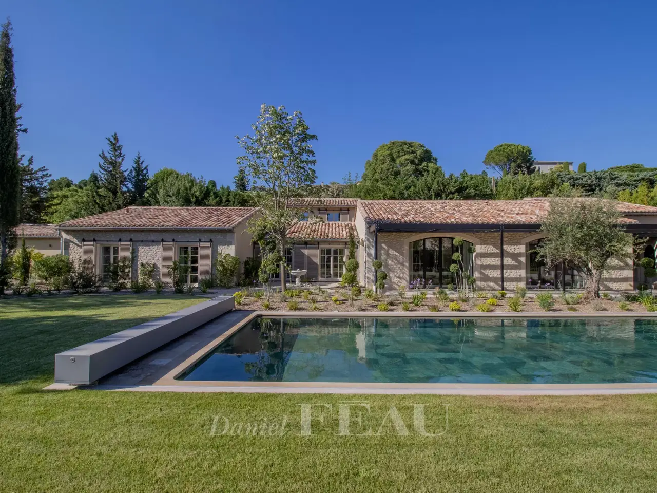 This bright south-facing 400 sqm property is in a peaceful yet not isolated setting just five minutes from the centre of Maussane-les-Alpilles. Meticulously renovated in 2023 and mainly on a single storey, it is set in 2400 sqm of grounds with a swimming pool. It includes a spacious entry with a guest cloakroom, a study, a 62 sqm living/reception room with a bar, a 50 sqm dining room/kitchen with wide patio windows opening onto terraces, and six suites (5 on the ground floor) all with shower rooms and dressing rooms. With a 3-car garage, a pool house, and a summer kitchen and lounge enjoying an open view of the Paradou hillsides. Old materials have been used during the renovation, offering a unique charm to the property. A delightful family home in a sought-after location.