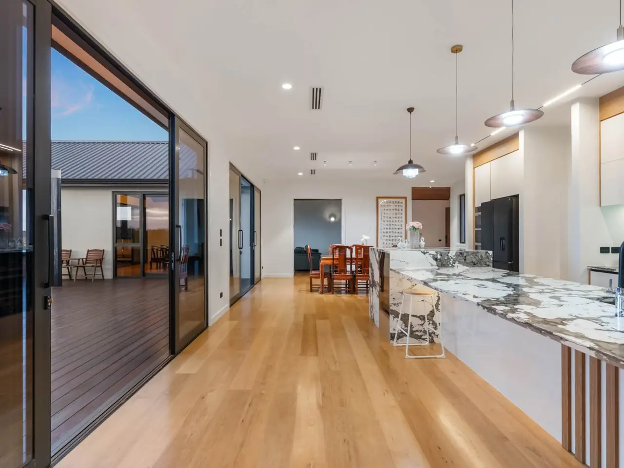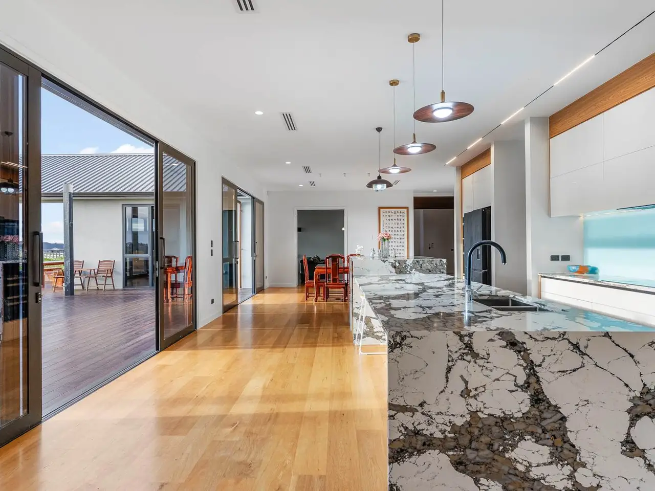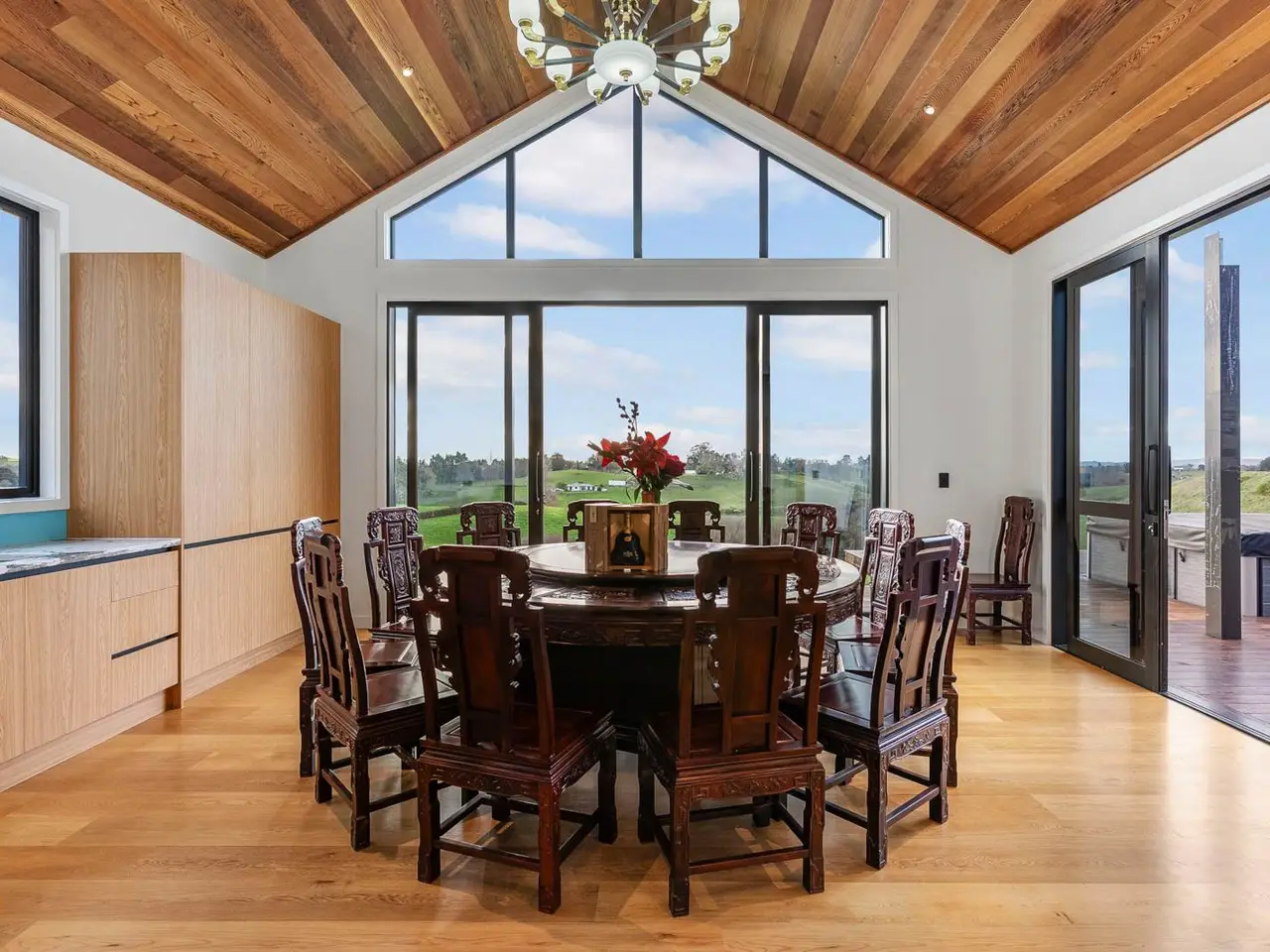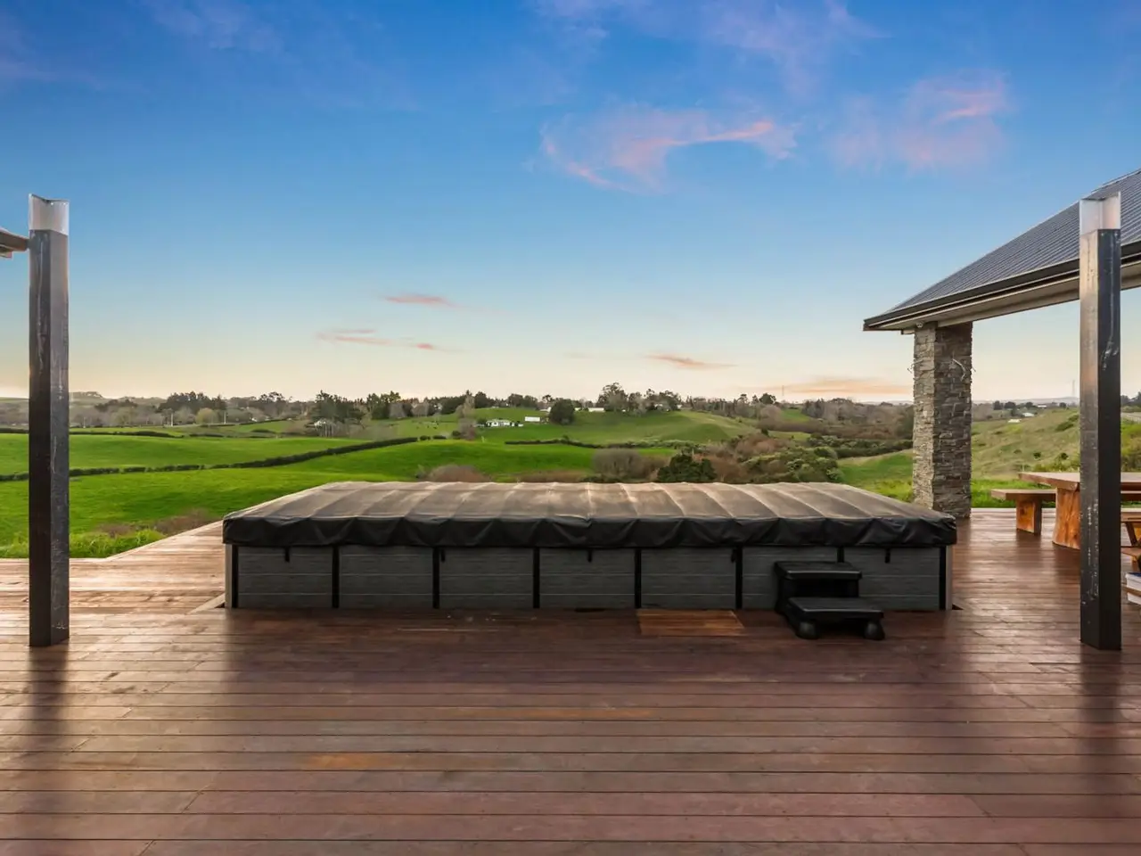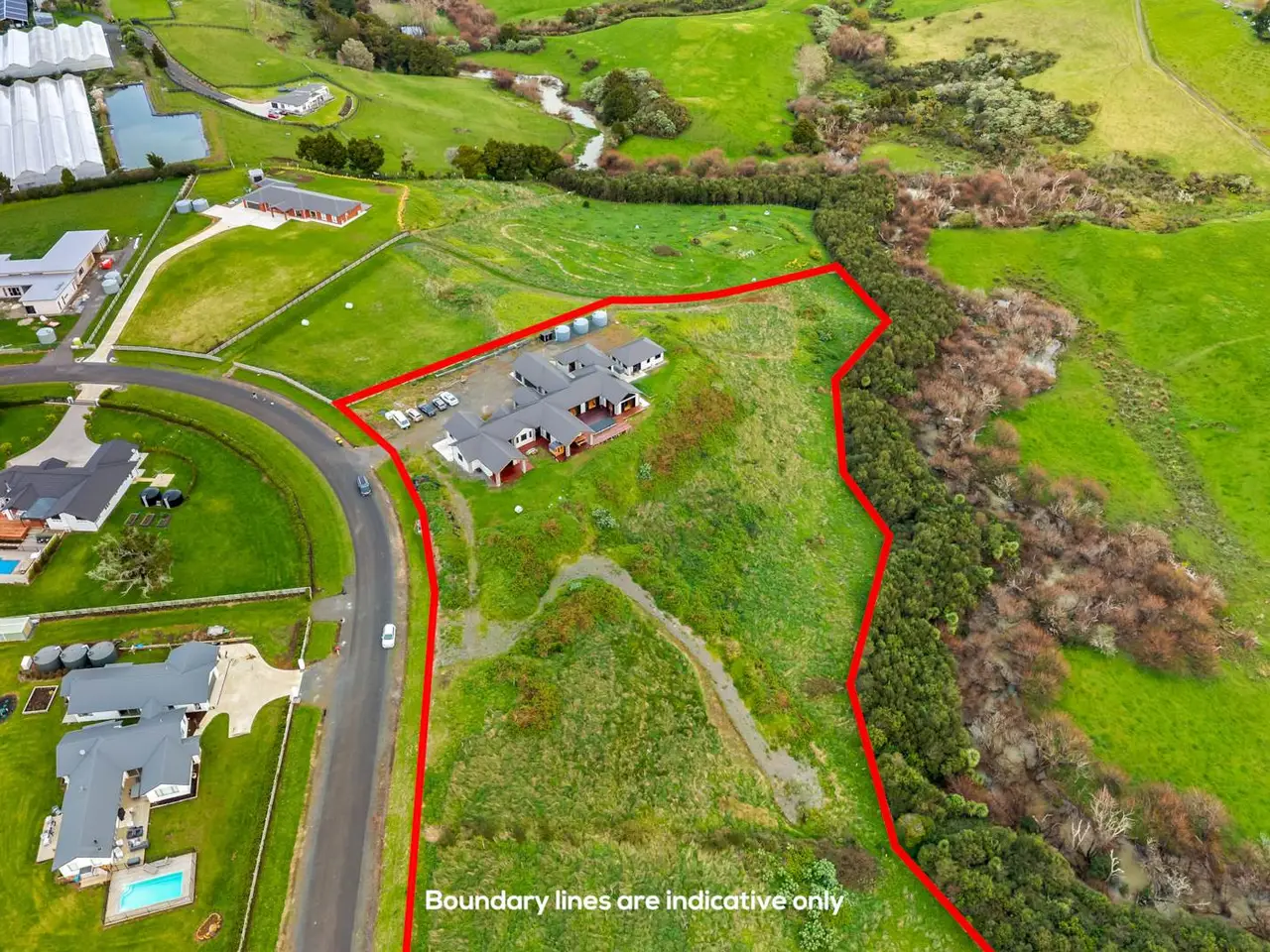 NORTHERLY DECKS - SCENIC CITY LIGHTS Completed in December 2024 (CCC issued April 2025), this elevated north facing home, built of EZ panel cladding (concrete panels) with colour steel roof and feature stone exterior accents, this superb 570 square metre home plus 64 square metre minor dwelling (635 m2 total approx) set on 3.13 hectares (7.83 acres) zoned Country Side Living boasts sweeping views over rolling countryside to the distant night lights of the city. Excellent design by LW Architecture Ltd is complemented by quality construction by Kea Building Ltd. Brand sparkling new, landscaping is yet to be done which will of course, reflect the new owners botanical preferences. Double door entry leads into a spacious foyer with a high pitched Cedar ceiling and stunning hand painted feature wall. Engineered Oak flooring, 3 metre ceilings and 2.4m high doors, cameras and alarms, wiring for wi-fi connectivity, fibre optic internet and ducted air conditioning throughout are just a few of the comfort inclusions in this ultra-spacious sophisticated residence. The foyer leads to expansive, light-filled open plan living anchored by a high-end kitchen featuring premium Miele appliances, including both steam and conventional ovens, as well as a warming drawer. It also boasts an AEG induction hob, Bosch dishwasher, granite waterfall edge island bench, and a Vintec wine fridge. The butler’s pantry is equally impressive with microwave oven, gas hob and blue glass splash-back. Abundant window walls open to covered and open Kwila decks which stretch across the full side of this home (totaling 55 square metres approx) providing scenic venues for stylish entertaining and lazy day leisure in the Alpine swim spa and the sauna. The kitchen spills into a sumptuous family room with feature stone-surround gas fireplace and adjoining formal dining. Off the casual dining double doors open into a luxurious media room with galaxy ceiling and feature lighting, built in speaker system, projector, built in bar and all media equipment – also the perfect karaoke venue. Adjoining this space is another living area with a high pitched Cedar ceiling that opens out to covered alfresco recreation. Also on this side of the home is a multi-use living room and two bedrooms with built-in wardrobes, one opens to the outdoors. You'll also find an office and a bathroom on this side. Additionally, there is a separate powder room and a well-equipped laundry. Hallway’s end gives access to a three car garage with marine carpet and extra-large insulated doors. Off the opposing side of the foyer, two bedrooms with walk-in robes and sliding doors flow out to the northern deck. These are separated by a bathroom with dual vanities. Off a small hall, the magnificent super-spacious master bedroom which opens out to a covered deck features two walk in robes, built in storage, make up station and an ensuite with double Englefield spa bath, electric mirror, double vanity and smart toilet. Yet another bedroom here, also with walk-in robe and ensuite, has an adjoining study area, making a total of six superbly appointed bedrooms in this expansive home of supreme comfort. Separate self-contained living, perfect for extended family or guests, is spacious and classy comprising open plan living, dining and kitchen, a powder room, bathroom with two vanities and two bedrooms with built-in wardrobes. Incredibly spacious, exceptionally designed, superbly appointed and scenic located, this admirable residence awaits inspection by the discerning buyer. • Elevated ultra-spacious 570 m2 (approx) main house + • 64 m2 minor dwelling (635 m2 total) north facing home on 3.13 ha. • Completed in December 2024 (CCC issued April 2025) • EZ panel cladding construction colour steel roof & stone accents • Sweeping rolling country views to the distant city night lights • Engineered Oak flooring, 3 metre ceilings & 2.4m high doors • Cameras & security alarms. Wiring for wi-fi connectivity • Fibre optic internet & ducted air conditioning throughout • Cedar pitched ceiling foyer. Luxe hand painted feature wall • Sundrenched open plan living. Window walls flowing outdoors • North facing Kwila covered & open decks (55 square metres approx) • Scenic, stylish al fresco entertaining. Alpine swim spa & sauna • Sleek dream kitchen + premium quality inclusions & appliances • Formal & casual dining. Deluxe media room & equipment • Separate lounge/dining room + window walls spilling outdoors • Lavish master suite & additions, 2 walk-in robes. Outdoor access • + 5 stylish bedrooms + walk-in or built in robes. Some + outdoor access • Sumptuous media room, feature ceiling, projector & equipment • Office or study room. Laundry plus storage & outdoor access • Multi-use living room. 2 bathrooms plus 2 ensuites. Powder room • 3 car garage with marine carpet & extra-large insulated doors • Free-standing 2 bedroom dwelling + open plan living & bathroom • 12kms to ACG Strathallan Early Learning School, Primary and College • 13kms to Pukekohe Township and just 3kms to Motorway • 32kms to Auckland Airport & 42kms to Auckland CBD