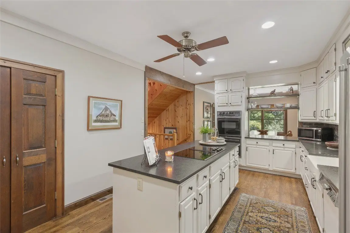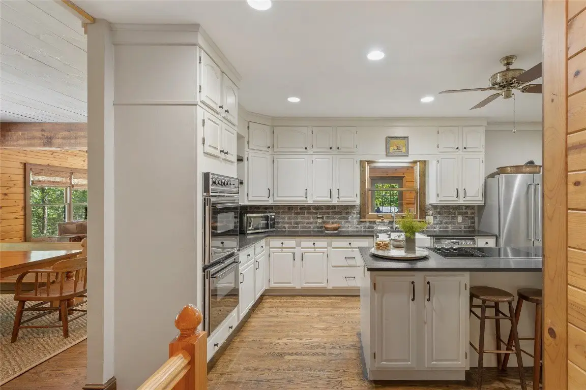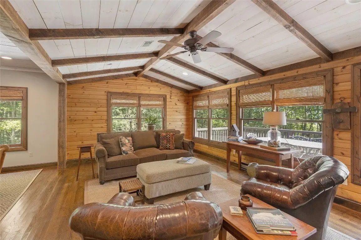 Pass through the gates and wind up to the top of Norton Overlook to discover an original homestead, set back from the road within a private sanctuary. From the front porch, the sights and sounds of nature create a serene backdrop for quiet moments to unwind. Evenings may be spent gathered around the outdoor firepit or inside beside the cozy wood-burning stove set in a stunning stone fireplace. The spacious main level is designed for both comfort and functionality, offering a spacious kitchen, den, dining room, great room, office, laundry area, and a generous primary bedroom, all thoughtfully arranged with excellent flow. Upstairs are two oversized bedrooms, while the lower level expands the living space with an additional bedroom, full bathroom, potential for a kitchenette, and two expansive bonus rooms, perfect for flexible use or recreation areas. A large detached garage with a workshop provides space for artistic pursuits, woodworking, or other hobbies, while ample storage throughout the home ensures everyday practicality. Winter reveals panoramic mountain views, with the potential for further enhancement through strategic tree trimming. Conveniently located near Cashiers, Highlands, and Lake Glenville, this residence combines privacy, comfort, and the best of mountain living. With its versatile spaces and timeless mountain character, this residence offers both a peaceful retreat and a setting for lasting memories.