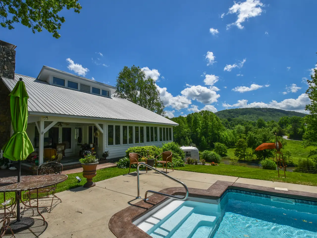 Peace and Plenty Farm... Nestled on over 27 acres of serene countryside, this expansive property offers a large, welcoming home perfect for families, events, or commercial potential. With a 2020 pool, a 2017 barn, and a 1+ acre stocked, spring-fed pond, this tranquil retreat also boasts breathtaking views of the Chattahoochee National Forest and Lynch Mountain. Enjoy the privacy of a quiet gravel road with minimal traffic, surrounded by large tracts of land, and a beautiful balance of pasture and wooded areas. The home features a full basement, two spacious living rooms, a screened porch, and an open porch ideal for outdoor relaxation. Additional amenities include a two-car garage, large masonry fireplace, wood stove, remodeled kitchen, and an updated master bath and safe room. The property is equipped with a metal roof (installed in 2018), livestock-friendly fencing, and an asphalt parking area (added in 2021). Inside, you'll find wood floors, an updated HVAC system with both gas and electric heating and cooling and thriving gardens that add to the charm. Whether you're looking for a private retreat, a family estate, or a venue for special events or rentals, this property is a true gem. Peace and Plenty Farm in the beautiful sought after Nacoochee Valley is truly a property to view. Last two pictures are of the AVION trailer.
