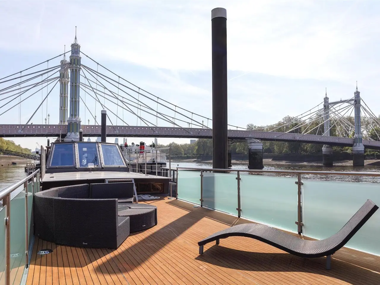 A Unique 4 bedroom, 4 bathroom 34m Riverboat moored at and offered with a 10 year licence for £2,500,000 or a 1 year licence for £1,500,000, based at Cadogan Pier, on the famous Chelsea Embankment by the stunning Albert Bridge.