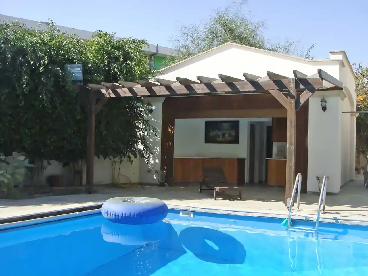 This luxurious residence is located in one of Larnaca’s most exclusive and safest areas, offering privacy, proximity to the airport, and views of a park and salt lake. The house is 1050m² across three levels and sits on a 939m² plot. The basement includes three large offices, a workshop, a bathroom, two WCs, a domestic staff room with a kitchen and shower, and a gym. The ground floor features an open-plan living room with access to the garden, pool, Jacuzzi, and pool house, as well as a kitchen, dining area, and storeroom. It also contains a private apartment with its own entrance, living room, kitchen, and large bedroom with en suite bathroom. On the first floor, there are four bedrooms. The master bedroom has a dressing room, en suite bathroom, and private terrace. Two other bedrooms also have en suite bathrooms, while the fourth shares a bathroom. An office area connects to a large veranda with park views. The home is equipped with air-conditioning and central heating throughout.