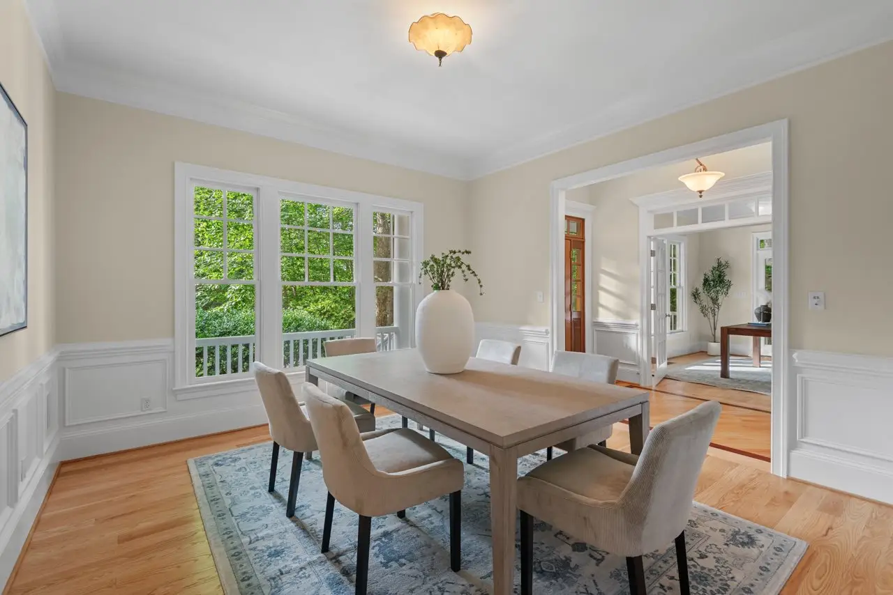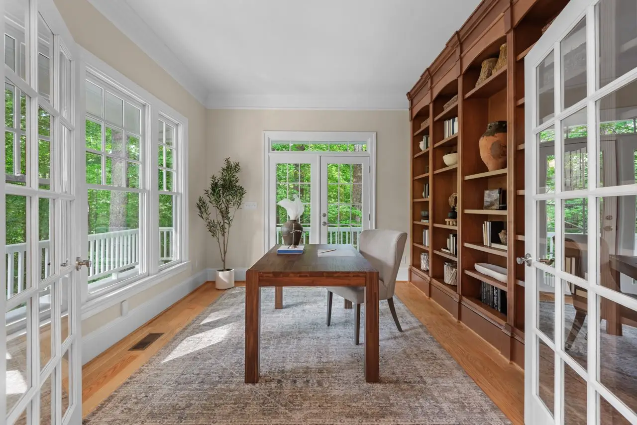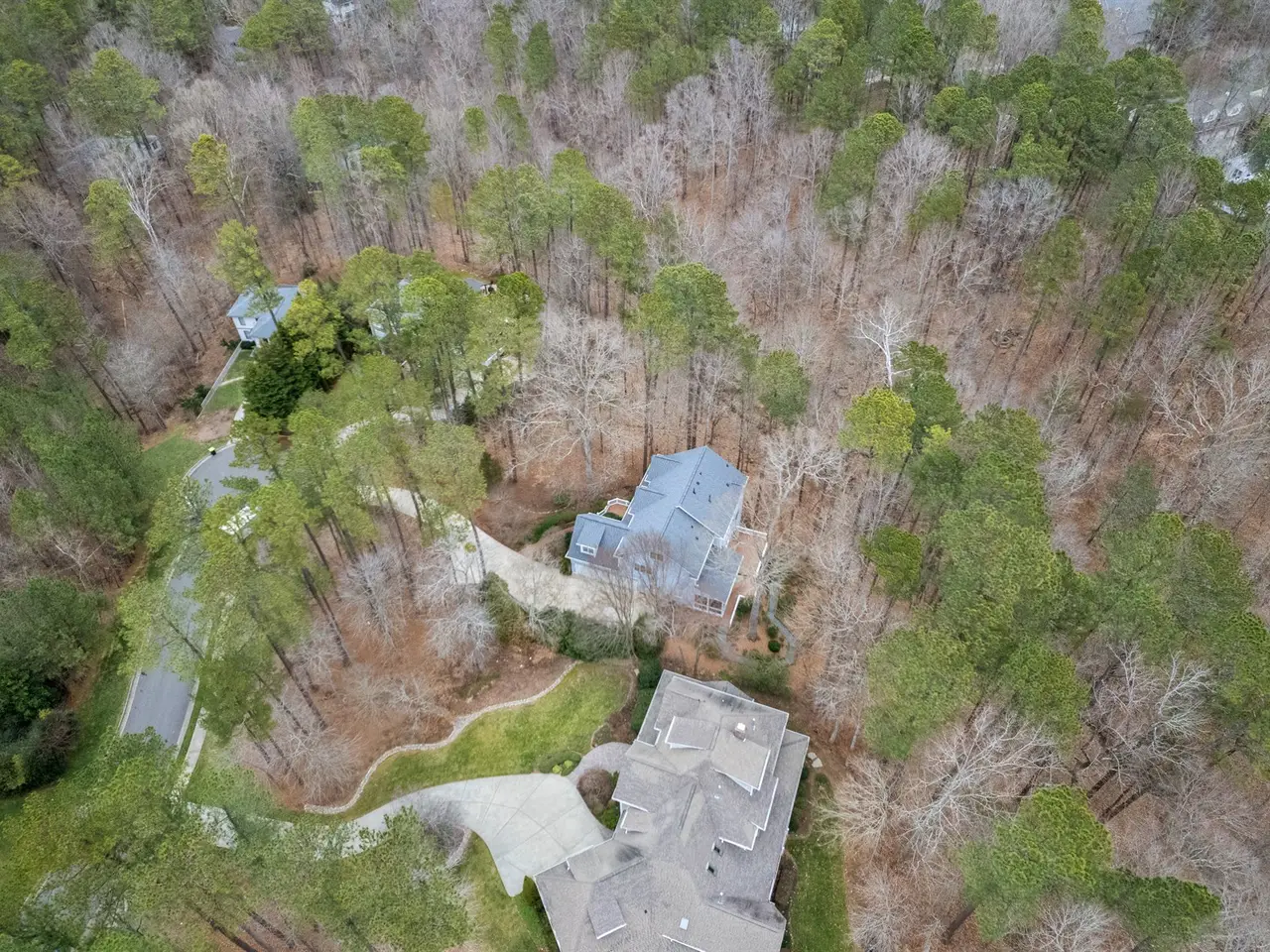 This executive home, conveniently located just outside the city limits of Chapel Hill, offers the perfect blend of luxury and tranquility with the added benefit of lower taxes. Designed for both comfort and entertainment, the spacious media room seamlessly connects to an adjacent billiard room featuring a stylish bar with a built-in wine cooler, creating the perfect setting for gatherings and relaxation. A beautifully appointed library, a gourmet kitchen with gas range, double ovens, granite countertops, a walk-in pantry, and a sunlit breakfast room add to the charm. An oversized bonus room and a private office offer additional flexibility for work and leisure. With seven generously sized bedrooms, many with ensuite baths, this home provides ample space for family and guests. The owner's retreat can accommodate a quaint sitting area and features a spa-like bath with clawfoot tub, glass shower, water closet and dream walk-in closet. Outdoor living is just as impressive, featuring a wrap-around front porch, a screened porch, and an oversized deck that offers the feel of a private, tree-top retreat. Mature trees surround the property, enhancing both privacy and serenity. A three-car garage, along with additional parking, ensures ample space for vehicles and storage. This well-maintained home has been recently updated with a new roof, new carpet, refinished hardwood floors, and fresh paint inside and out, making it truly move-in ready. Surrounded by scenic walk and bike trails, parks, restaurants, and a variety of activities, this home offers both convenience and a vibrant lifestyle all just minutes from the heart of Chapel Hill.