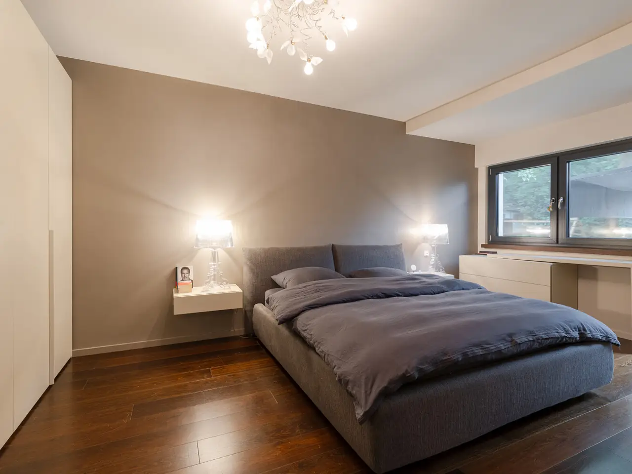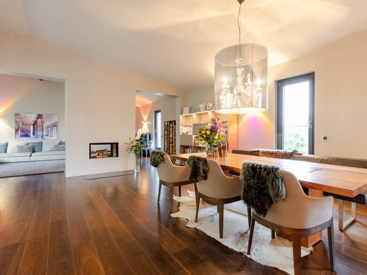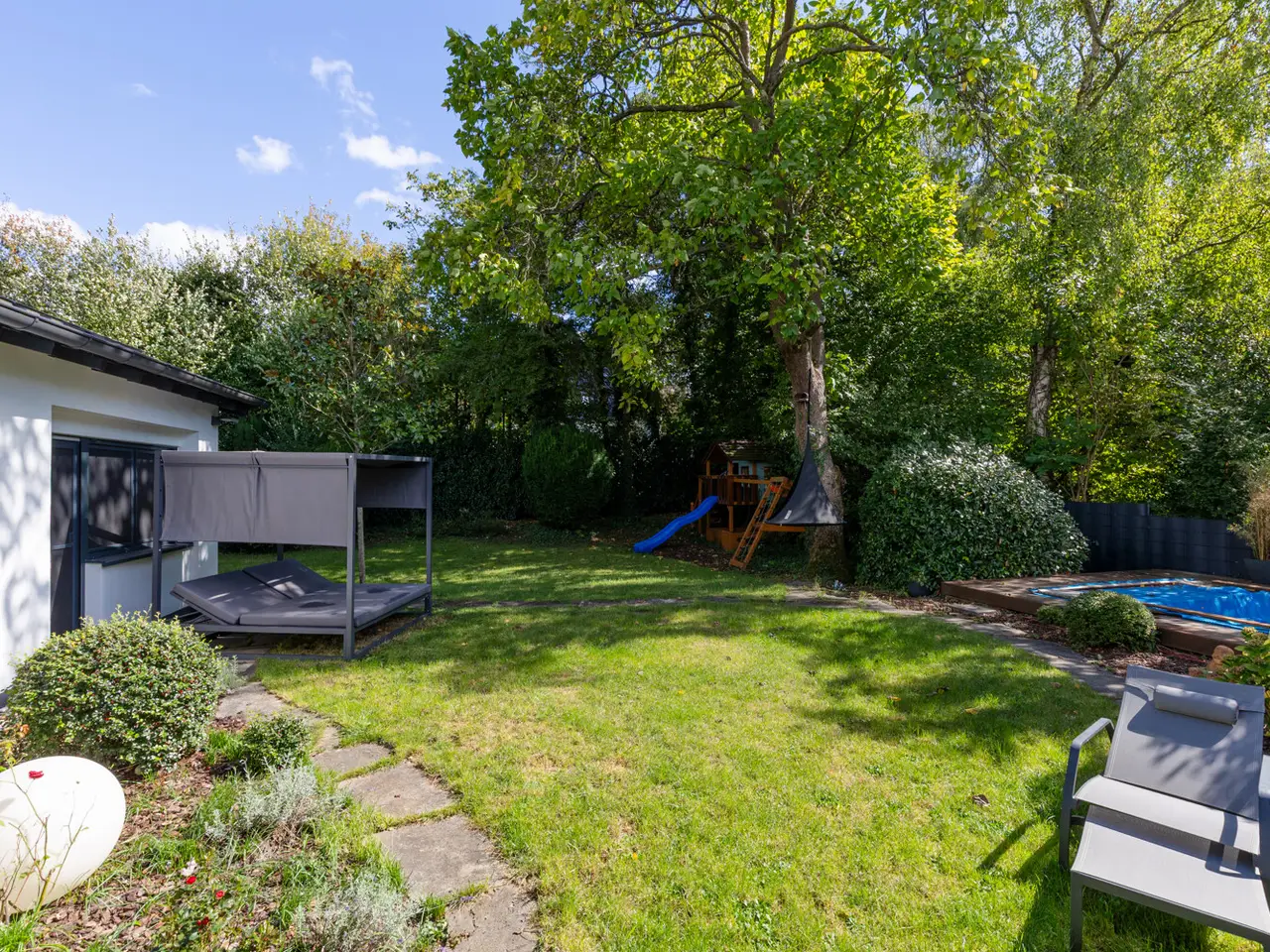 This villa combines timeless elegance with modern living comfort. On approx. 298 m² of living space and a generous plot of approx. 1,102 m², a home is being created that combines style, quality and comfort at the highest level. The modern six-bedroom villa impresses with its clearly structured floor plan. The loft-like living/dining area with open-plan kitchen and direct access to the spacious garden is a particular highlight. Five flexibly usable bedrooms and four modern bathrooms offer plenty of space for the whole family. The high-quality fittings are impressive down to the last detail: elegant, oiled floorboards, a custom-made "Leicht" fitted kitchen with Miele and Bora appliances, a stylish exposed fireplace in the living and dining area and large windows with triple glazing and electric shutters create a harmonious living ambience. The villa was extensively renovated in 2007, 2016 and 2018. The windows, roof and alarm system are state of the art. The efficient oil condensing heating system is also supplemented by solar collectors. The outdoor area is also impressive: the well-tended garden with mature trees, automatic irrigation system and several terraces invites you to linger. An outdoor pool provides refreshment in summer, while the garage and additional parking space offer practical convenience. The garden level opens up numerous possibilities for individual use and development. It currently comprises three spacious rooms, two bathrooms and several smaller ancillary rooms. The direct access to the private garden via a spacious terrace and to the pool and main garden area of the villa is particularly attractive. This floor can also be flexibly designed - for example as an independent garden apartment, a modern home office or an exclusive area for sport and wellness (see floor plan variant 2). Another advantage is the separate entrance with its own house number, which is ideal for guests or house staff. All in all, this is a stylish home for discerning people who value spaciousness, quality and an exclusive living environment - ready to move into.