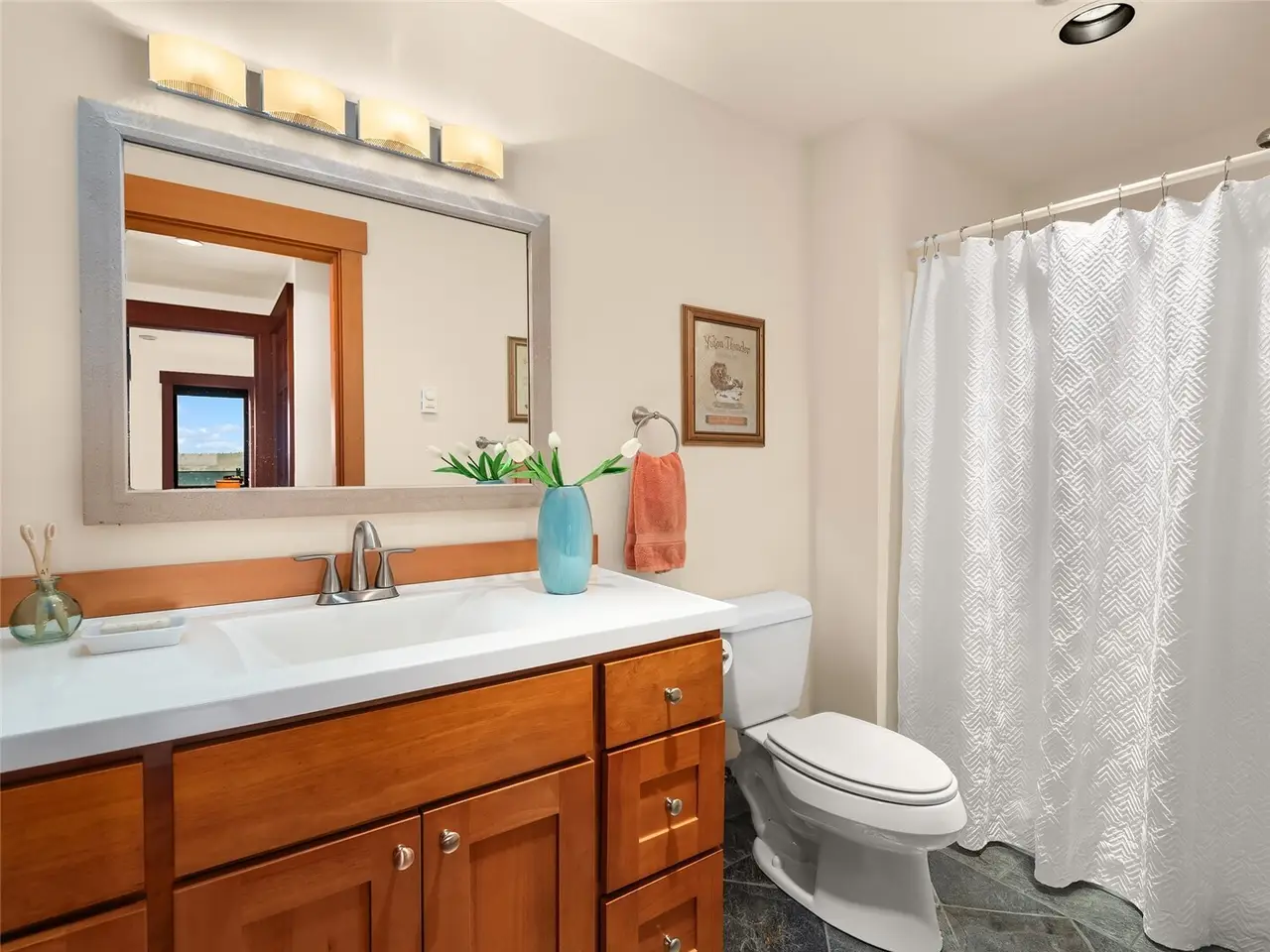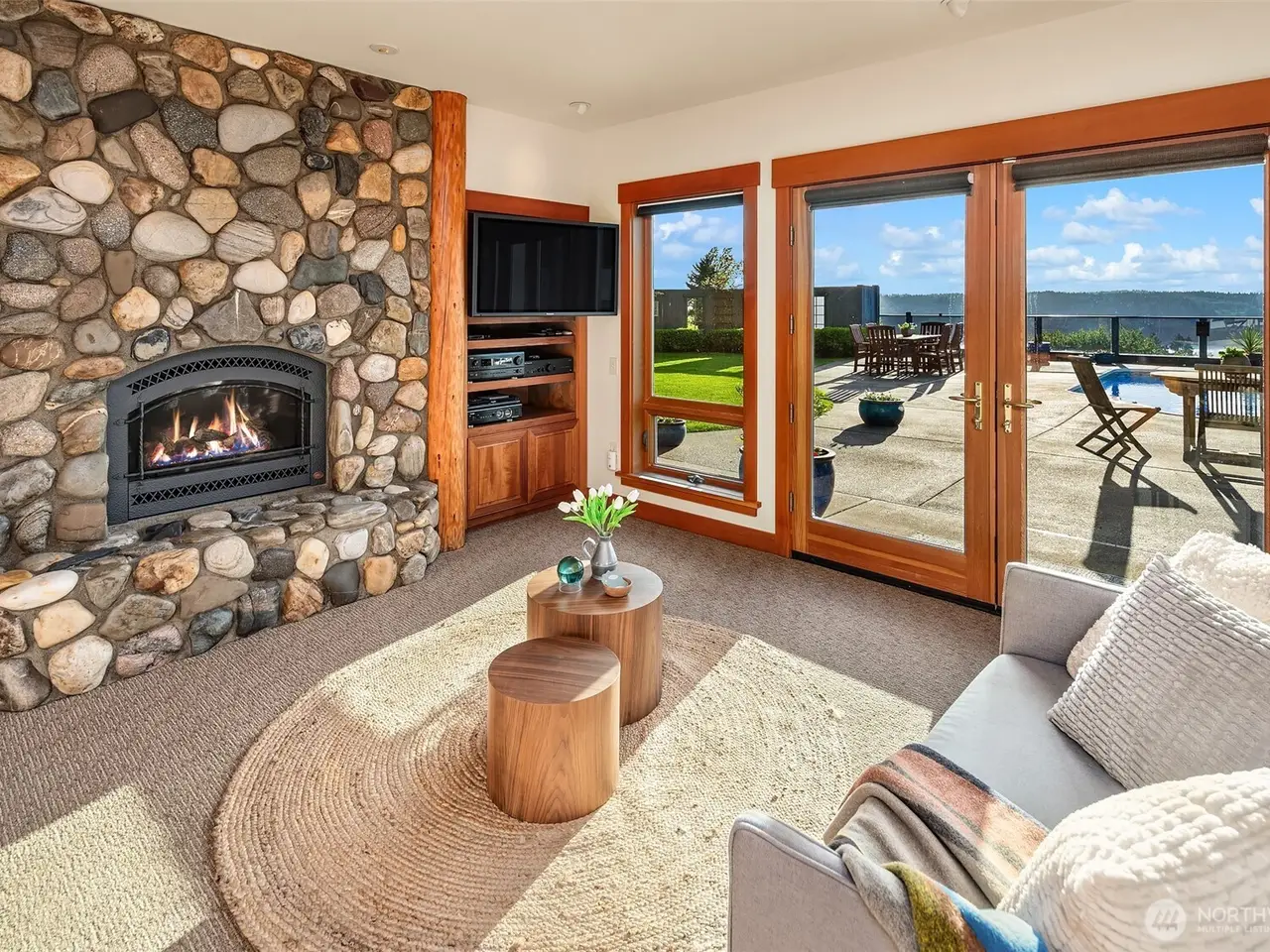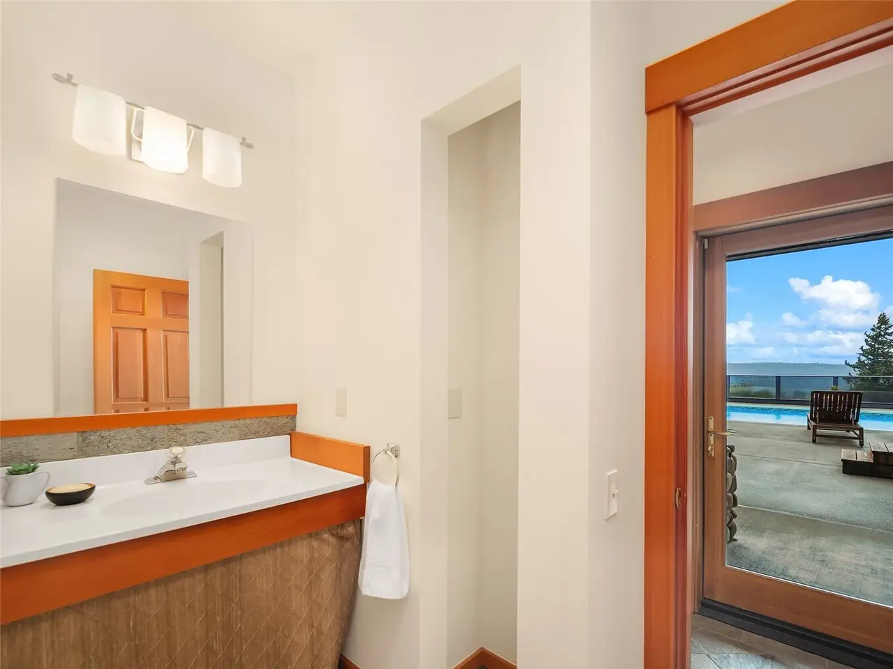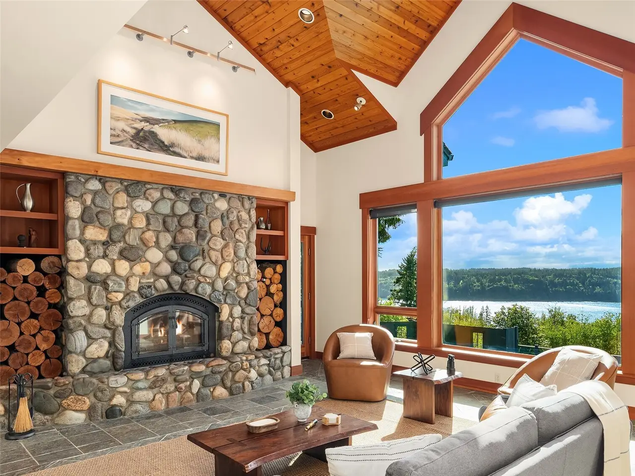 Experience the best of Pacific Northwest living in this stunning 4,000 + sq ft Mountain & Sound view retreat on nearly 5 private acres. This 3 bedroom, 5 bath custom home offers expansive living spaces, soaring ceilings, and breathtaking views from nearly every room. Clear Fir trim & custom cabinetry, stone fireplaces, lower level game/rec room with wet bar & wine cellar. Primary suite has its own access stair & balcony. Enjoy summer entertaining with a large in-ground pool and spacious patio. Two detached dwelling units provide flexible options for guests or rental income. Huge shop offers space for hobbies, storage, or business use. A rare opportunity to own a private oasis just minutes from town, with room to live, work, and play.