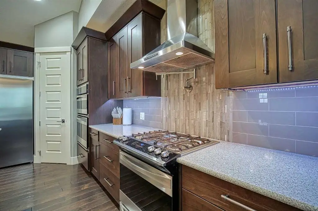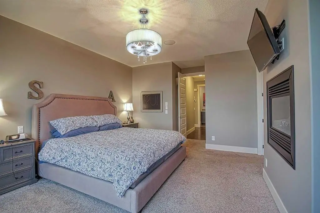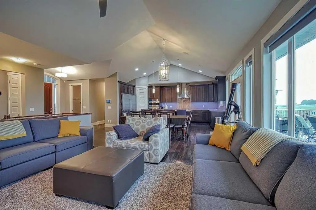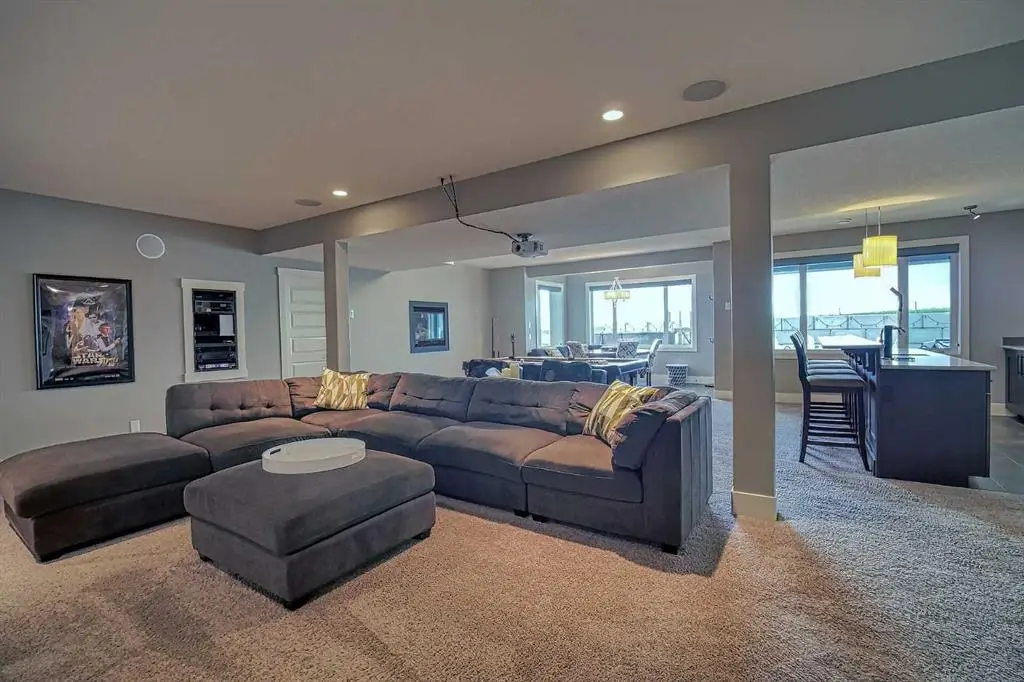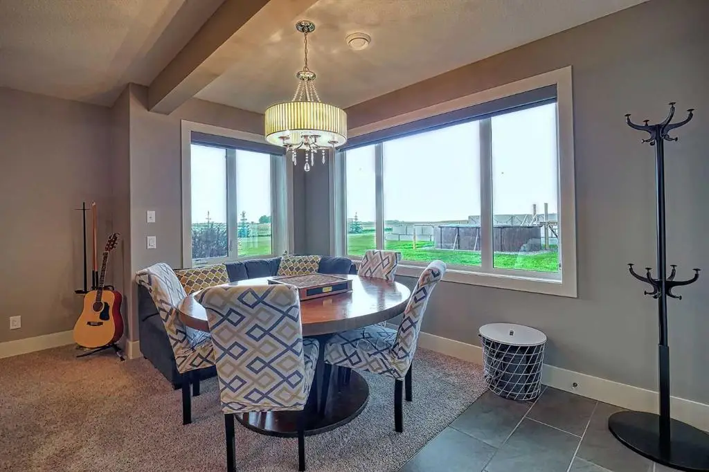 This stunning home was dreamed up and designed with no expense spared. From the moment you enter through the automated gates and follow the paved driveway, the quality is undeniable. Hardy Board siding, a triple garage, Gemstone lighting, and a warm, inviting front porch set the tone. Step into the spacious foyer, complete with its own walk-in closet, and prepare for a WOW moment as the home opens up with light, expansive windows, and breathtaking views. The kitchen, breakfast bar, dining area, and living room share an open-concept design, so no matter where you are, you’re part of the conversation. A floor-to-ceiling brick fireplace with built-ins on both sides anchors the living room beneath soaring 10’ ceilings. The dining area easily accommodates a large table, while the breakfast bar and all countertops gleam with high-quality quartz. The built-in fridge and freezer combo is a generous in size, complemented by two ovens including a built-in microwave, a gourmet gas range with another oven, and a convenient pasta faucet. Hand-scraped hardwood floors add sophistication while maintaining a cozy, farm-inspired feel.This thoughtfully designed kitchen offers expansive quartz counters, abundant cabinetry, and a hidden gem — a walk-through butler’s pantry, providing even more space for your culinary essentials. Double doors open to a spacious deck, perfect for lively gatherings or quiet evenings soaking in the peaceful farm views. In the primary suite, expansive windows frame the rolling landscape, making the view a part of the room itself. A gas fireplace flickers warmly on cooler nights, while a French door leads you directly to the patio for a breath of fresh country air. The luxurious 5-piece ensuite offers a spa-like retreat — a deep soaker tub set beside the fireplace invites indulgent baths, while double sinks, a generous walk-in shower with built-in seating, and a private water closet provide both comfort and function. The grand walk-in closet offers ample space to keep everything perfectly organized. The Main floor features a second bedroom that provides guests or family with their own retreat, complete with a walk-in closet and an elegant 4-piece ensuite. The hall area includes a 2-piece bath, organized laundry room, and mudroom. Downstairs, a media room with a 135” screen and 4K projector is perfect for movie nights. There’s also space for a pool table (negotiable), poker table area and a full wet bar with quartz counters, sink, dishwasher, beer keg with tap, wine storage, and a commercial beverage fridge. This level has two bedrooms with walk-in closets, a 4-piece bath, and a walkout to a covered patio with hot tub, heated above-ground pool, and fire pit. A massive retaining wall ensures privacy, and a shed provides garden storage. There are underground sprinklers. Included are 22 built-in speakers with Control 4 automation, five TVs with mounts, projector and screen & cameras. Come experience Executive Country Living.