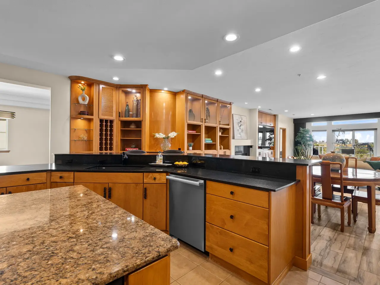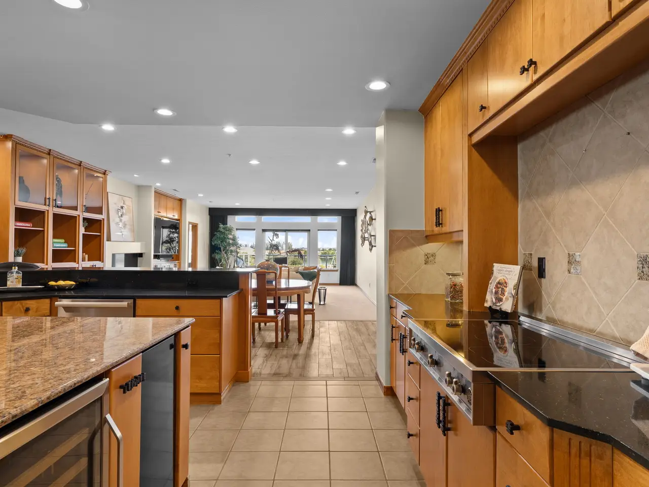 Welcome to The Moorings at Columbia Point - Tri-Cities premier destination with million-dollar views! This exclusive, single-level end unit condo offers unmatched marina and riverfront views, upscale finishes, and a lifestyle that blends comfort with class. Step inside and feel the elegance immediately. A welcoming entry features coffered ceilings with cove lighting, setting the tone for the thoughtful design throughout this spacious 3-bedroom plus flex room home. The gourmet kitchen is a true showstopper, featuring quartz counters, full-height tile backsplash, under-cabinet lighting, and a premium appliance package including a Filli Bertazzoni Italia induction cooktop, GE Cafe double wall ovens, wine fridge, and compactor. The oversized walk-in pantry includes a fridge/freezer combo. Designed for effortless entertaining, the kitchen opens to a casual dining area, a formal dining room, and an expansive great room with a tile surround gas fireplace and custom built-ins. Sliding glass doors lead to a private waterfront balcony with automatic blinds, offering panoramic views of the Columbia River. The owner’s retreat offers private balcony access and a spa-style bathroom featuring a soaking tub, full-tile walk-in shower with bench, bidet, oversized vanity with granite counters, and a custom walk-in closet. The two secondary bedrooms also feature large custom walk-in closets, while the family room offers versatility and could be a dedicated home office, study, or guest room. A huge 12x11 storage room is tucked off the oversized laundry room (washer and dryer included), and the home is complete with a central vacuum system and an attached two-car garage below with additional storage. Additional highlights include- direct elevator access directly to the condo, golf course next door, and close proximity to shopping, parks, and freeway access. You'll also enjoy access to the 9.5-mile paved riverfront trail just below. This low-maintenance, lock-and-leave lifestyle is everything you've been waiting for. Experience luxury waterfront living, where every detail has been carefully curated, and million-dollar views greet you daily. Plus, you're just a short walk to Tri-Cities top restaurants including Anthony's, Budd's, and Perch Restaurant. Don't miss your chance to own a slice of waterfront paradise - schedule your private tour today!