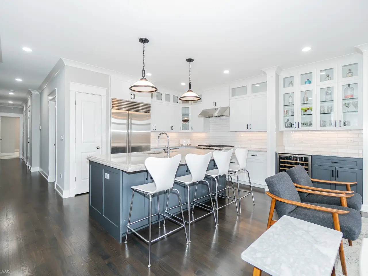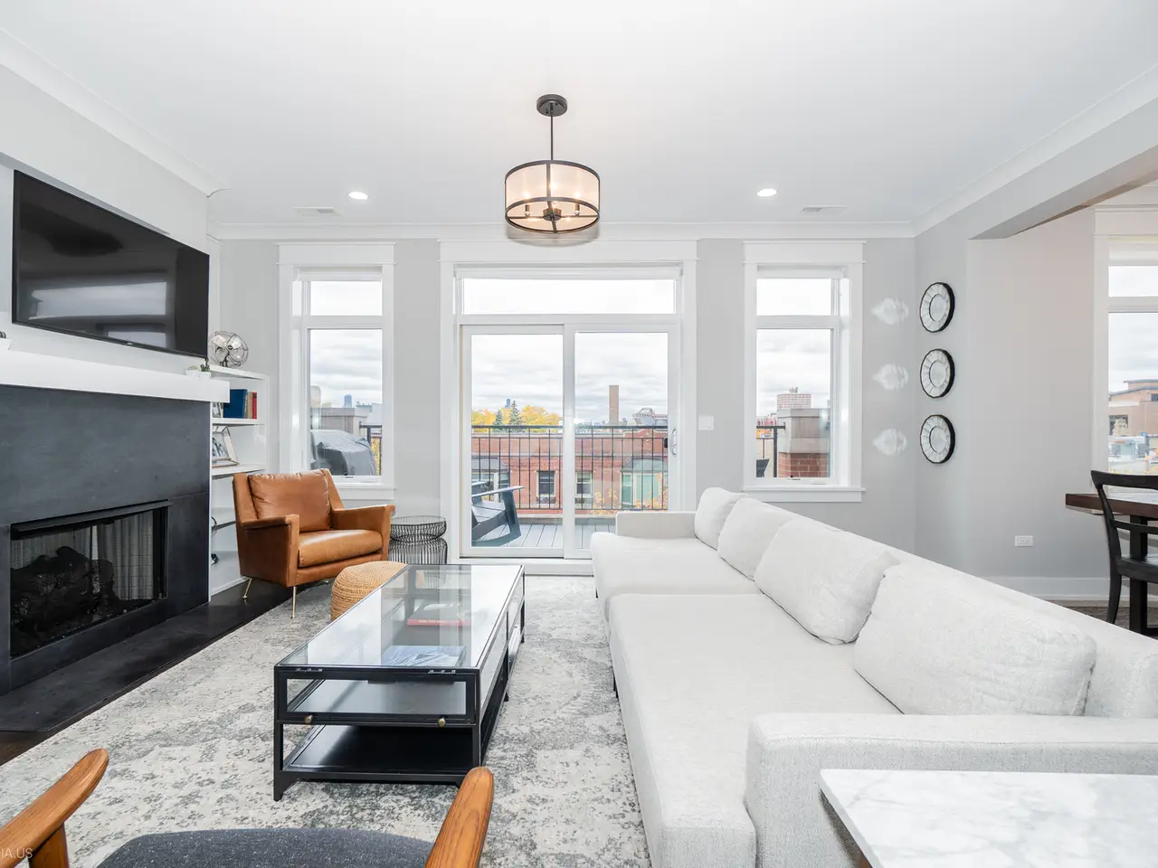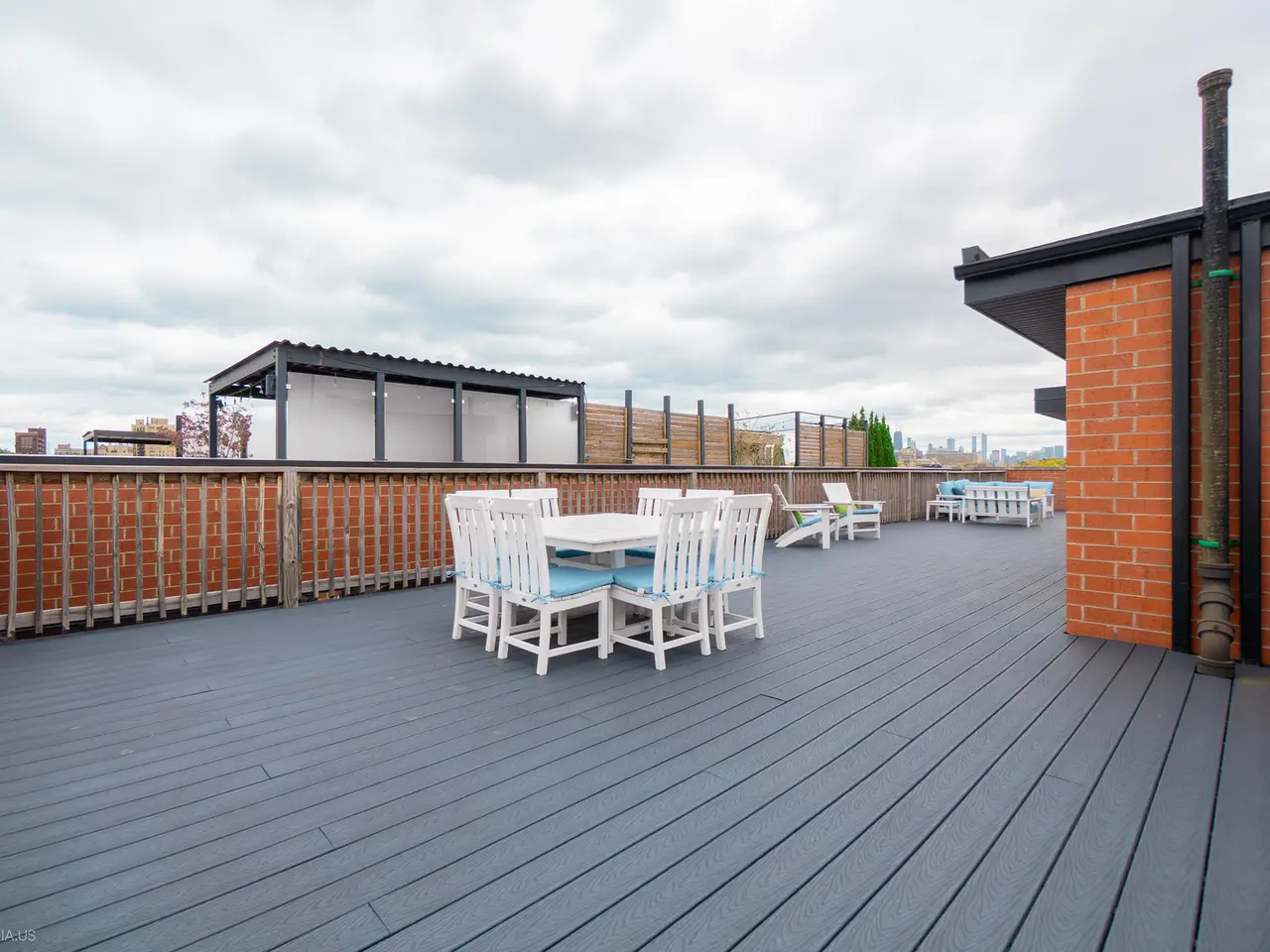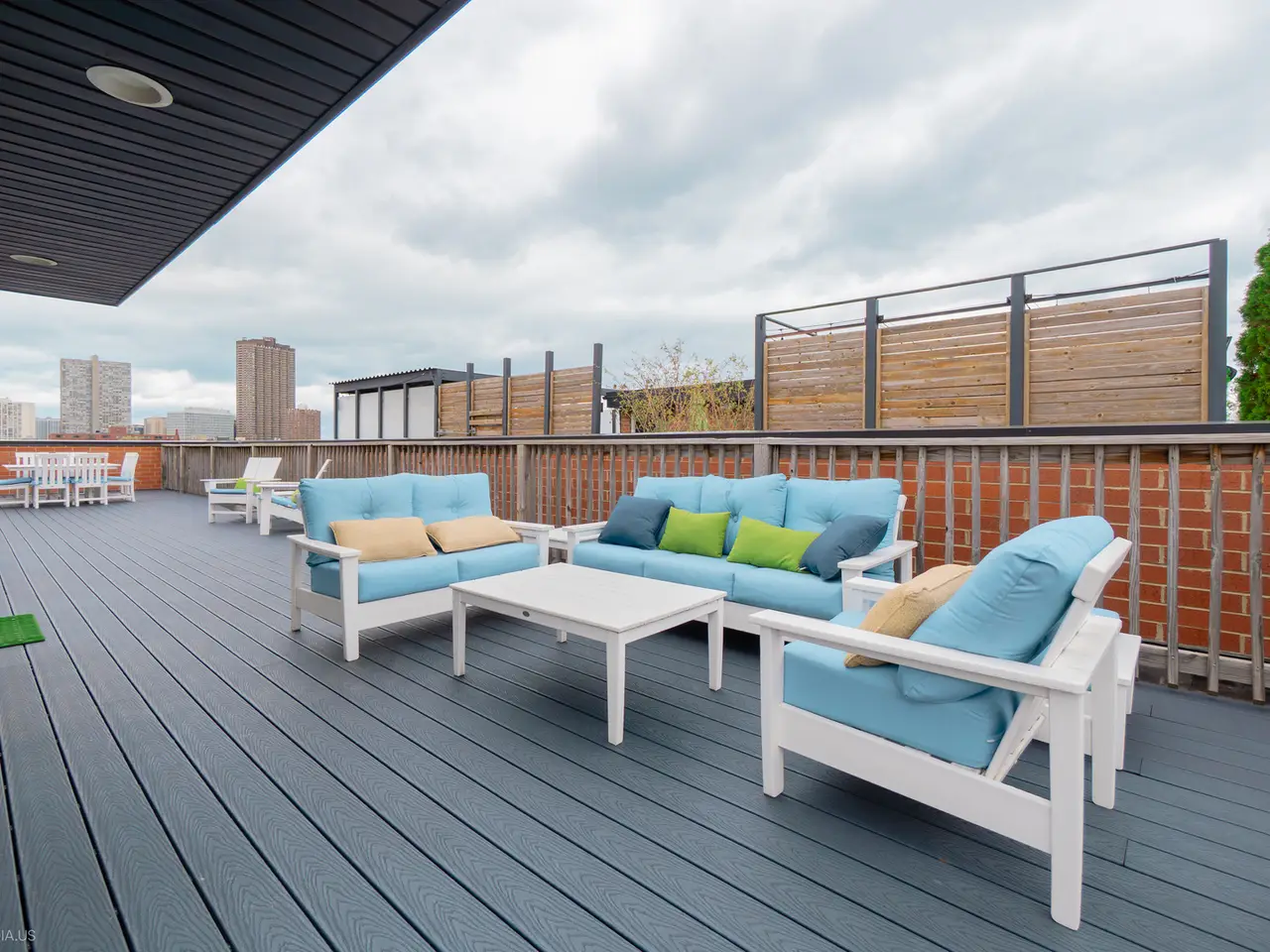 Oversized brick construction penthouse in the Nettlehorst school district. This spacious unit has wonderful light, bright floor plan with high quality finishes. Custom trim and molding, high end appliances (wolf, sub-zero, bosch, kohler), custom cabinets and custom coutertops. The bathrooms have Anne Sacks tilework and the large closets in the bedrooms are outfitted with custom shelving. Steam shower in the primary bedroom which also offers stone tops and heated floors. This Unit has 18 X 6 deck with south sunlight and a private roof top deck that is 69 X 28 with 360 degree views of the city.