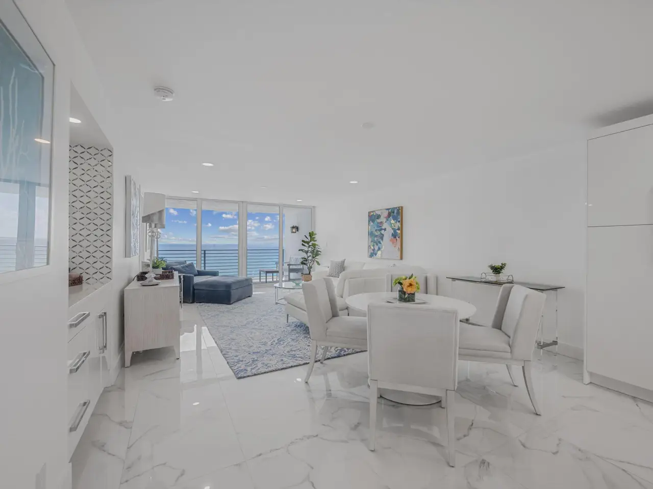 This beautifully renovated oceanfront condo at The Surf offers sweeping, unobstructed views of the Atlantic and an easy, turnkey lifestyle in the heart of Juno Beach. Offered with the option to be fully furnished, this unit has been thoughtfully redesigned with a clean, modern coastal feel. The open kitchen features sleek quartz countertops, European-style cabinetry, and a stylish backsplash that flows into the spacious living and dining areas--framed by floor-to-ceiling impact windows showcasing the ocean. Porcelain tile floors run throughout, and the primary suite offers its own incredible views along with a spa-like bathroom and custom walk-in closet. SEE MORE...