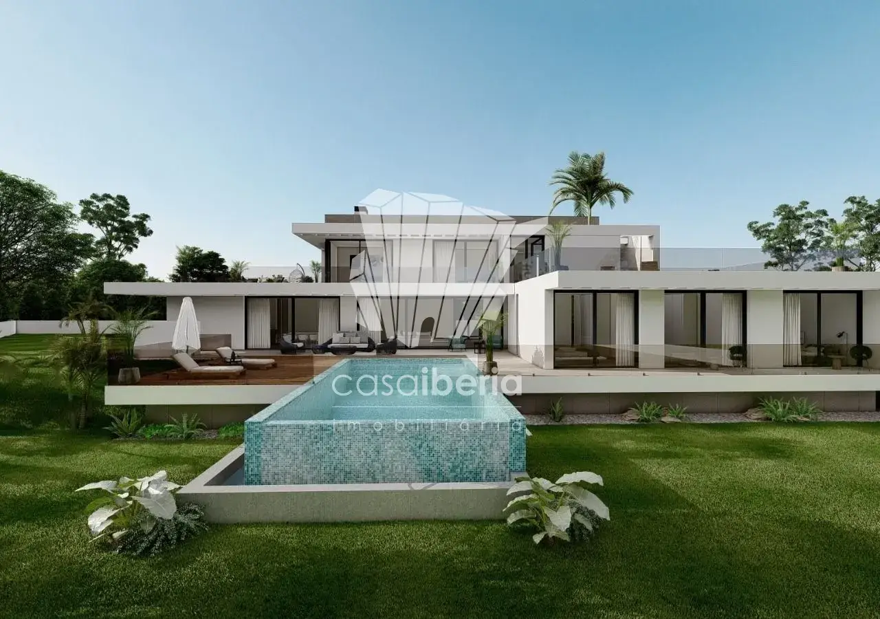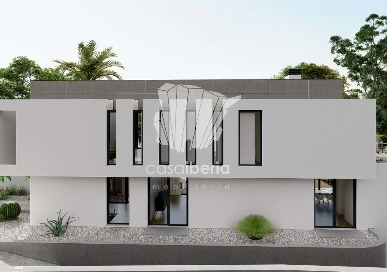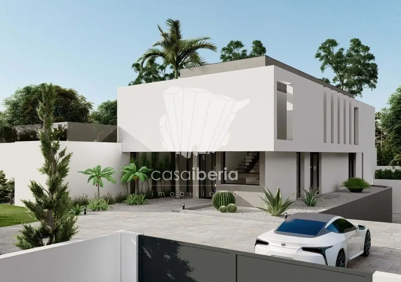 A wonderful, contemporary-style, 3 storey villa composed of a basement, a ground floor and a first floor, finished with high quality materials.On the ground floor there is an open plan kitchen/dining area and a living room with a fireplace. All have access to the outdoor terraces, swimming pool and garden. There are also three en suite bedrooms, a pantry and a service bathroom (WC). On the first floor you’ll find two bedrooms, both with en suite bathrooms and garden views, as well as access to the terrace.In the basement there is a large garage with space for several cars, a technical area and other spaces that could be used as a game room, cinema room, or wine cellar, etc.Outside there is a large garden with a swimming pool and barbecue area.This villa is in an excellent location, just a few minutes walk from Centianes beach and Vale de Milho Golf. There are plenty of restaurants and cafes in close proximity to the property, and the Nobel International School is around a 10 minute drive. What are you waiting for? Book your visit and don´t miss out on this fantastic opportunity. Plot size 2710 square meters Construction area 300 m2 plus basement Energy certificate A Construction year 2022 Features: - Double glazing - Pré. Instalation Air Conditioning - Blackhousts - Underfloor heating - Garage