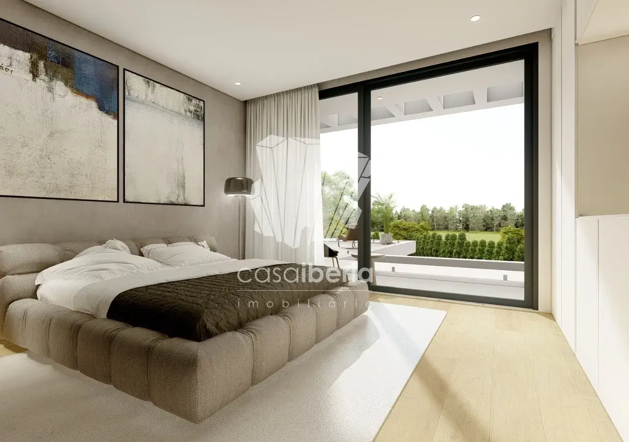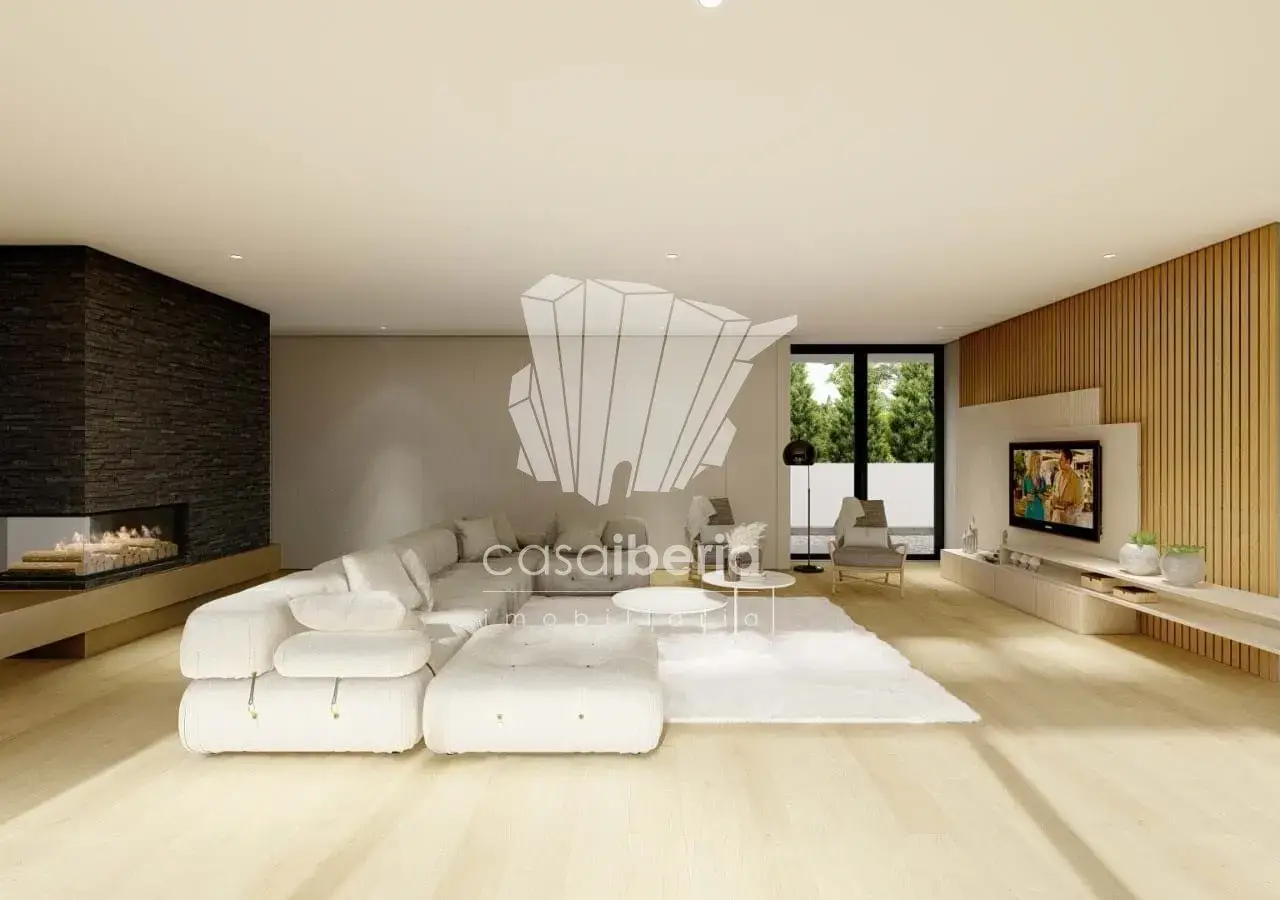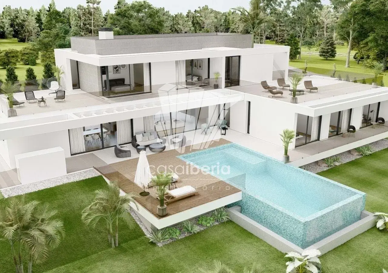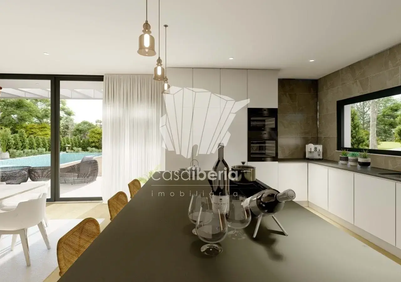 A wonderful, contemporary-style, 3 storey villa composed of a basement, a ground floor and a first floor, finished with high quality materials.On the ground floor there is an open plan kitchen/dining area and a living room with a fireplace. All have access to the outdoor terraces, swimming pool and garden. There are also three en suite bedrooms, a pantry and a service bathroom (WC). On the first floor you’ll find two bedrooms, both with en suite bathrooms and garden views, as well as access to the terrace.In the basement there is a large garage with space for several cars, a technical area and other spaces that could be used as a game room, cinema room, or wine cellar, etc.Outside there is a large garden with a swimming pool and barbecue area.This villa is in an excellent location, just a few minutes walk from Centianes beach and Vale de Milho Golf. There are plenty of restaurants and cafes in close proximity to the property, and the Nobel International School is around a 10 minute drive. What are you waiting for? Book your visit and don´t miss out on this fantastic opportunity. Plot size 2710 square meters Construction area 300 m2 plus basement Energy certificate A Construction year 2022 Features: - Double glazing - Pré. Instalation Air Conditioning - Blackhousts - Underfloor heating - Garage
