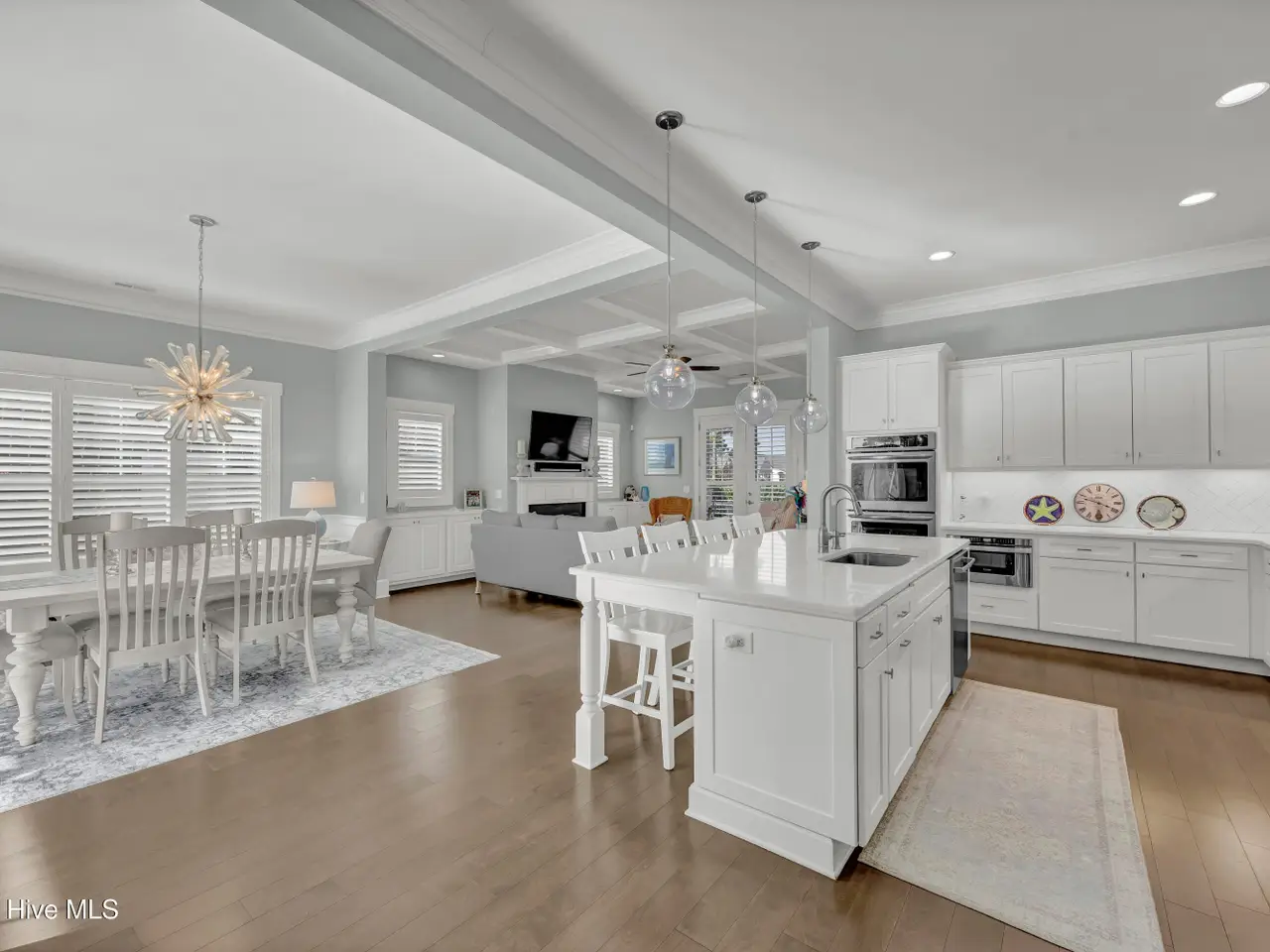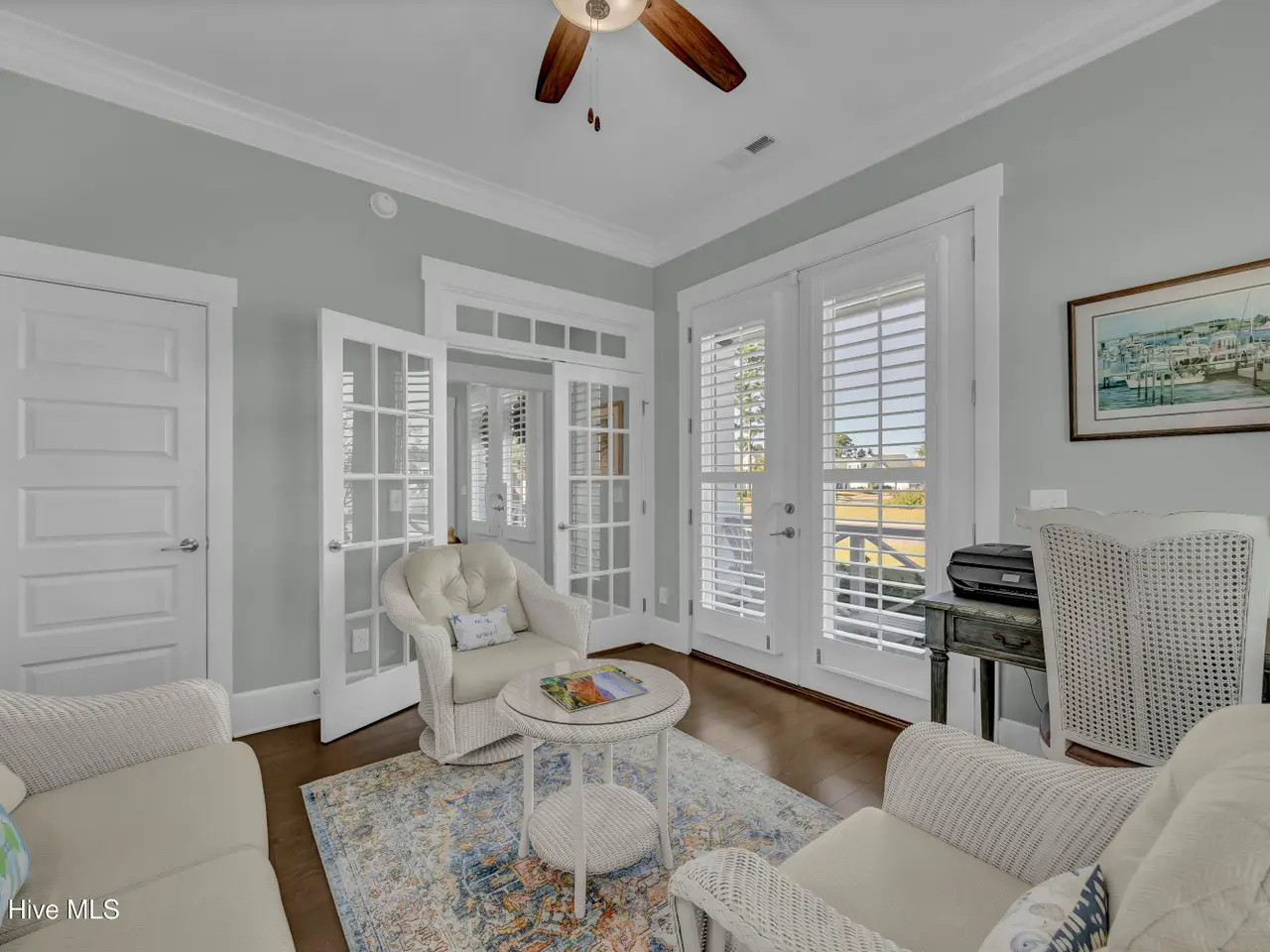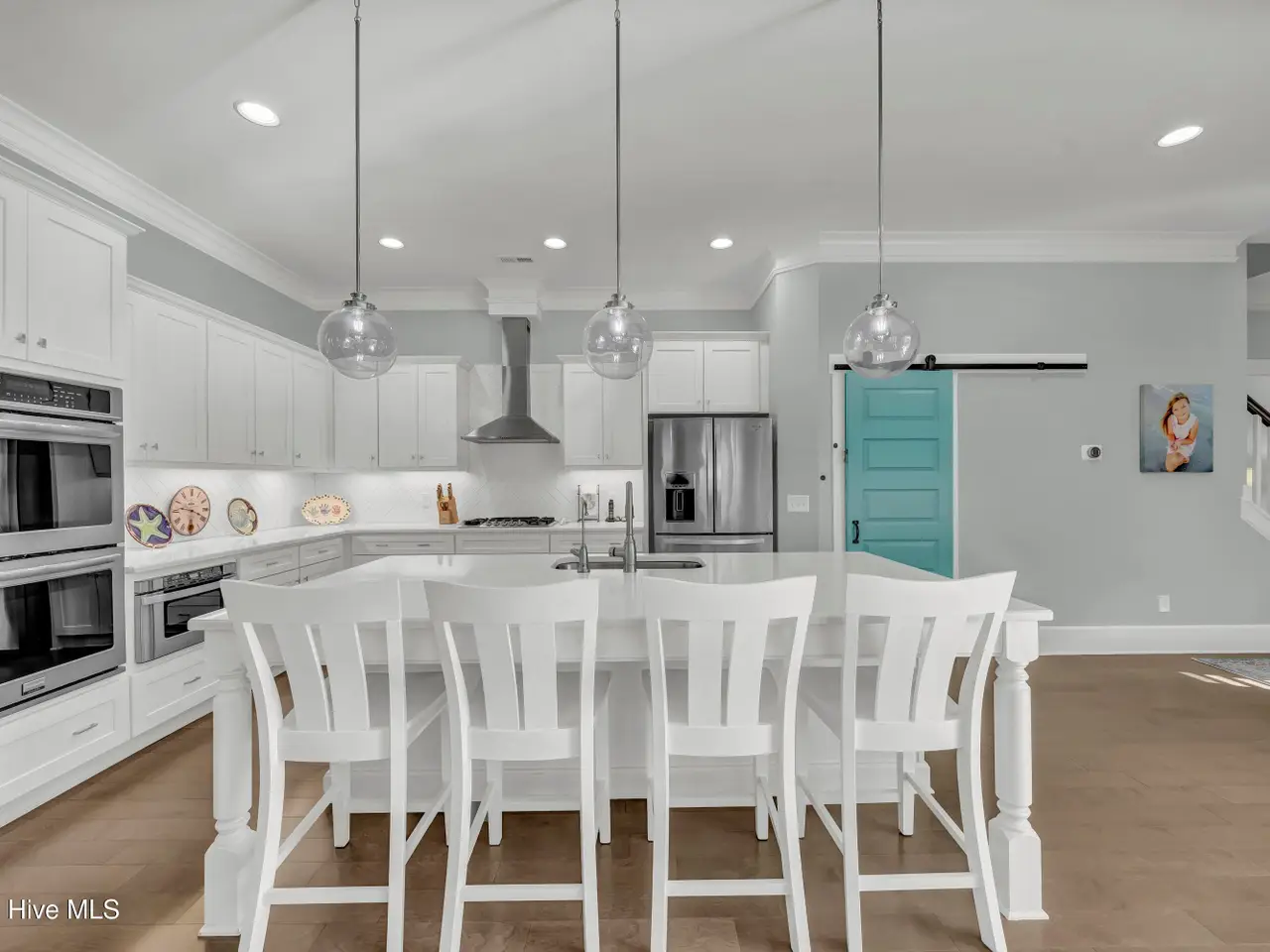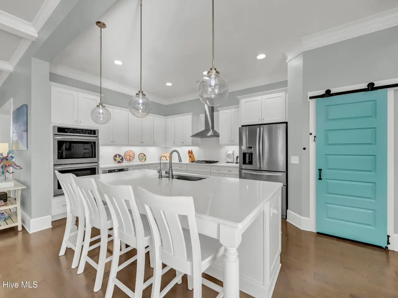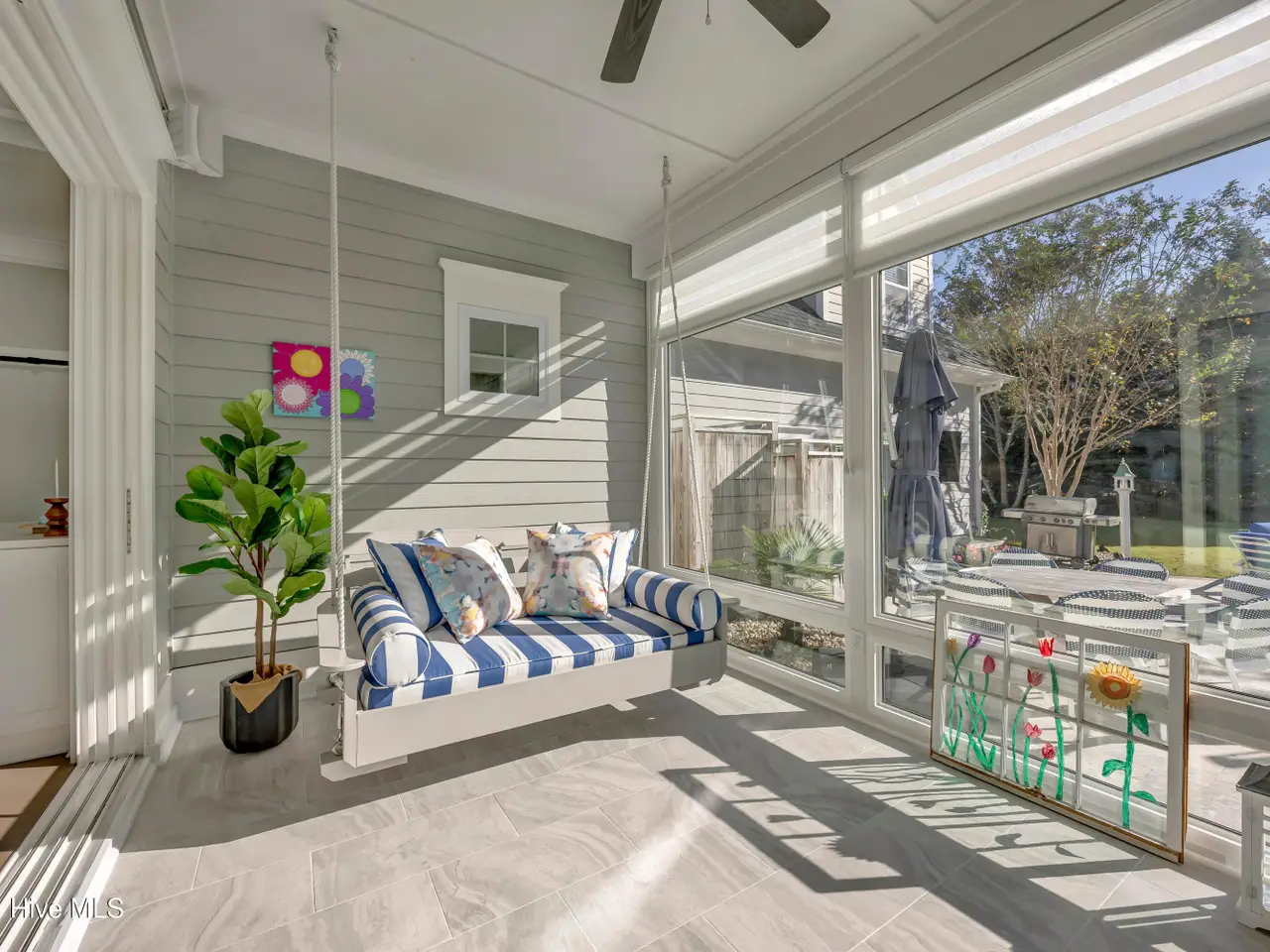 Welcome to a Southern Coastal Luxury home loaded with upgrades!! Located in the premier waterfront community of Helms Port, a family neighborhood with the finest amenities including a spacious clubhouse,a luxurious pool overlooking breathtaking views of the marina and beyond. Enjoy a white sandy beach to launch your kayak or paddle board and then store it afterwards. Here comes the sun, in this light and airy spacious home with 10 ft. ceilings, open floorplan with a beautiful sunroom overlooking an outdoor oasis of fun. Featuring a flagstone patio with a custom stone fireplace, gas grill, TV and outdoor shower makes for memorable family and friend time. The beautifully landscaped yard is fenced in and provides enough space for a future pool. This home is ideal with the primary suite downstairs and 2 bedrooms upstairs with large great room providing space for the children. Then, for guests, there is a 4th bedroom located discreetly over the garage with ensuite bath and separate thermostat. Upgrades are abounding with Plantation shutters throughout, premier sheer shades in the sun room, coffered ceiling, built ins and gas fireplace in living room. The kitchen is well appointed with a spacious island, double ovens, gas cooktop, reverse osmosis, and a separate beverage fridge. A dedicated office/study is tucked away from the rest of the home, providing a quite space for work. If that isn't enough, there is a whole house generator, abundant storage in the walk in attic, natural gas. This home has been meticulously maintained and the upstairs HVAC was replaced this year. Come enjoy this peaceful paradise with all the extras!