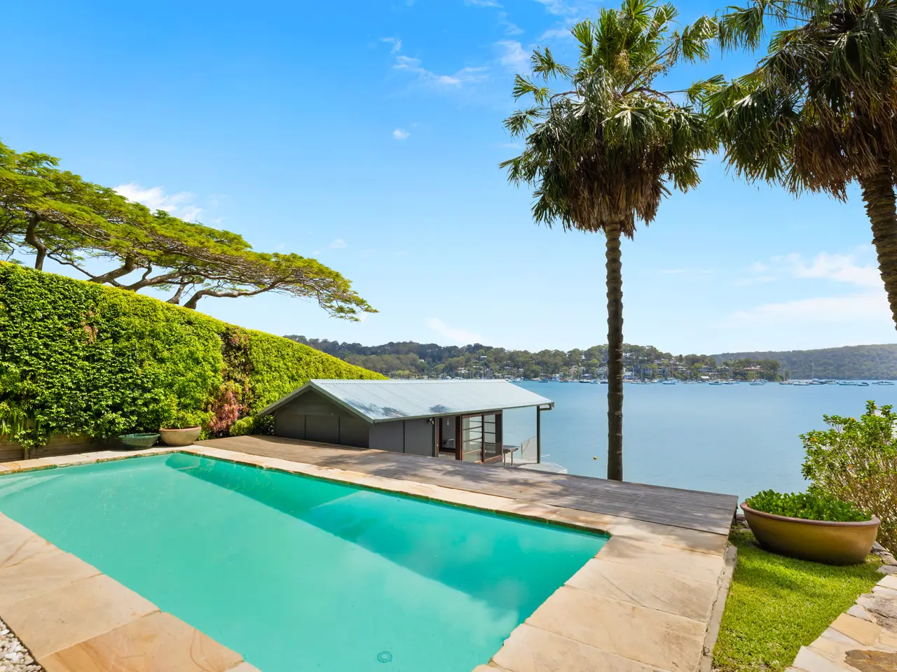 Par excellence. It's not a term to throw around lightly, but this waterfront beauty is well-deserving of the title; architecturally designed by Geoffrey Watson, the home is at once earthy, simple and luxurious. The interiors are framed by polished timber, sandstone and glass; these organic textures combine with its clean, uncluttered lines as a complement to the stunning Pittwater backdrop. Vast banks of mullioned doors open the home entirely to waterfront decks, resort-style pool and finished boathouse. An impressive entertainer, the gleaming chef's kitchen features a polished marble island and stainless steel benchtops, Miele appliances plus butler's pantry; the lower level is fully self-contained and perfect for weekend guests – it's also DA approved as a fulltime or holiday rental. In addition, the boathouse and its surrounding deck and lawns are an absolutely captivating spot for entertaining, right on the waterfront. - Stunning design, inside and out; polished timber and sandstone - Privately sited on the waterfront parcel; dazzling Pittwater views - Fluid, open layout, mullioned sliding doors to the expansive decks - Ground level is a fully self-contained suite offering dual entrances - Streamlined kitchen with butler's pantry and European appliances - Enormous saltwater pool, level lawns, guest suite in the boathouse - DA approval for dual-occupancy or holiday letting on lower level - Master with ensuite and deck access; all bedrooms include built-ins - Finished studio under the double garage + ample offstreet parking - Wood fireplace, parquetry and hardwood floors, Japanese soak tub - Exquisite sandstone pathways and terraces right to the waters' edge