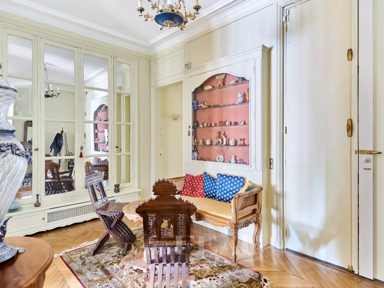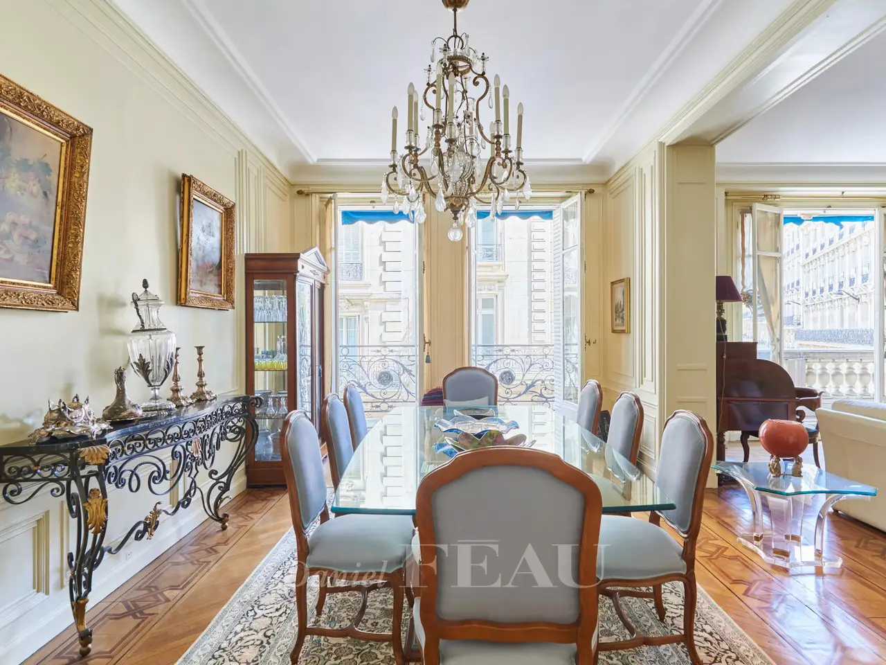 Place Victor Hugo/Rue de la Pompe. This elegant apartment with balconies is on the 2nd floor of a fine freestone building. An entrance hall leads to a living/reception room with a dining room, a separate kitchen with dining facilities, two bedrooms and a bathroom. Period features include high ceilings with mouldings, parquet flooring and fireplaces. With a cellar. Sold furnished.