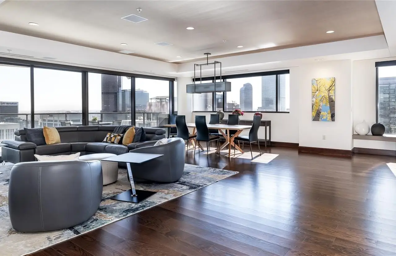 Elevated luxury awaits in this sophisticated, updated residence on the 33rd floor of the iconic Four Seasons Private Residences in the heart of downtown Denver. Occupying a full quarter of the floor, this expansive condo blends modern elegance with breathtaking views of the city skyline. Inside, sleek lines and exquisite finishes define the open-concept living space, offering seamless flow and endless possibilities for personalization. The gourmet kitchen is a showstopper, featuring high-end appliances, custom cabinetry, wine refrigerator, and a spacious walk-through pantry that also houses full-sized laundry and generous storage. Designed for both comfort and entertaining, the home includes an integrated entertainment system and a private balcony outfitted with heaters, perfect for enjoying the cityscape in any season. The serene primary suite offers spectacular views, a luxurious en-suite bath with double vanity and built-in cabinetry, and thoughtful privacy from the rest of the home. Two additional en-suite bedrooms are ideally separated for guests or office space. Enjoy the ease of two deeded parking spaces in a secure garage and indulge in world-class Four Seasons amenities, including 24-hour concierge, room service menu, valet, access to the pool, fitness center and spa and so much more. This is city living at its most refined - welcome to a life of everyday luxury.