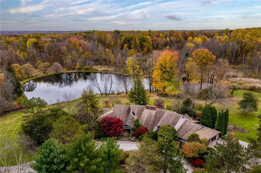 Here is your opportunity to own one of the last large parcels of land in Geauga County. This stunning 60+ acre property is truly breathtaking with the main house overlooking a picturesque pond and stunning meadow. A long private driveway through the woods opens onto a circular motor court and the custom designed home with a unique rustic/modern flair! This one of a kind home has an effortless indoor/outdoor flow with walls of windows overlooking the gorgeous grounds. A two story vaulted great room, chef's kitchen, and a generous dining room, flow seamlessly together and make entertaining effortless. The first floor owner's wing is its own retreat with a private sitting room, intimate bedroom area, expansive bathroom, and walk-in dressing room. For your guests or family, there are two second floor bedrooms in a private wing offering total and complete privacy. You will love admiring the wildlife and breathtaking views from the expansive deck which provides amazing outdoor entertaining space. There is an additional outbuilding on the property which is an amazing space with a second story artist studio. This can also be a fantastic private office or exercise studio. If you're a dog lover, there are three air-conditioned kennels with indoor/outdoor access. This incredible property is perfect for an equestrian or someone who seeks total privacy in one of the most breathtaking settings imaginable.